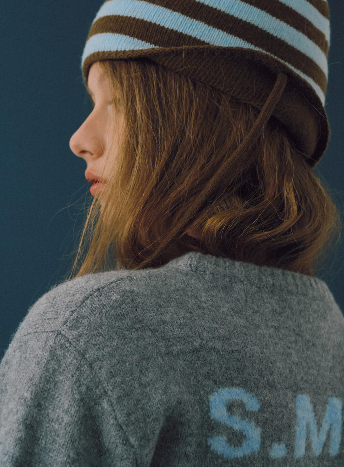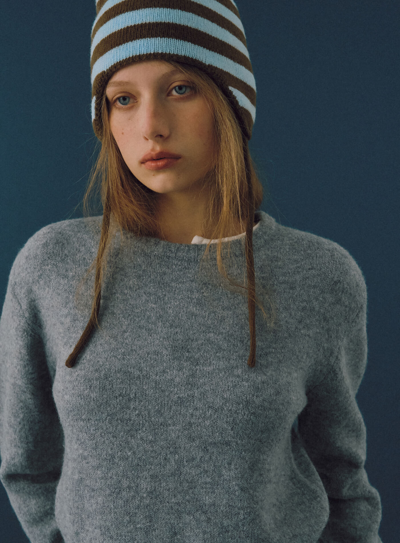 Milky Blue Pies Striped Knit Hat