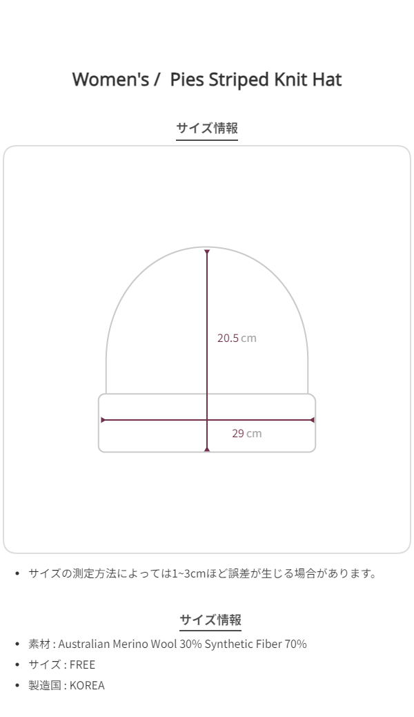 ホワホワとしたフィットで可愛らしく包み込むピース ストライプニットハットです。ミニマルなデザインで、ストライプパターンとSmoothmoodロゴペンダントがポイントになります。ゆとりのあるウールハットのようなシェイプで、すっきりフィットし、ボリューム感のある折り返し部分でさらに可愛らしく演出されます。クラシックなチャコールカラーにアイボリートーンのストライプが入っており、すべてのアウトフィットにヴィンテージなポイントになります。ㆍAcrylic 70% Nylon 30%ㆍSmoothmood Logo PendantㆍStriped Charcoal*詳細ページ内のストライプデザインのモデル画像、ムード画像にはペンダントが写っていませんが、すべての pys hat 商品にはペンダントが付いた状態で出荷されます。