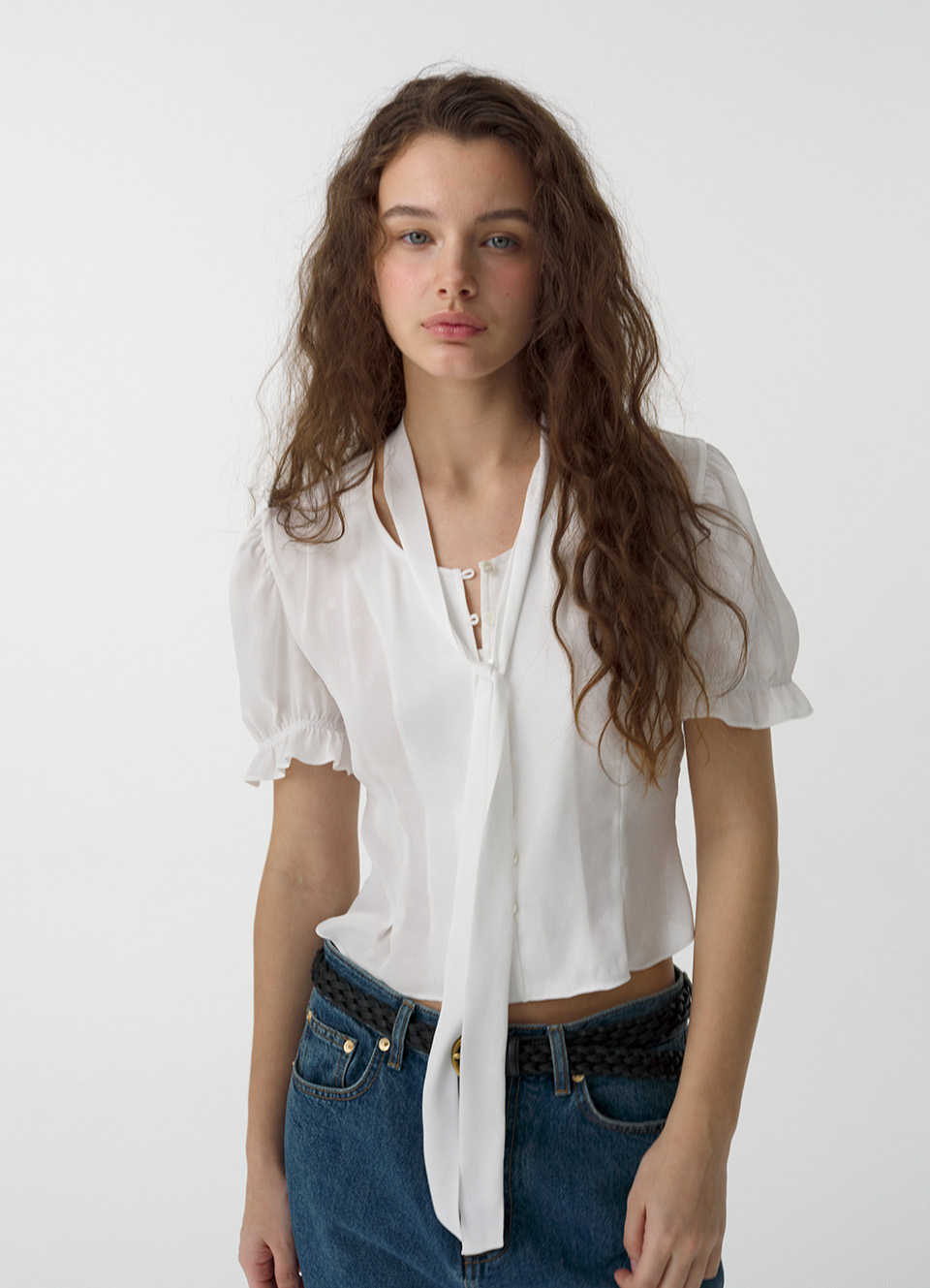 White Jasmine Dream Ribbon Dot Blouse