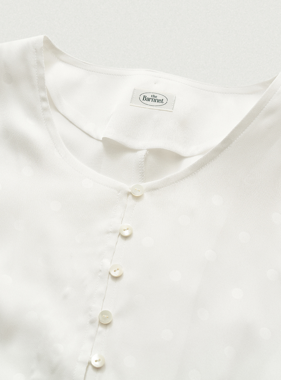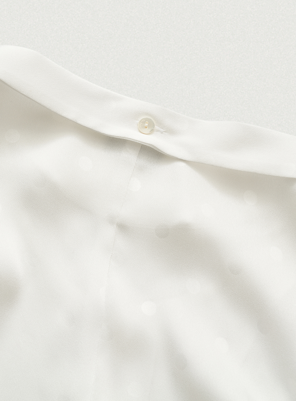 "アイボリーカラーで、生地特有の上品な光沢感とドットパターンが際立つファブリック。