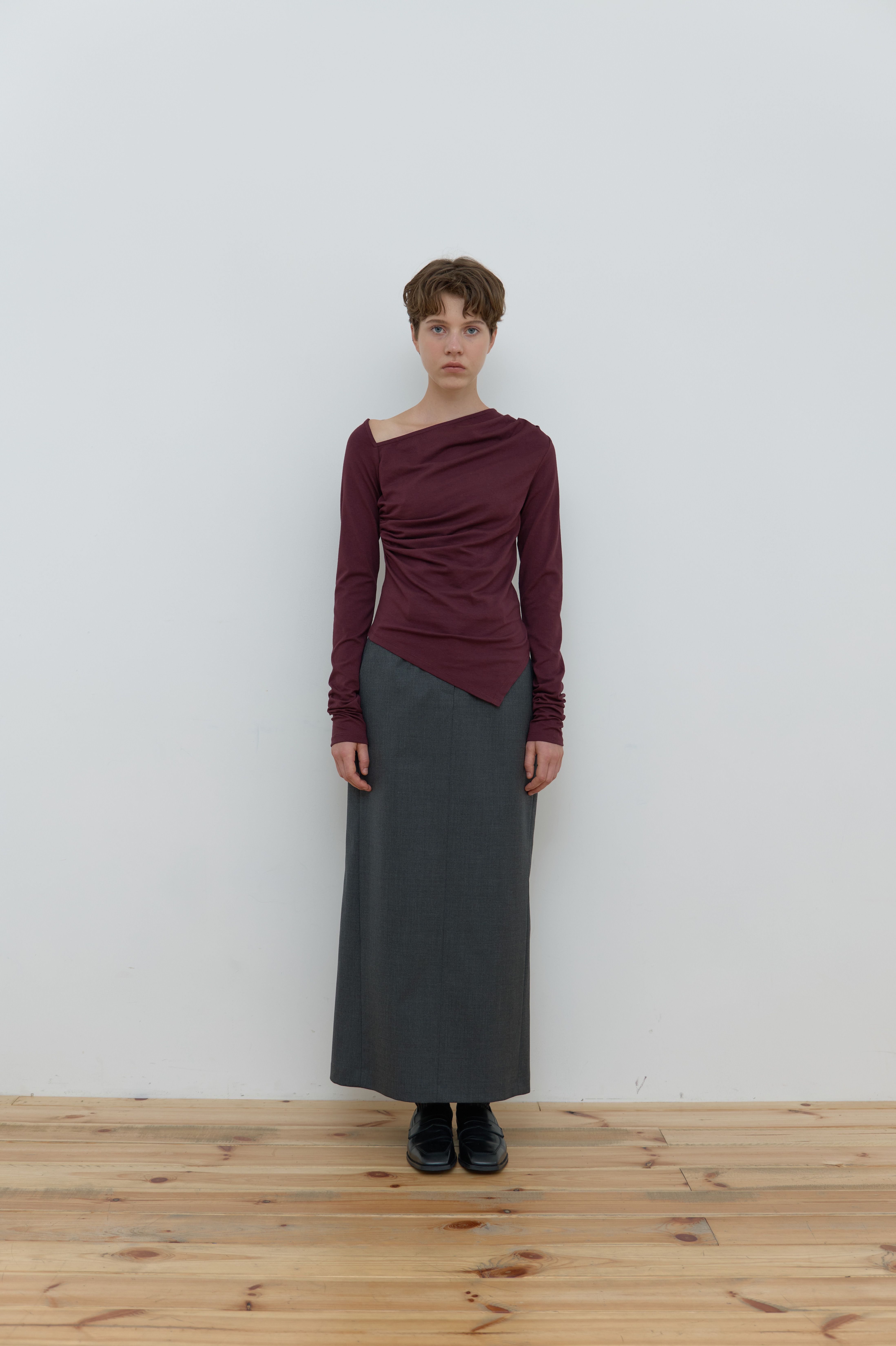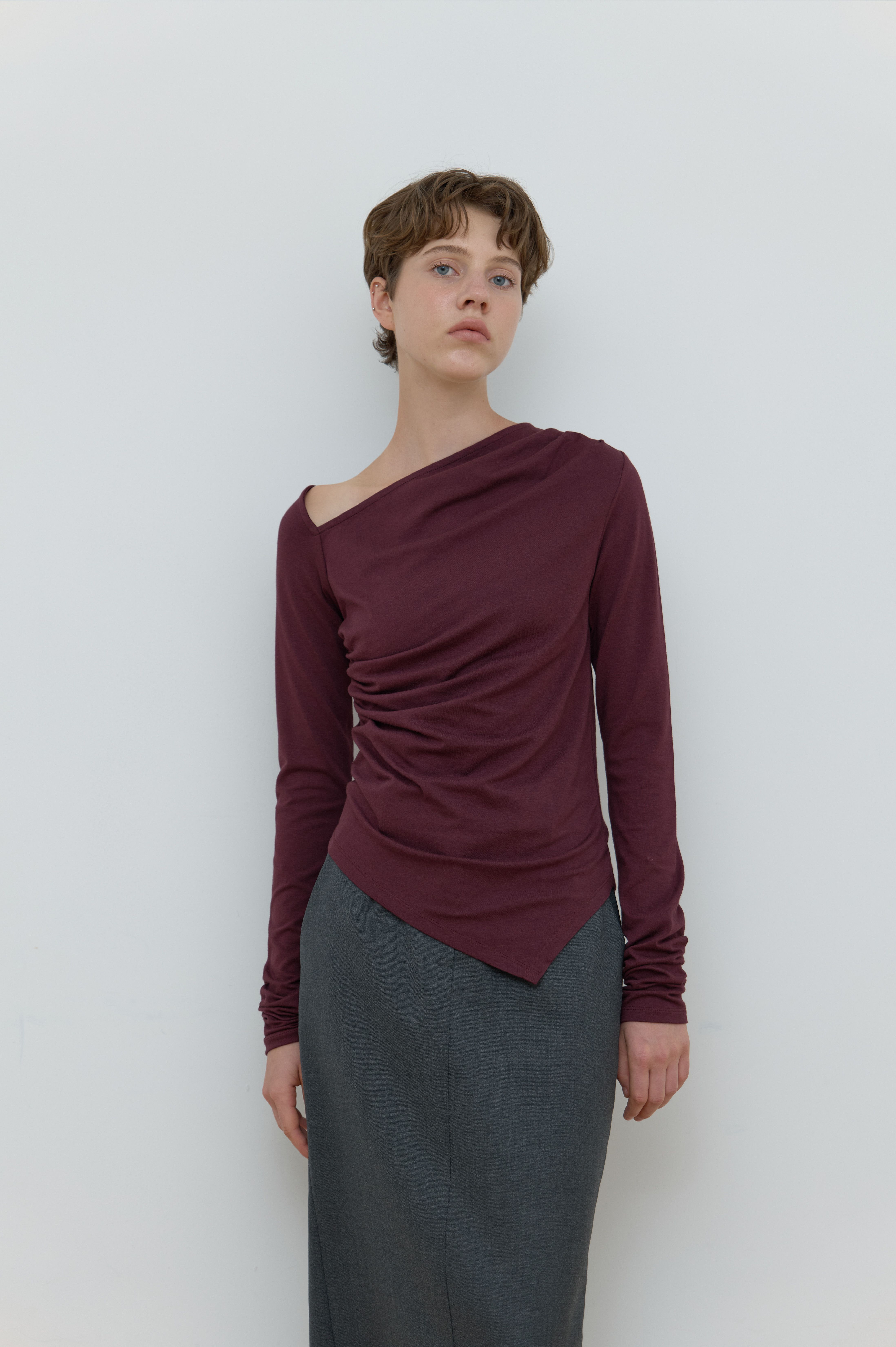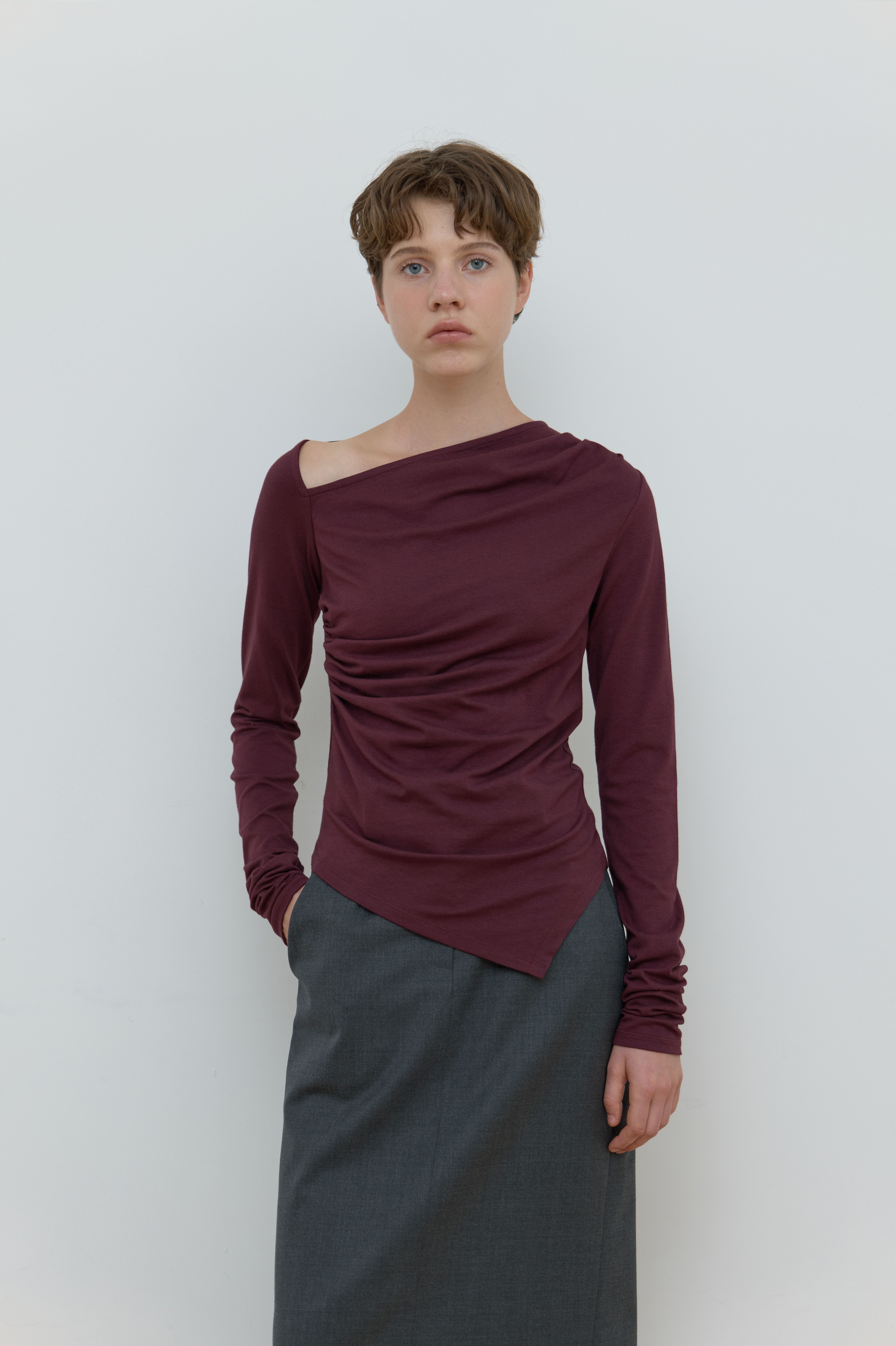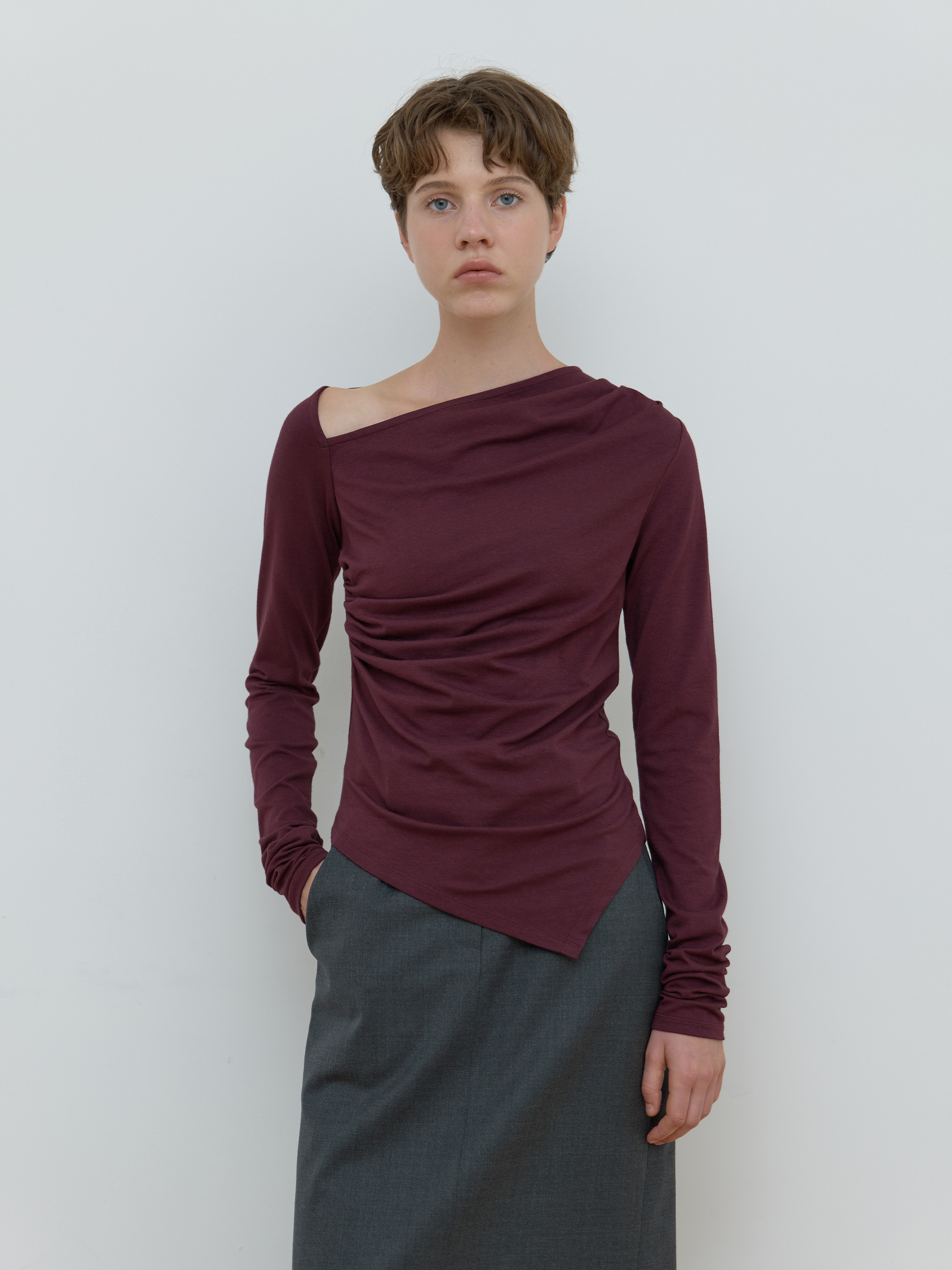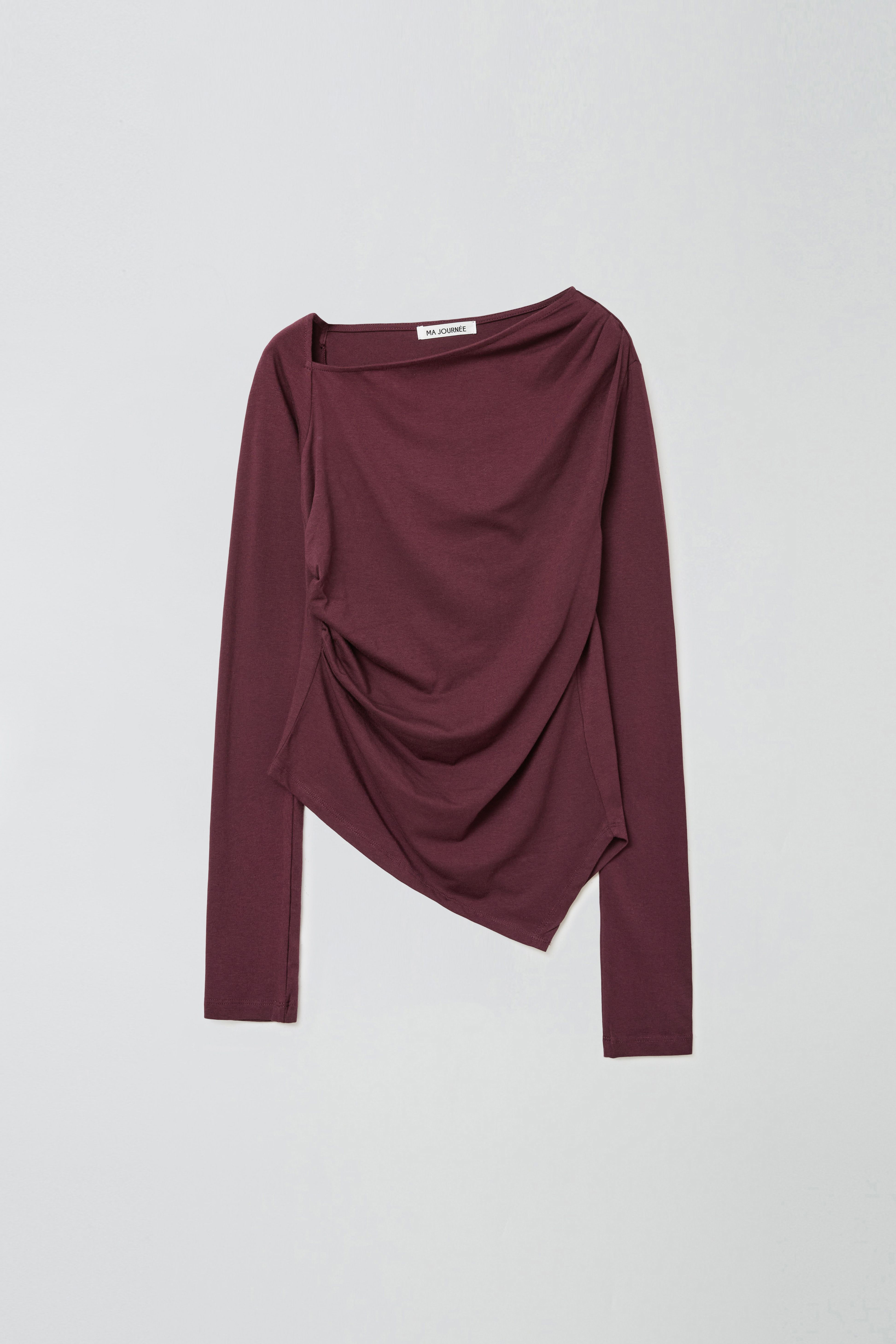ASYMMETRIC SHIRRING TOP_WINE