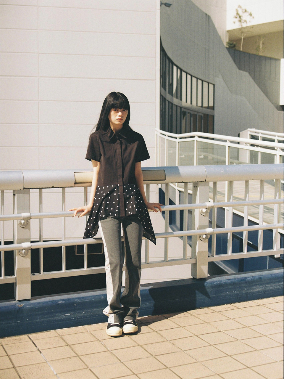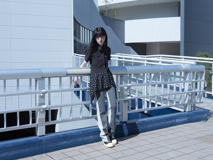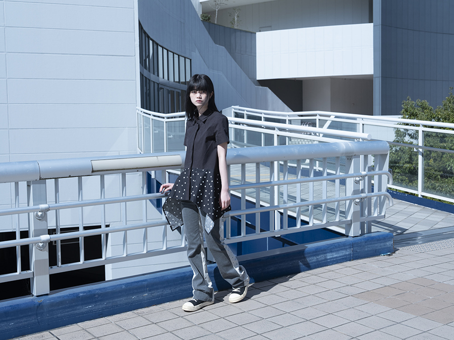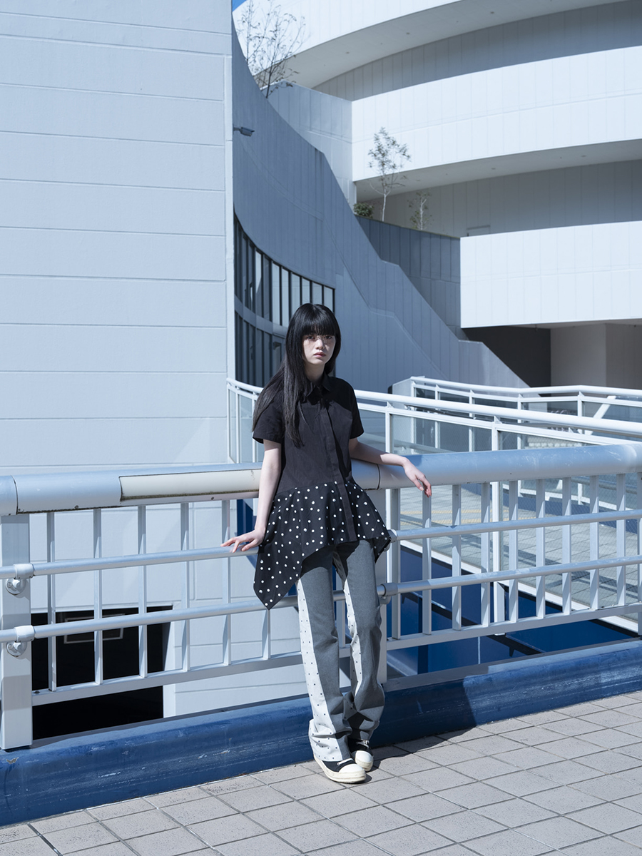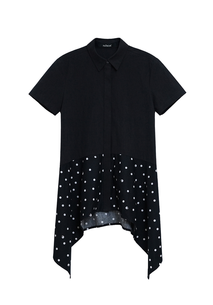CAT DOT FLARE SHIRT BLACK