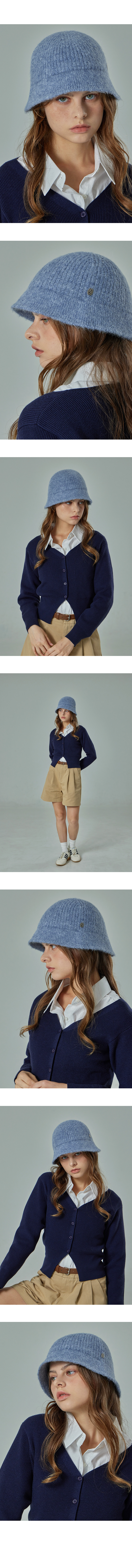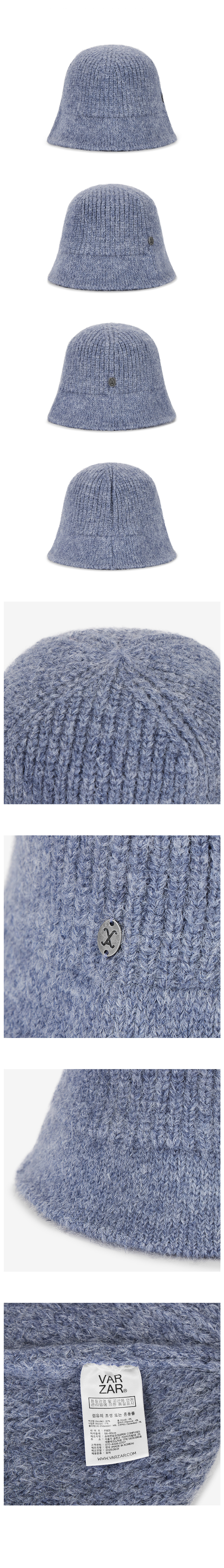 VA Curved Oval Metal Washed Knit Bucket Hat Soft Blue