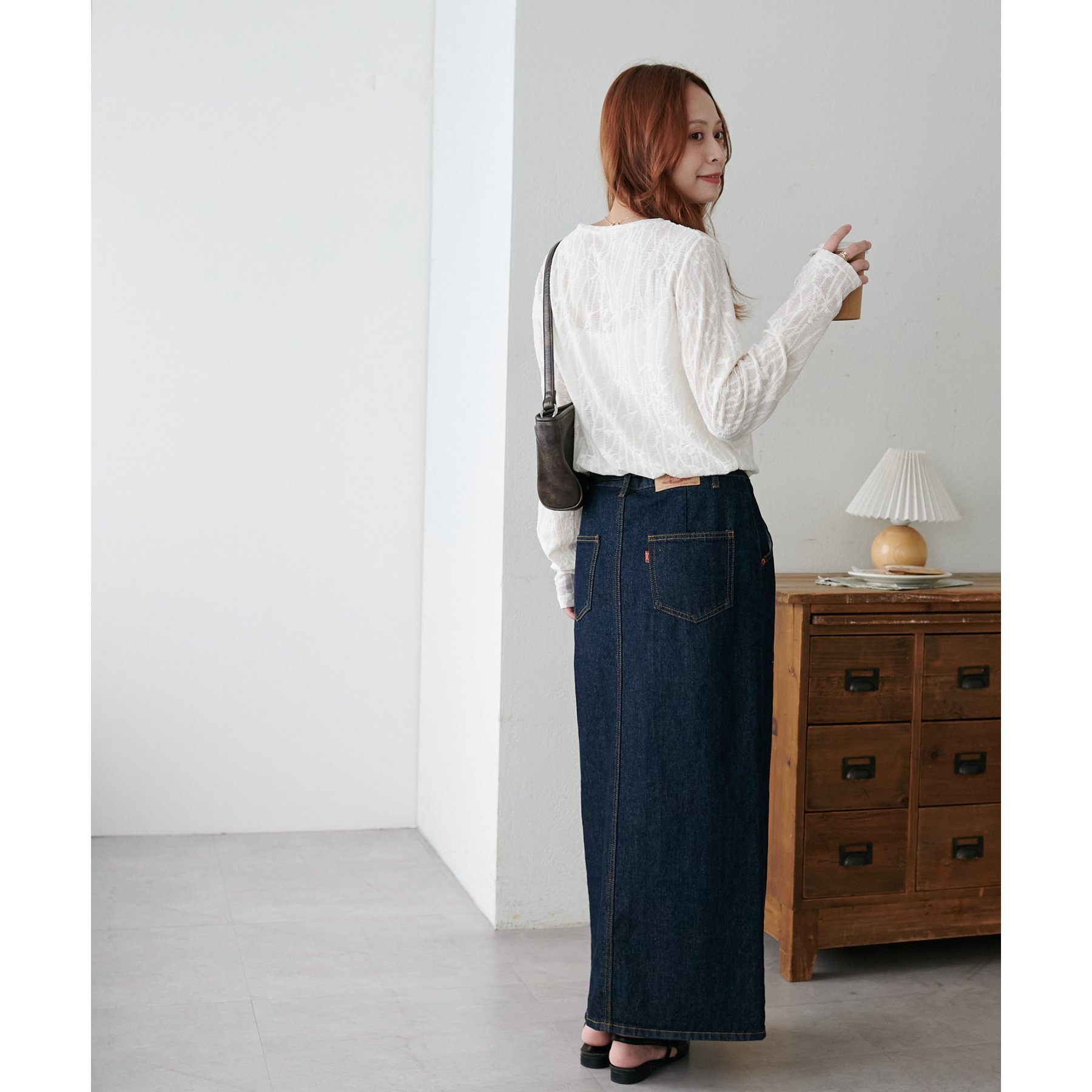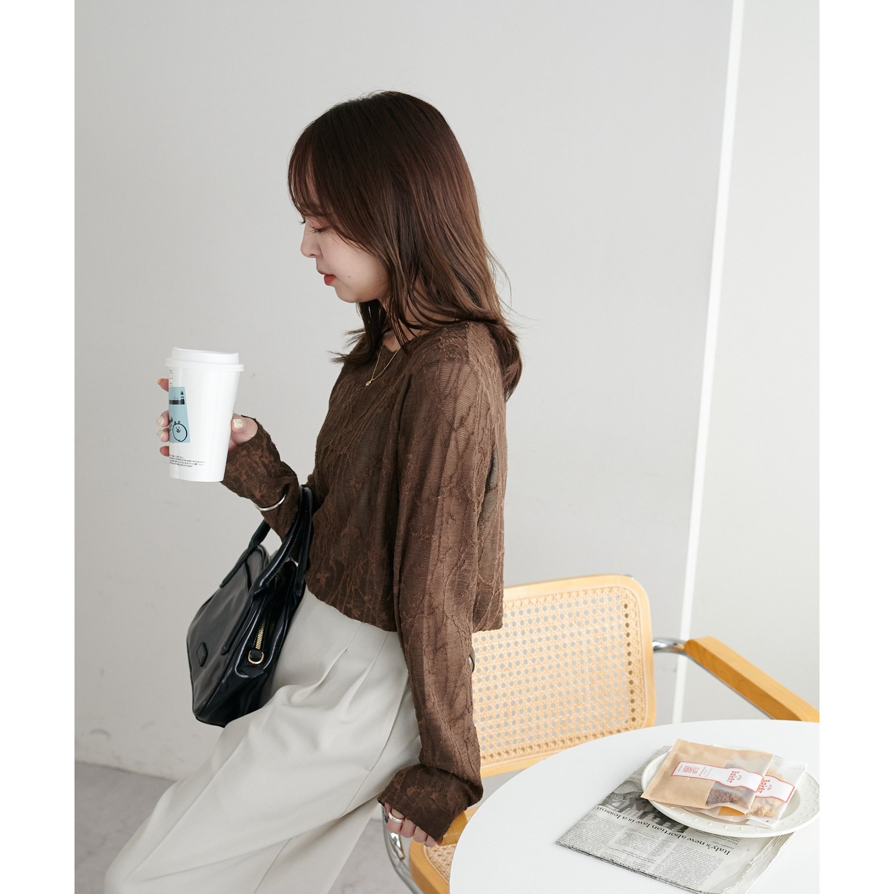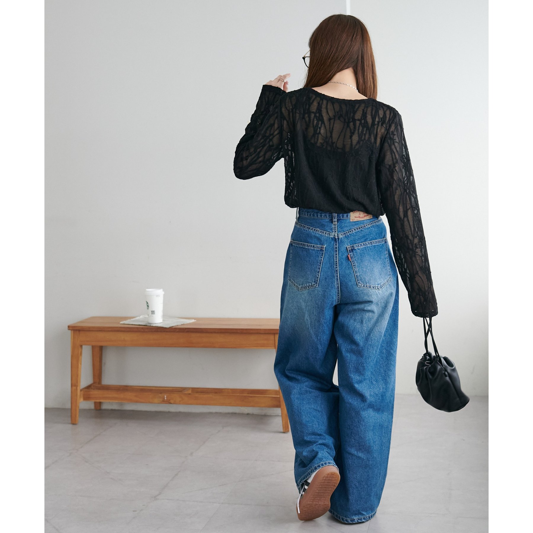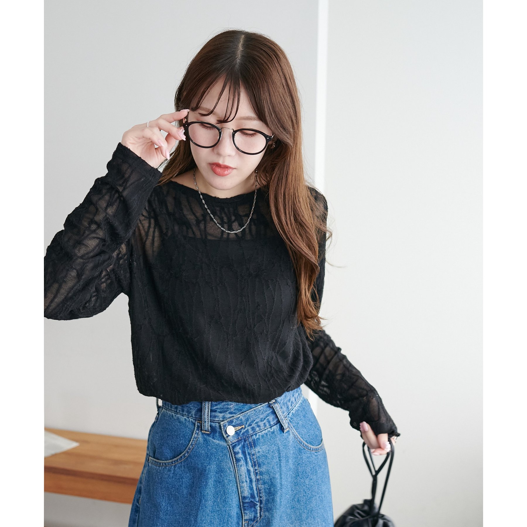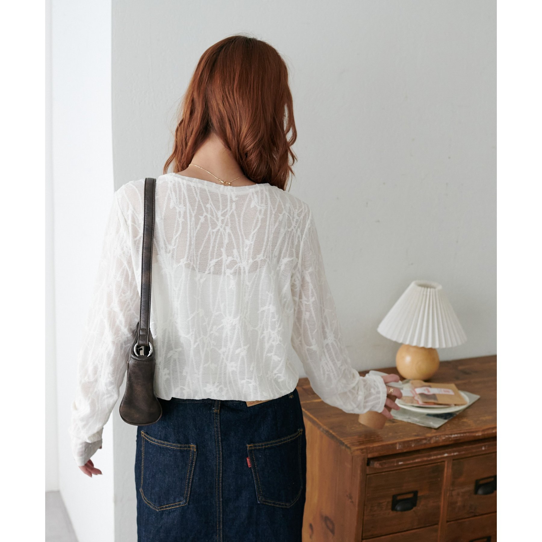 153cmスタッフ:程よい透け感があるので、夏から秋に変わっていくタイミングにぴったりのトップスです〇