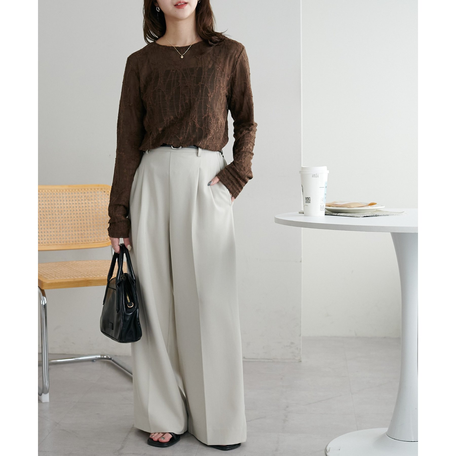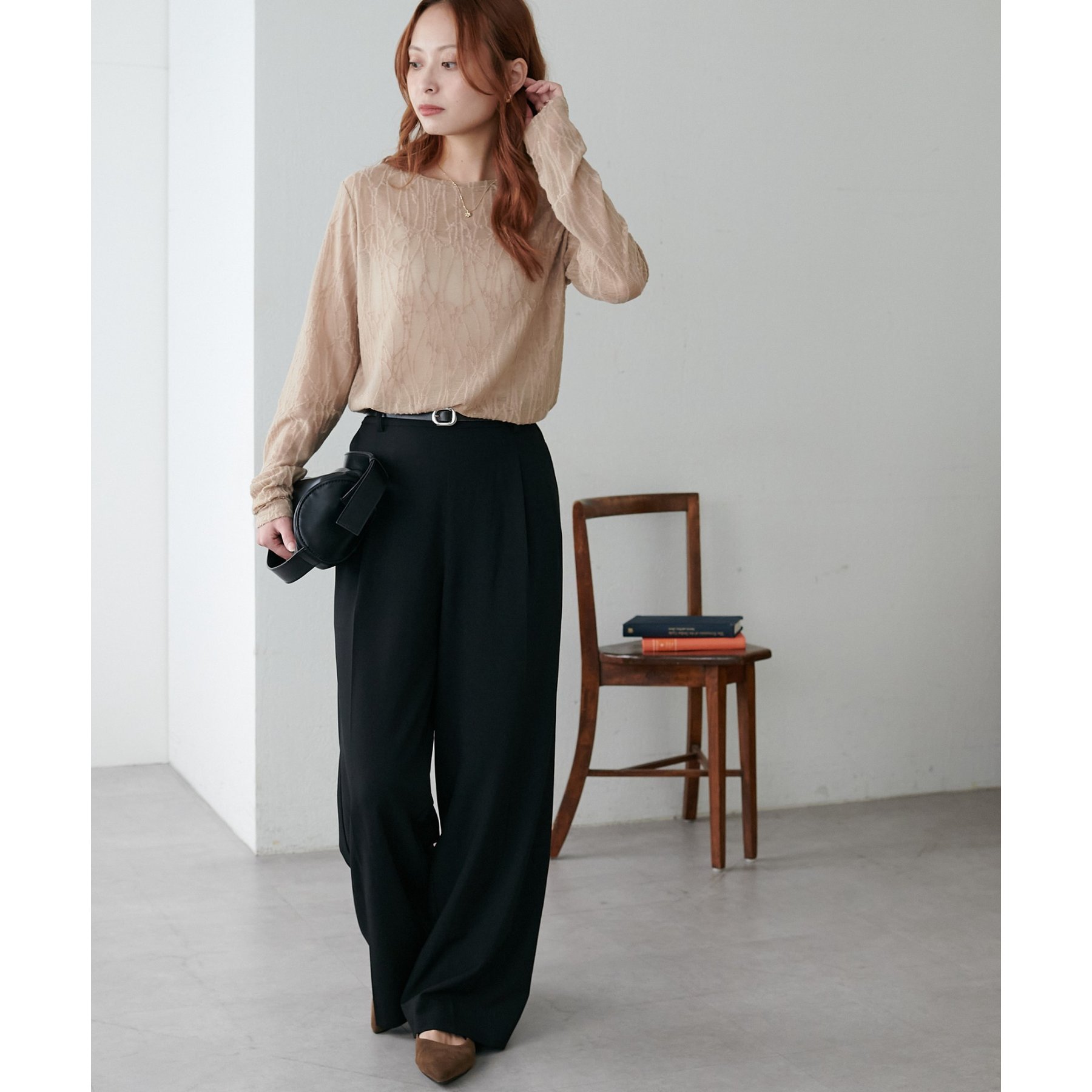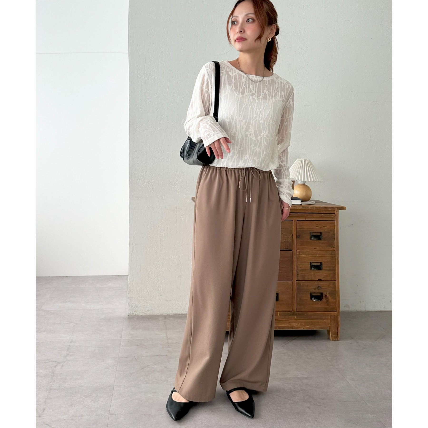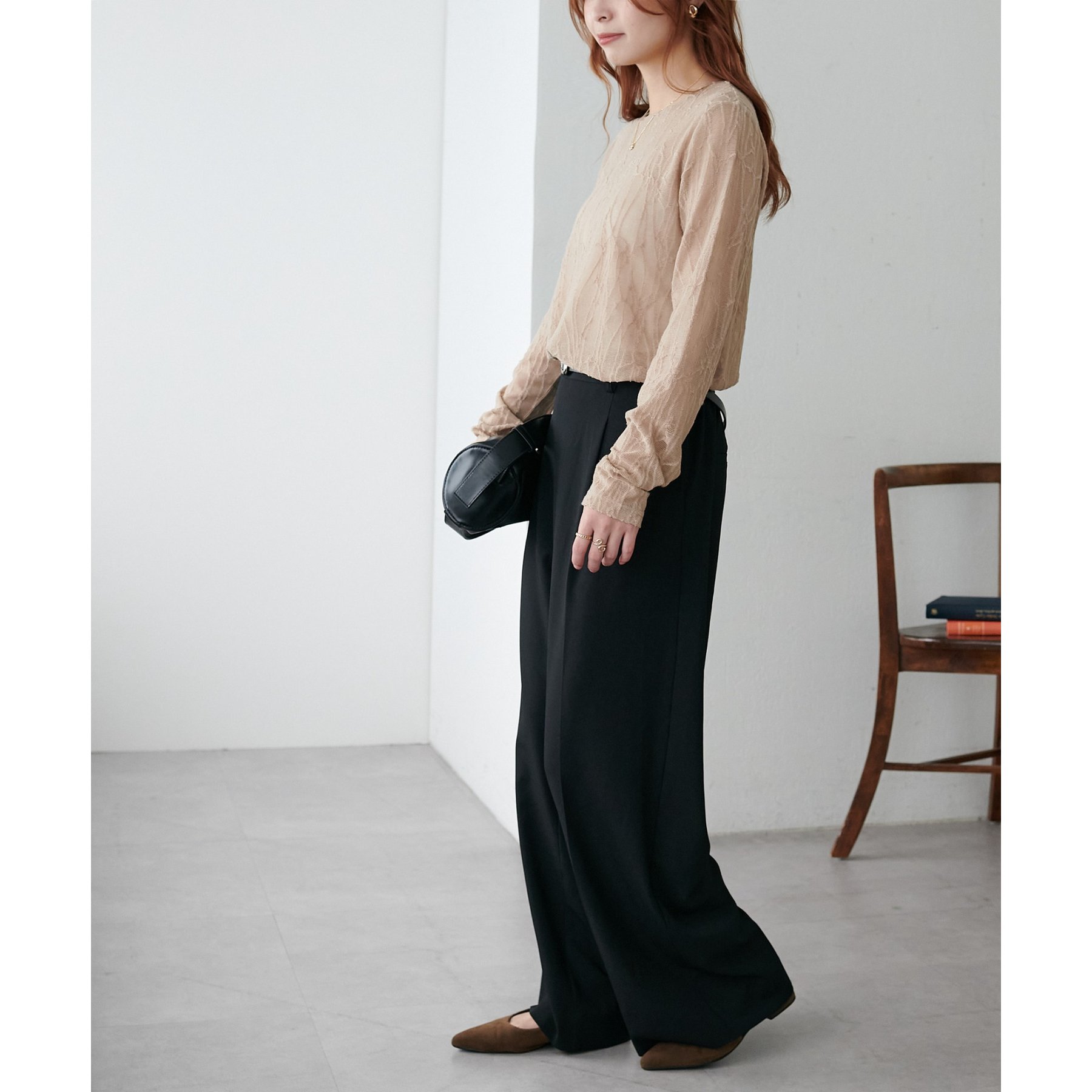 シンプルなボトムと合わせてもニュアンスのある着こなしが完成します。
