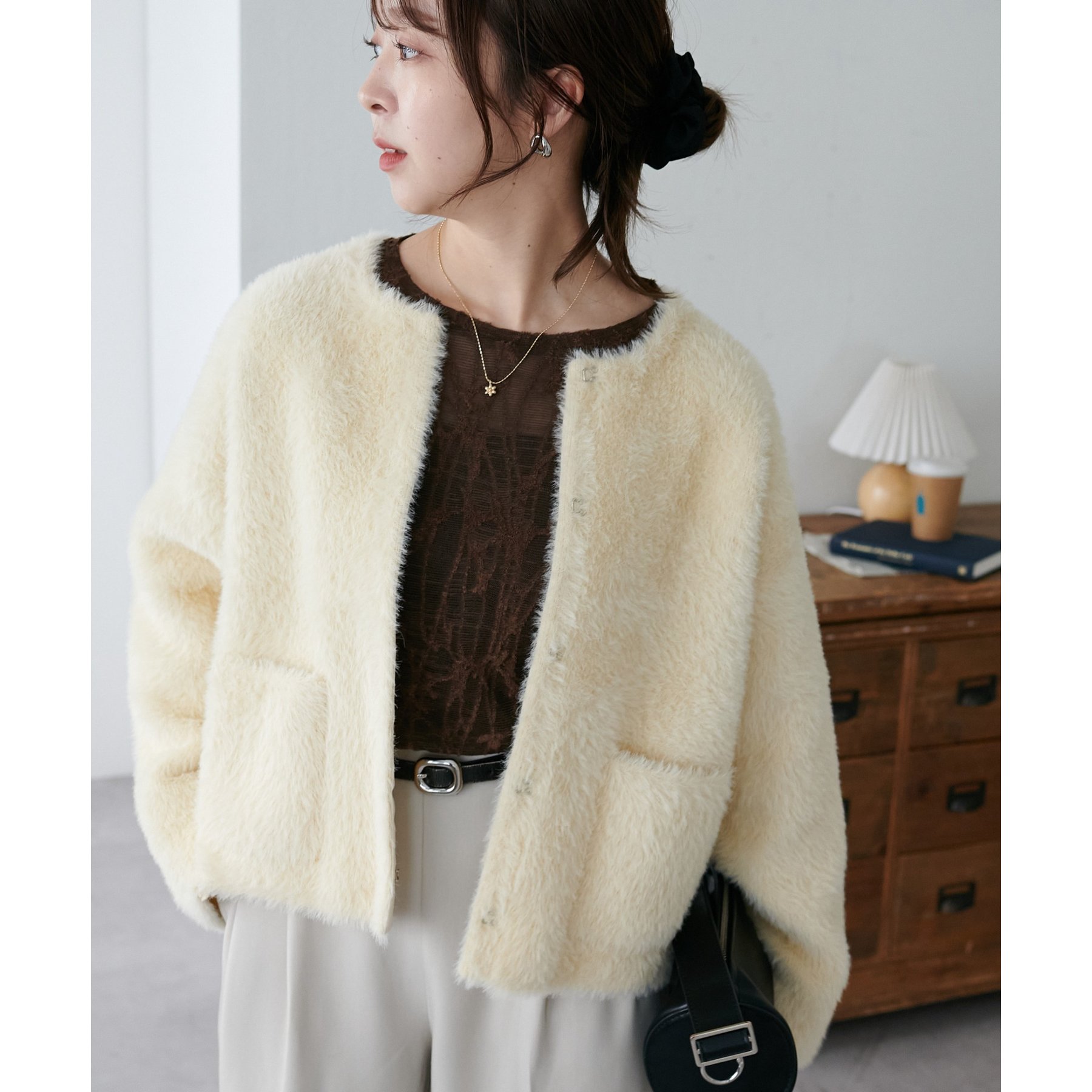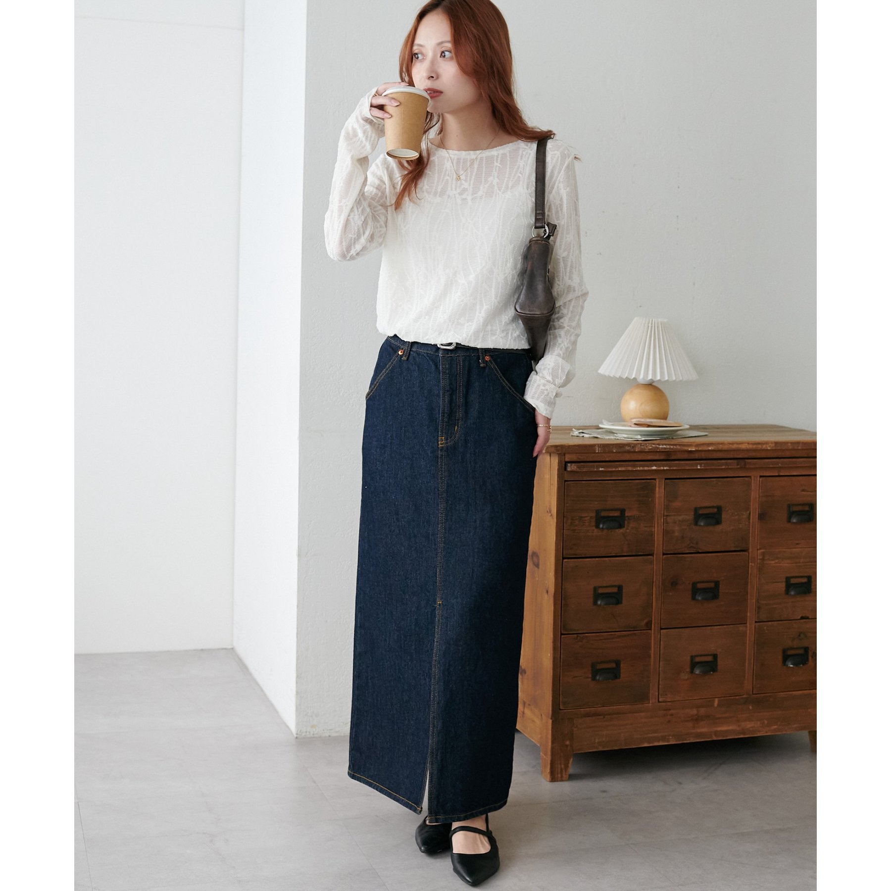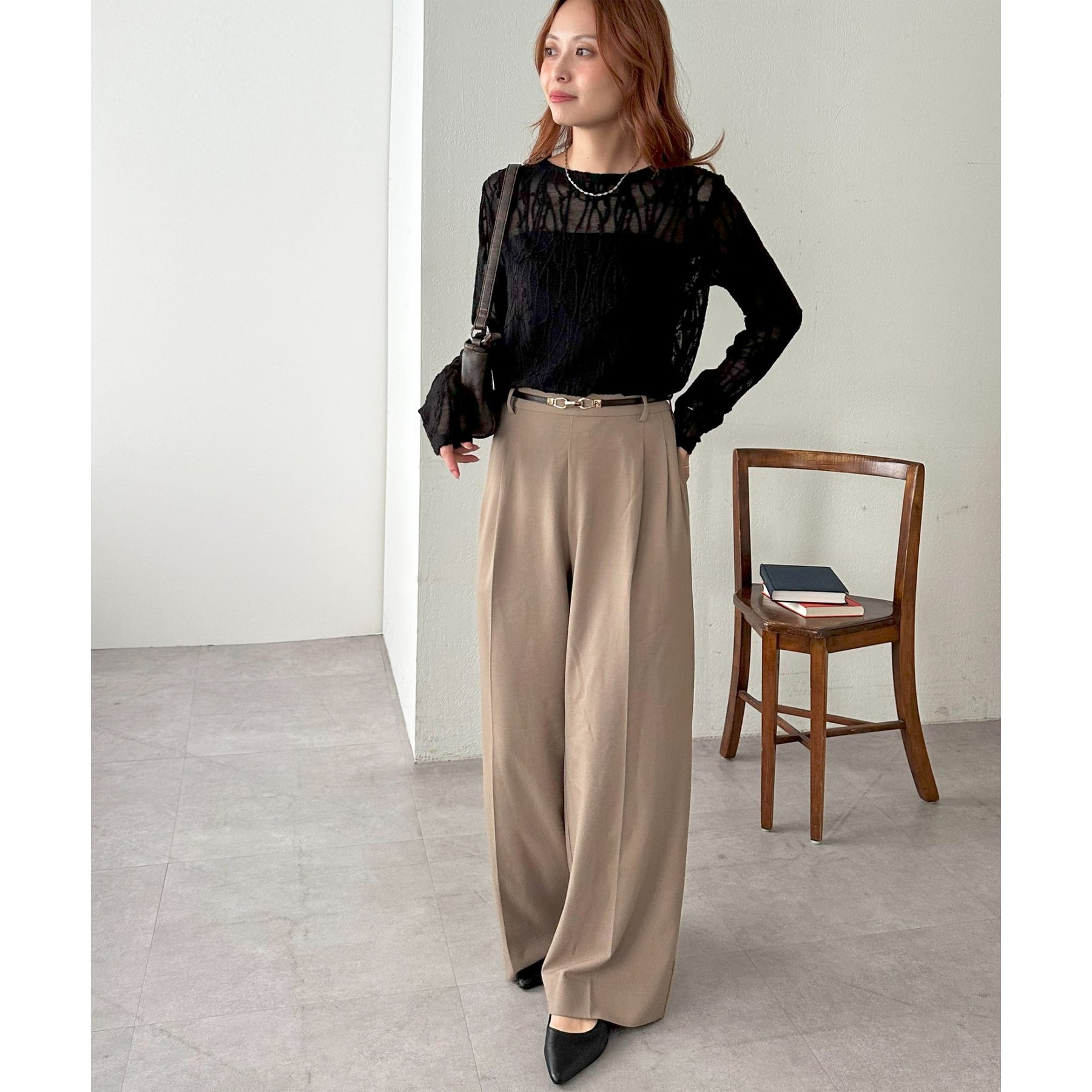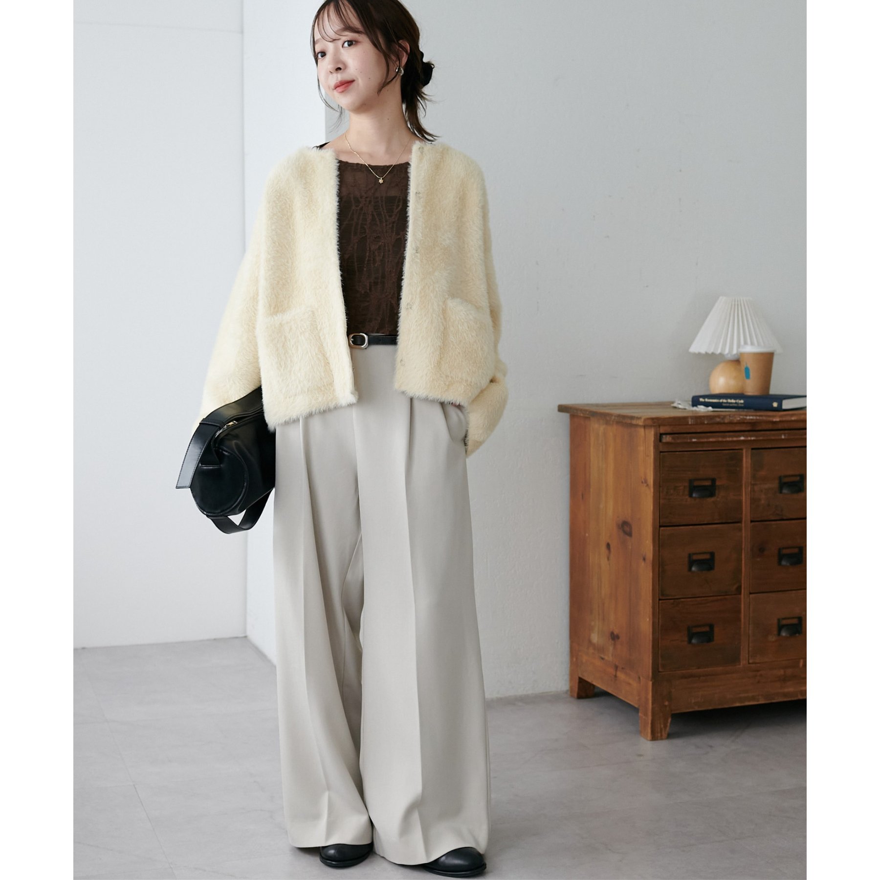 シンプルなボトムと合わせてもニュアンスのある着こなしが完成します。