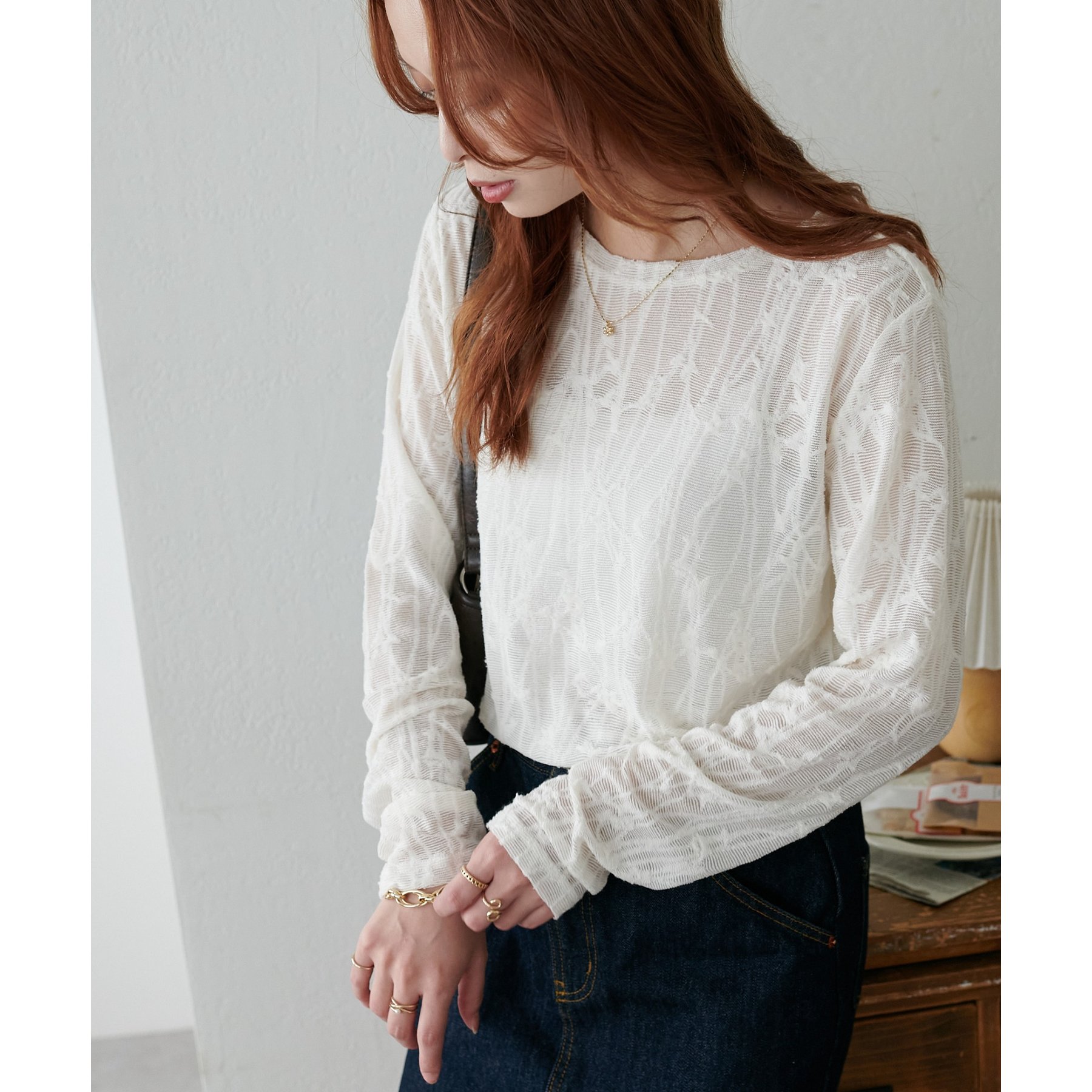 生地ジャガードロングスリーブ《WEB限定カラーあり》
