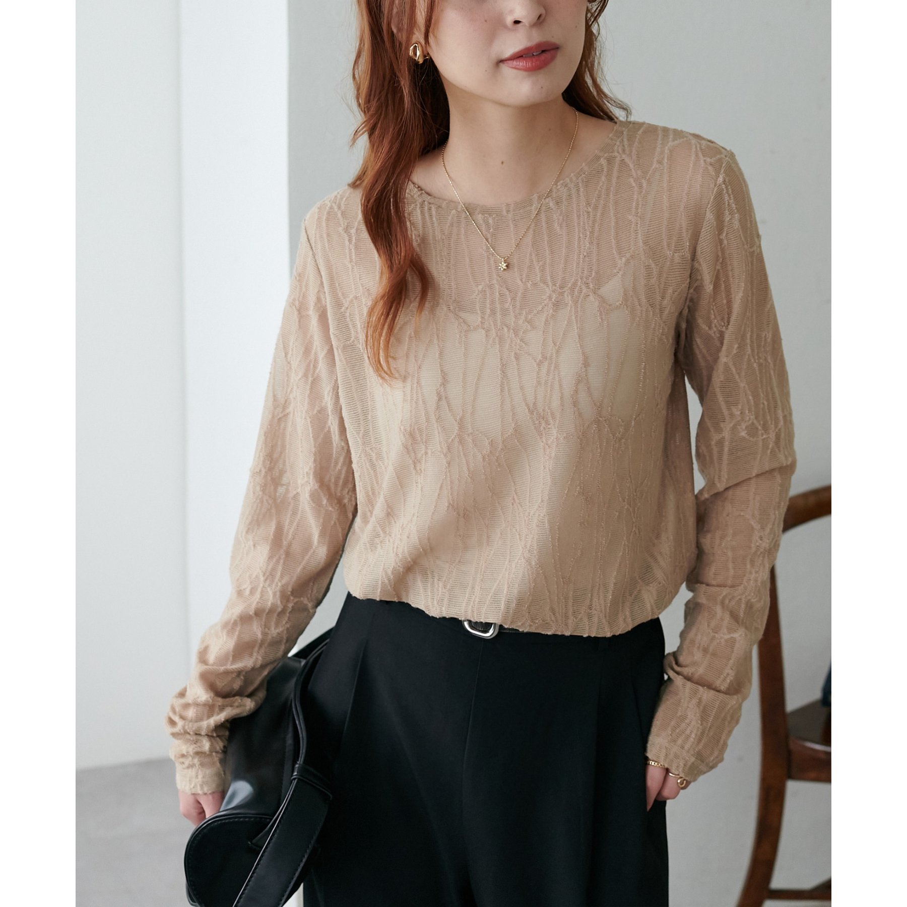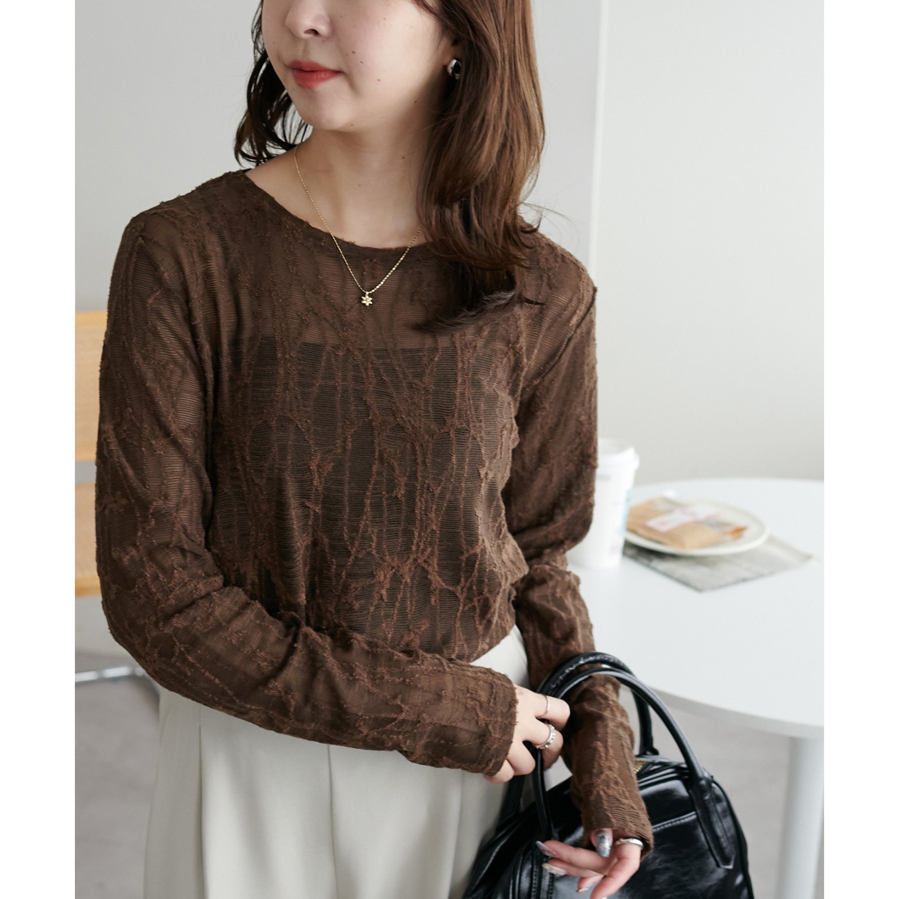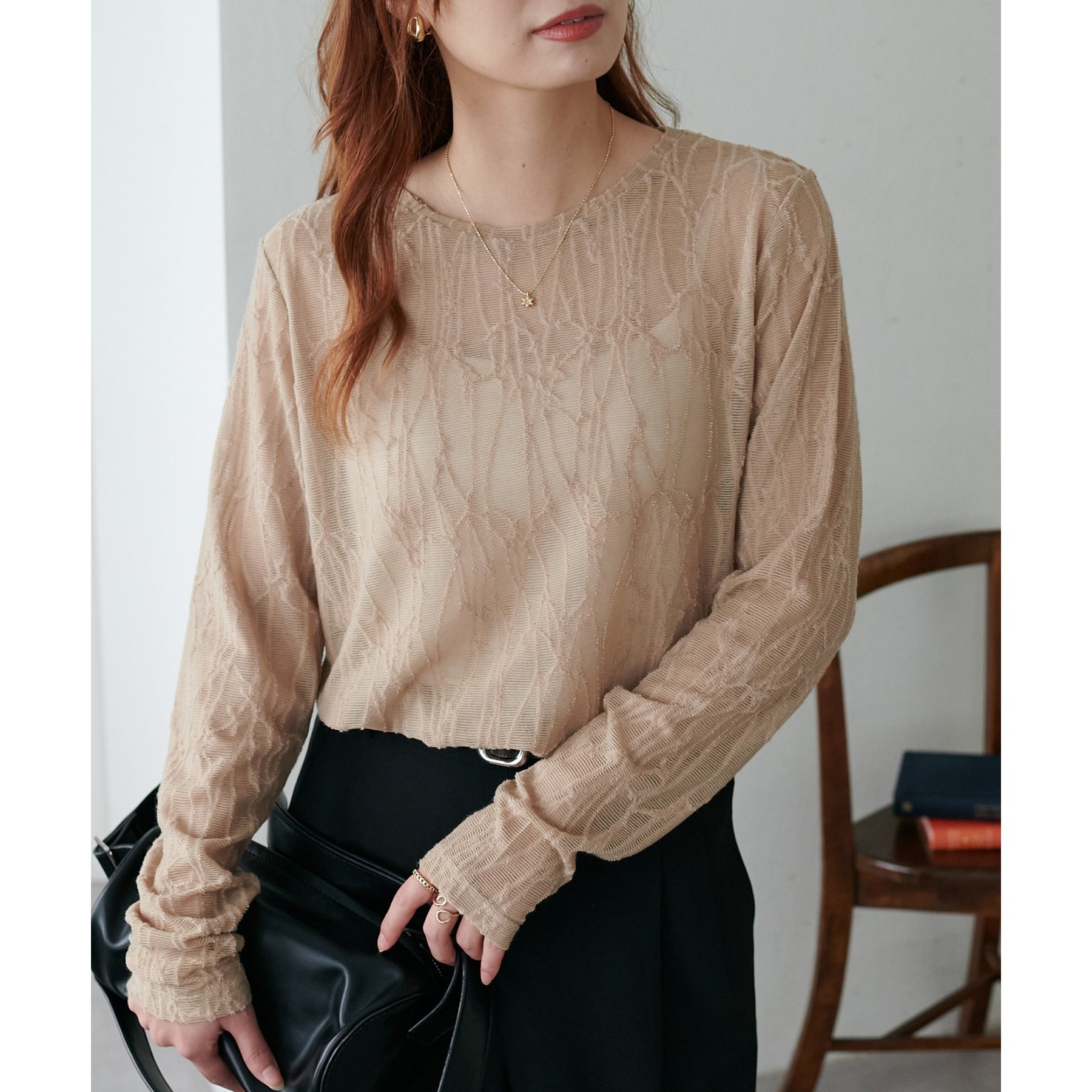 程よい透け感が女性らしく、1枚でもレイヤードでも活躍する万能アイテムです!