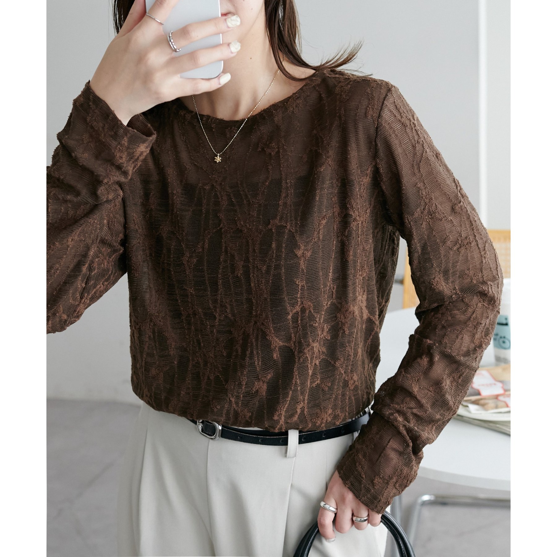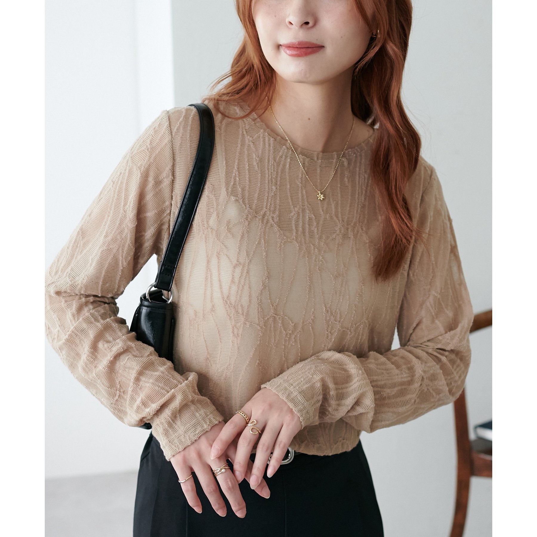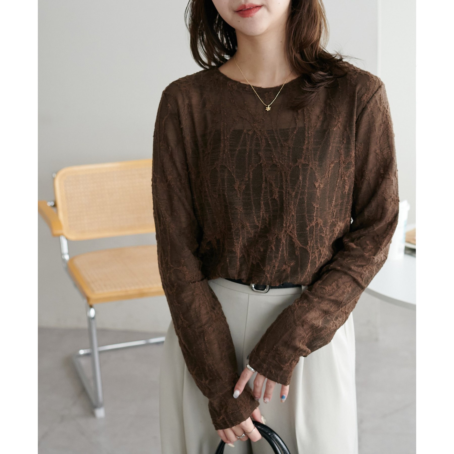 程よい透け感が女性らしく、1枚でもレイヤードでも活躍する万能アイテムです!