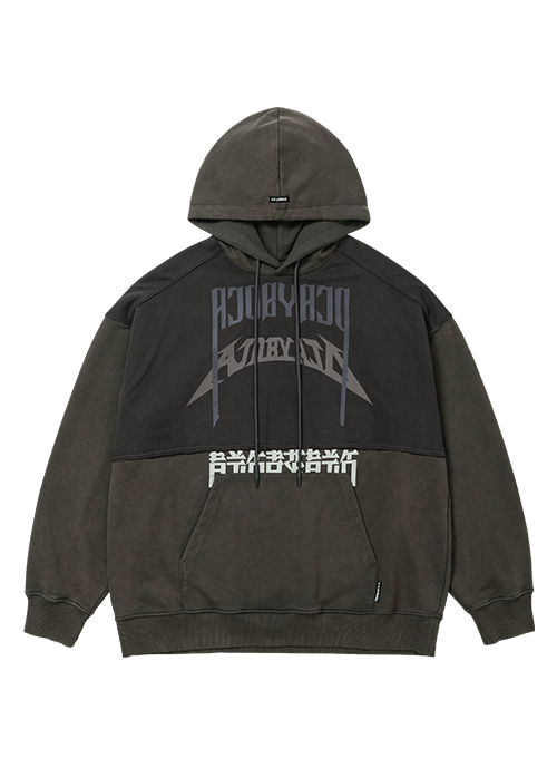 [PBA] Arch Logo Washed Layered Hoodie [CHARCOAL]