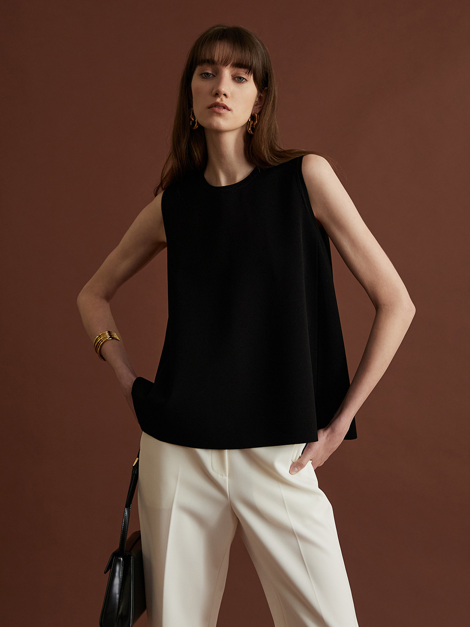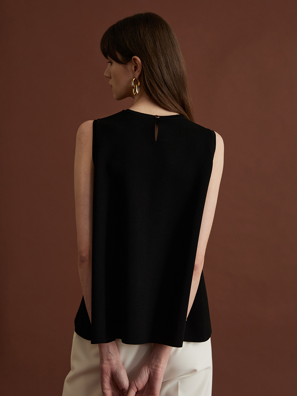 Flare Sleeveless Knit Top - Black
