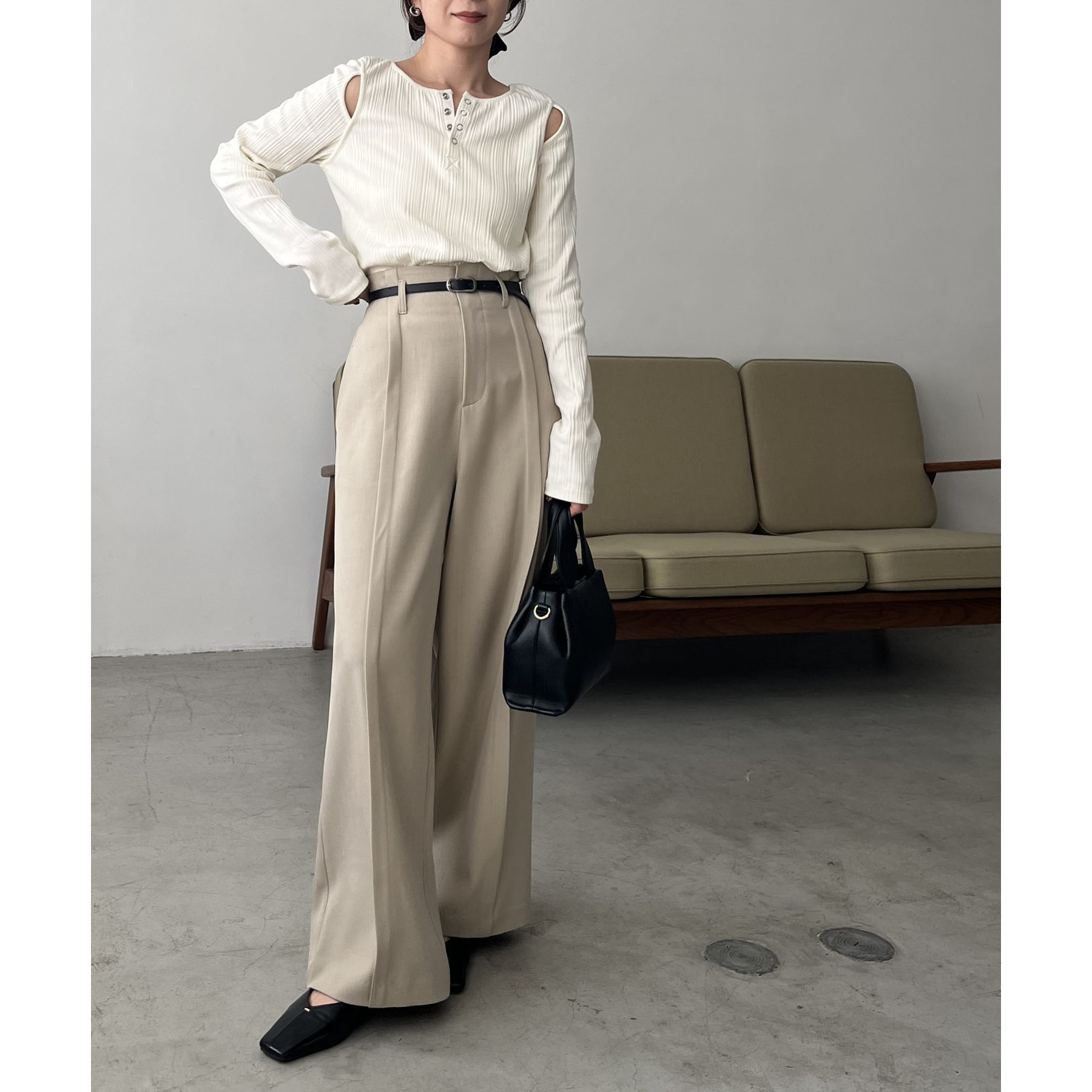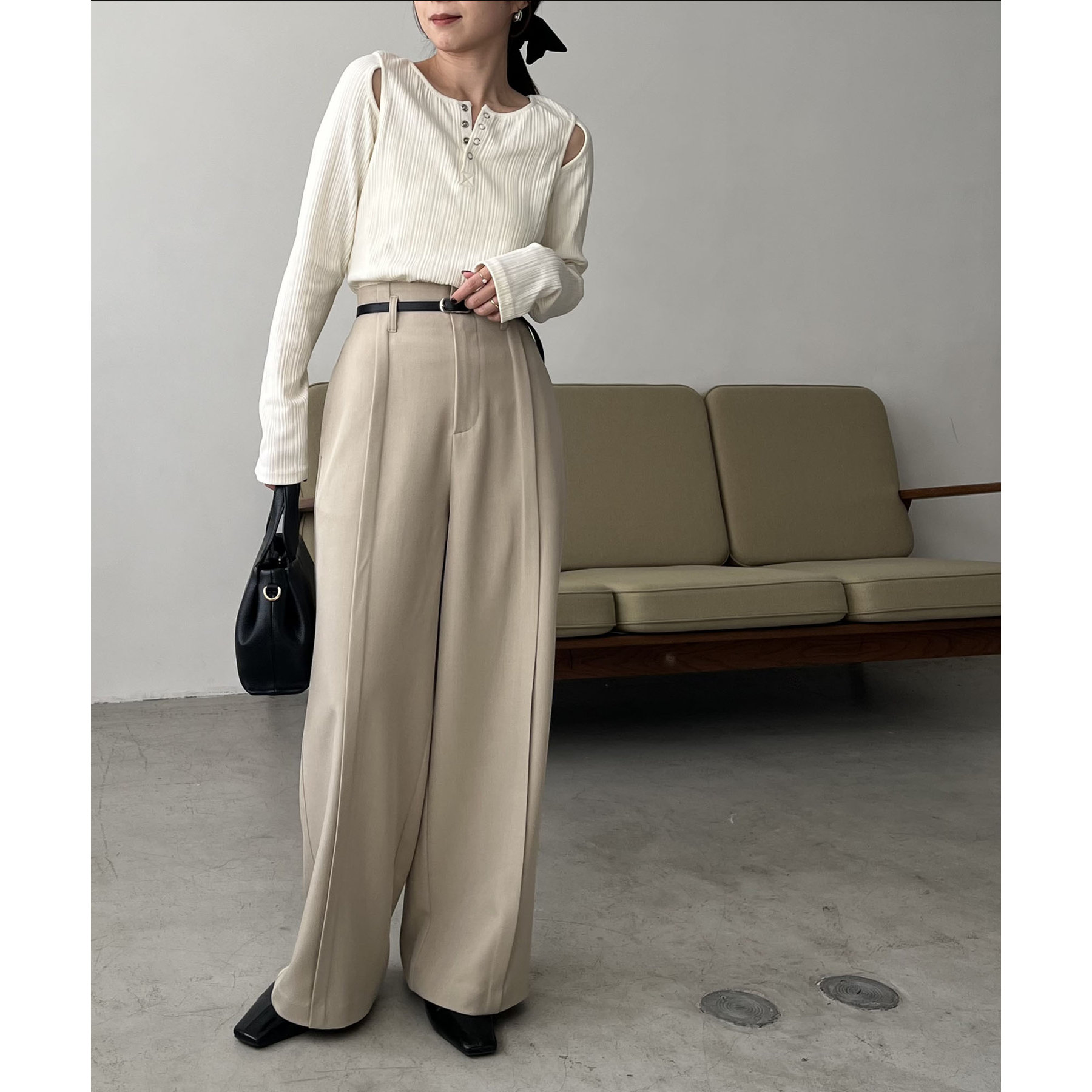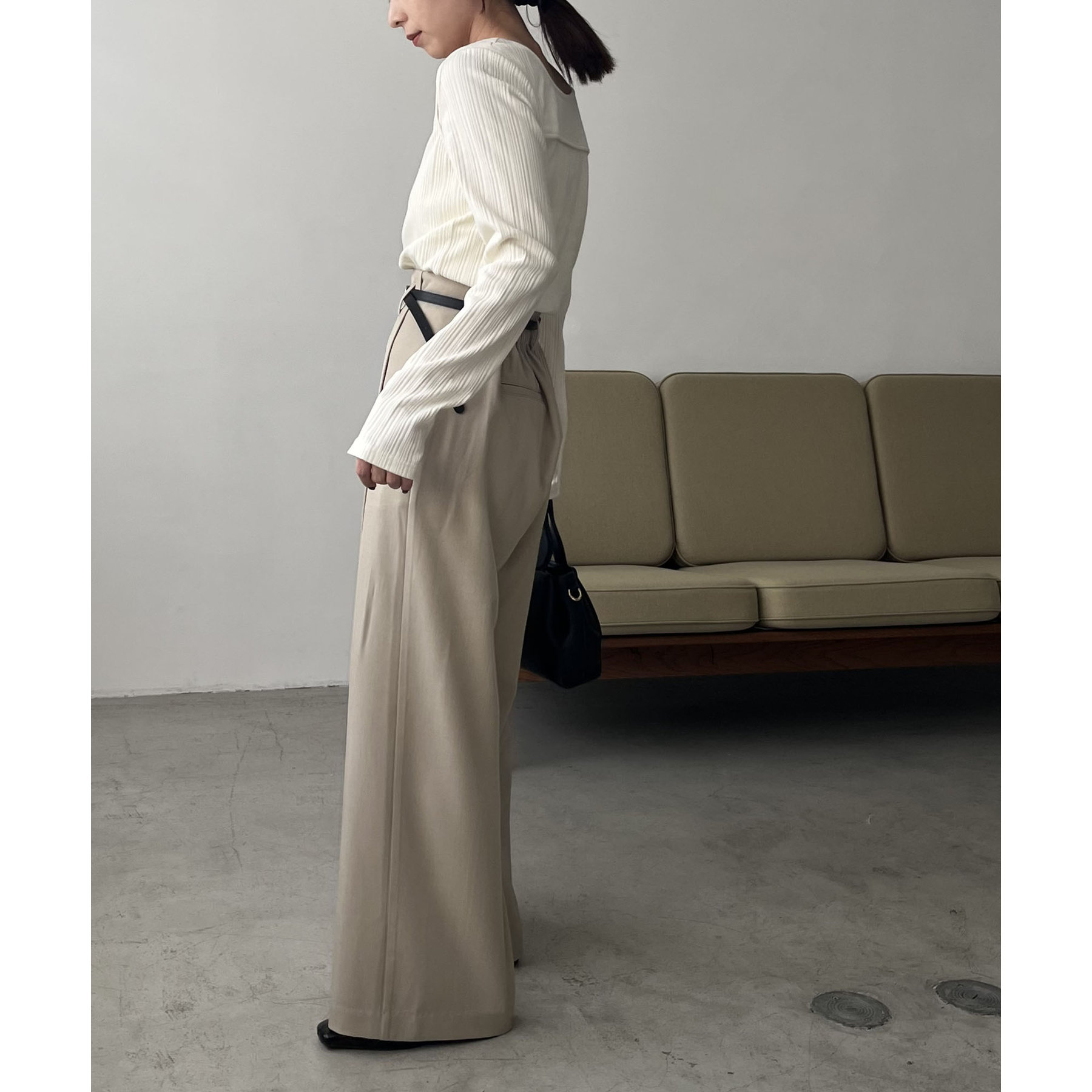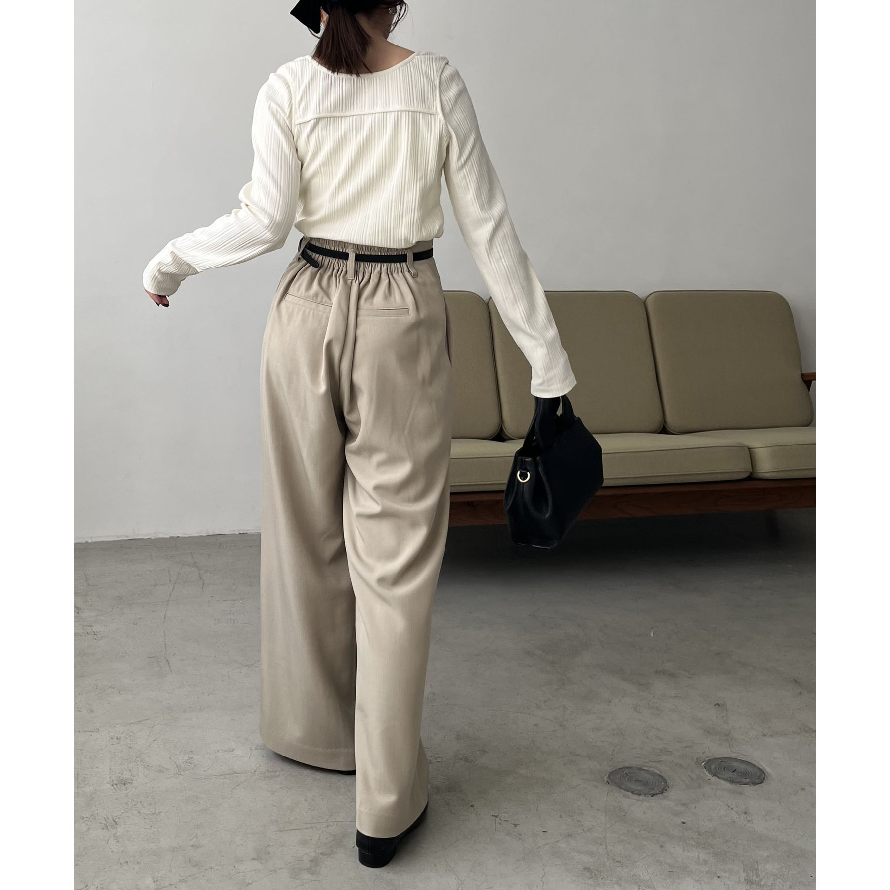 【ベージュ着用アイテム】ランダムリブ2WAYロンT
