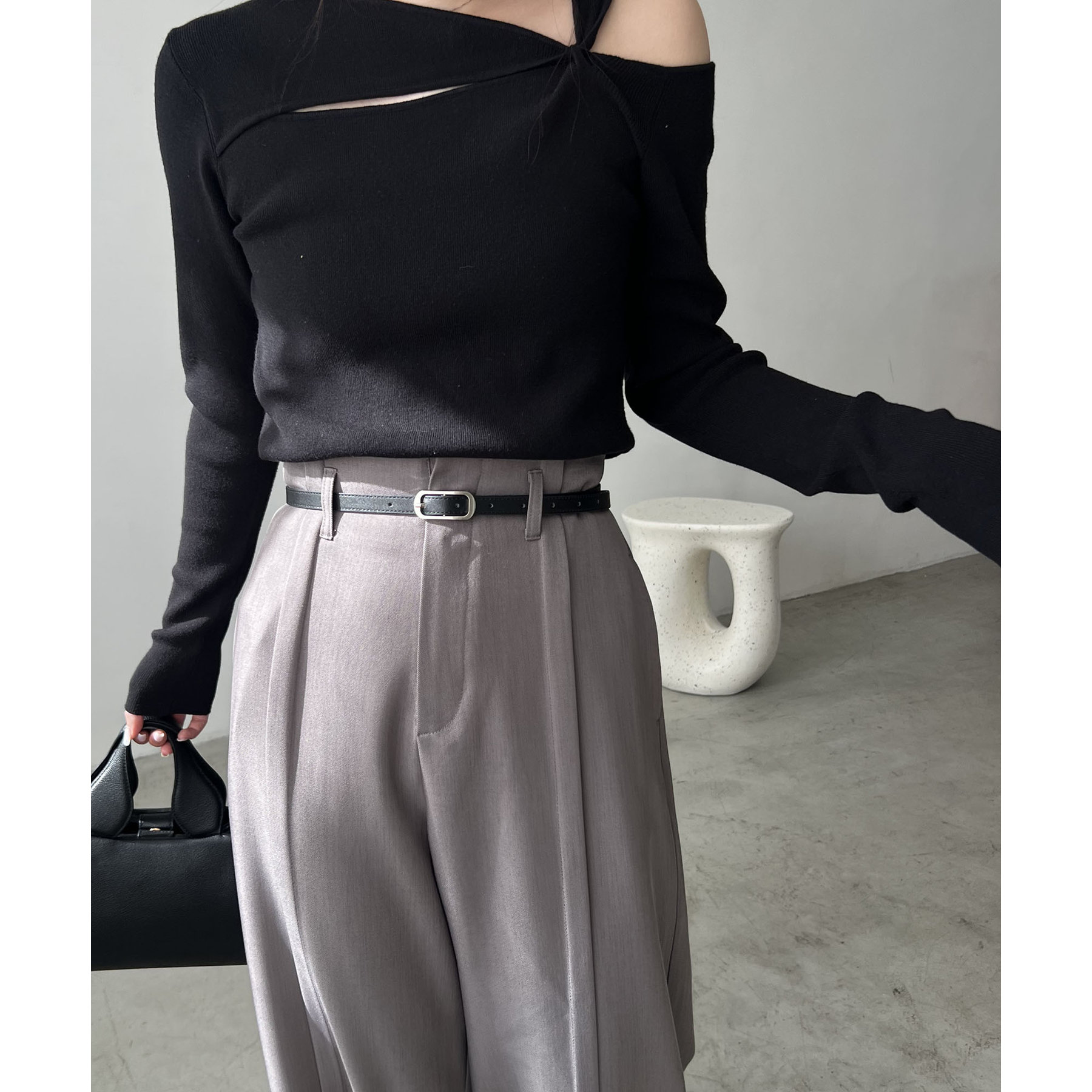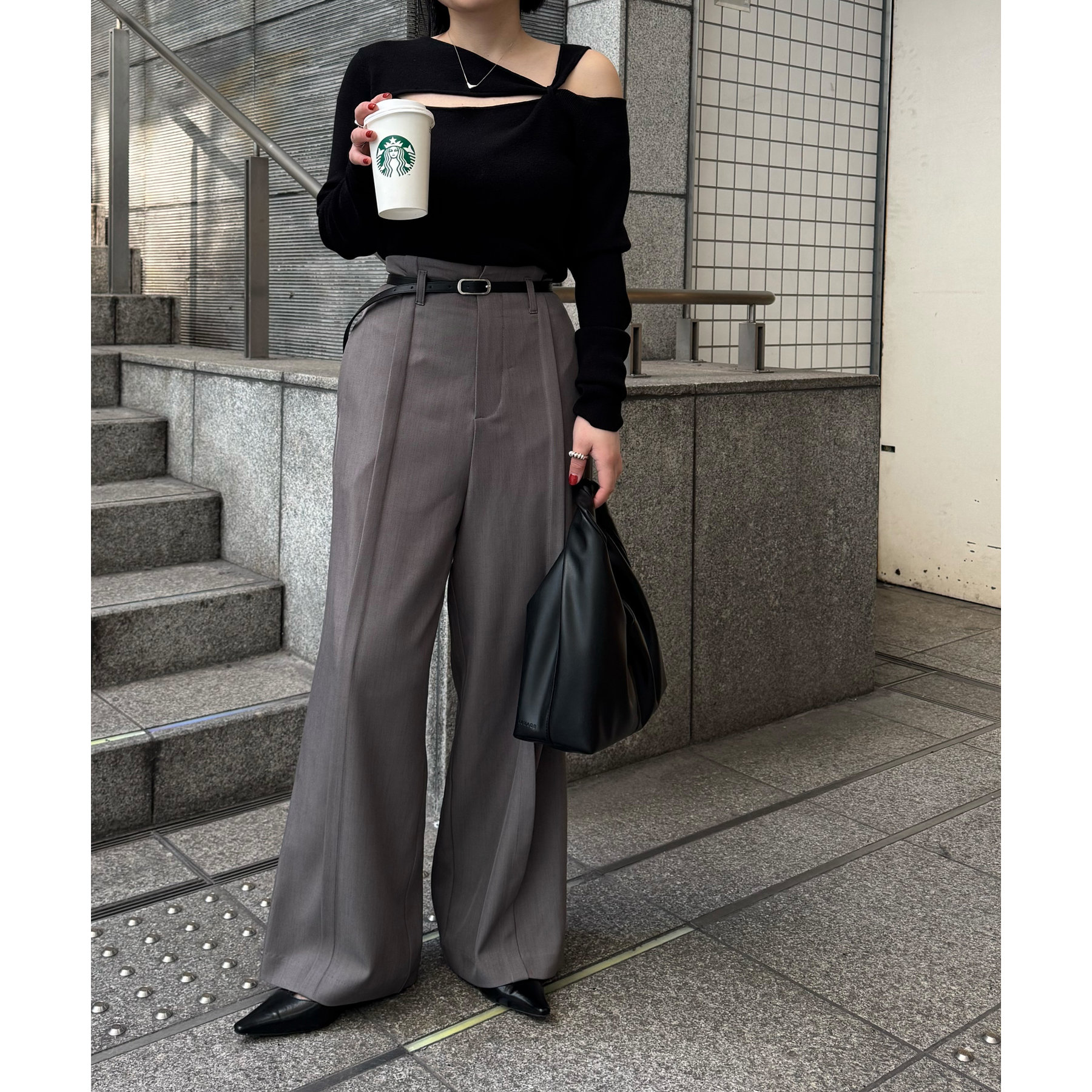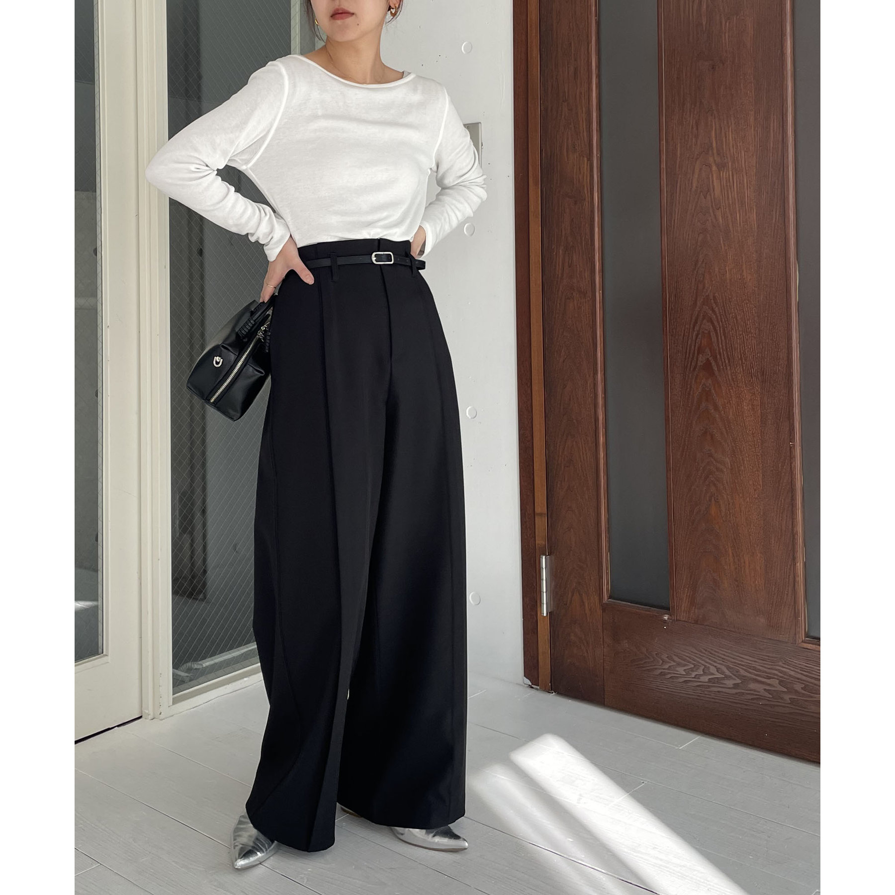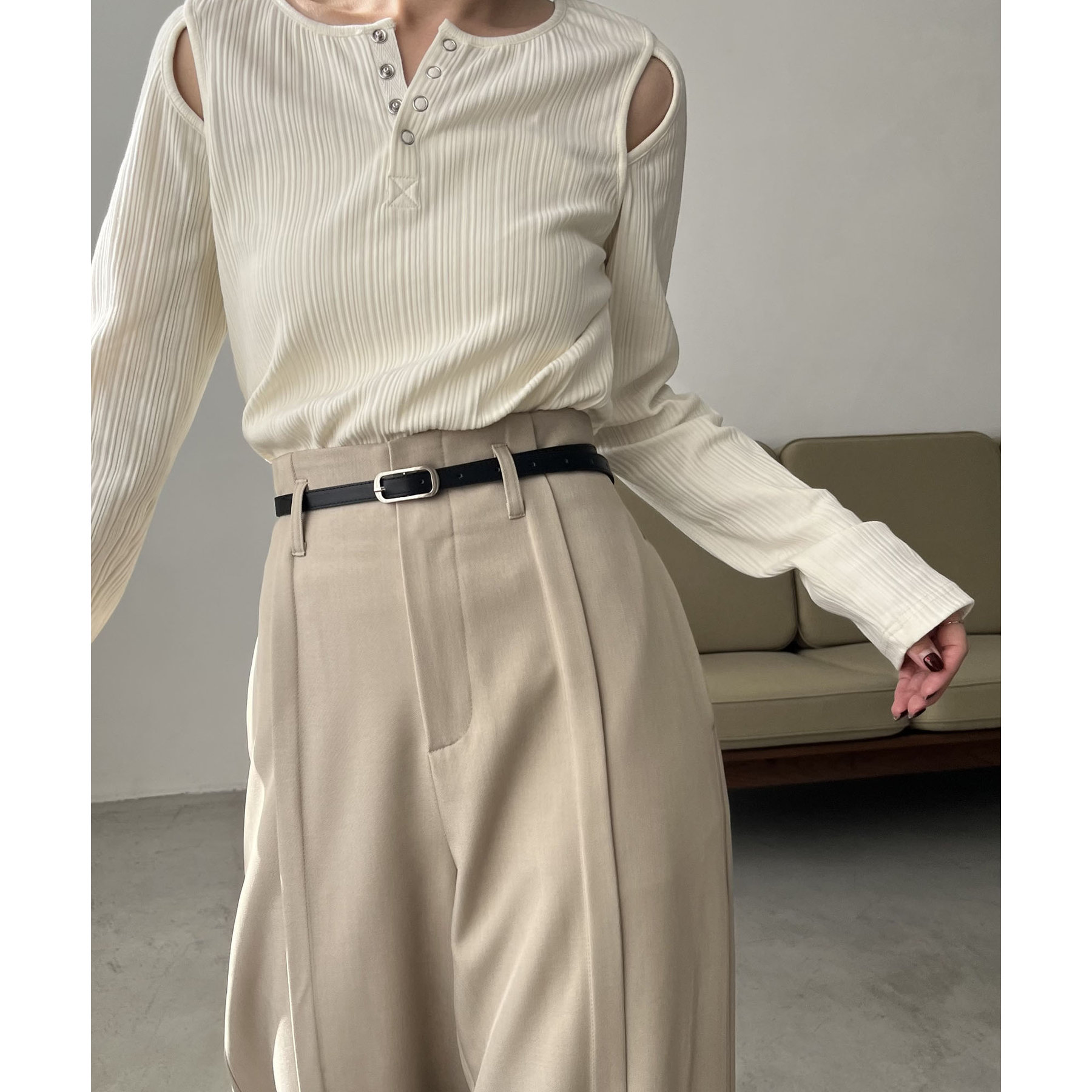 【ベージュ着用アイテム】ランダムリブ2WAYロンT