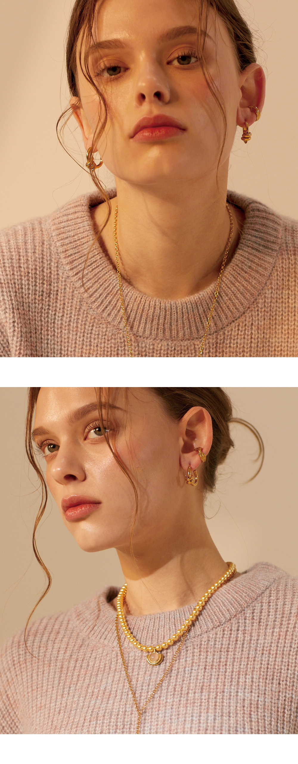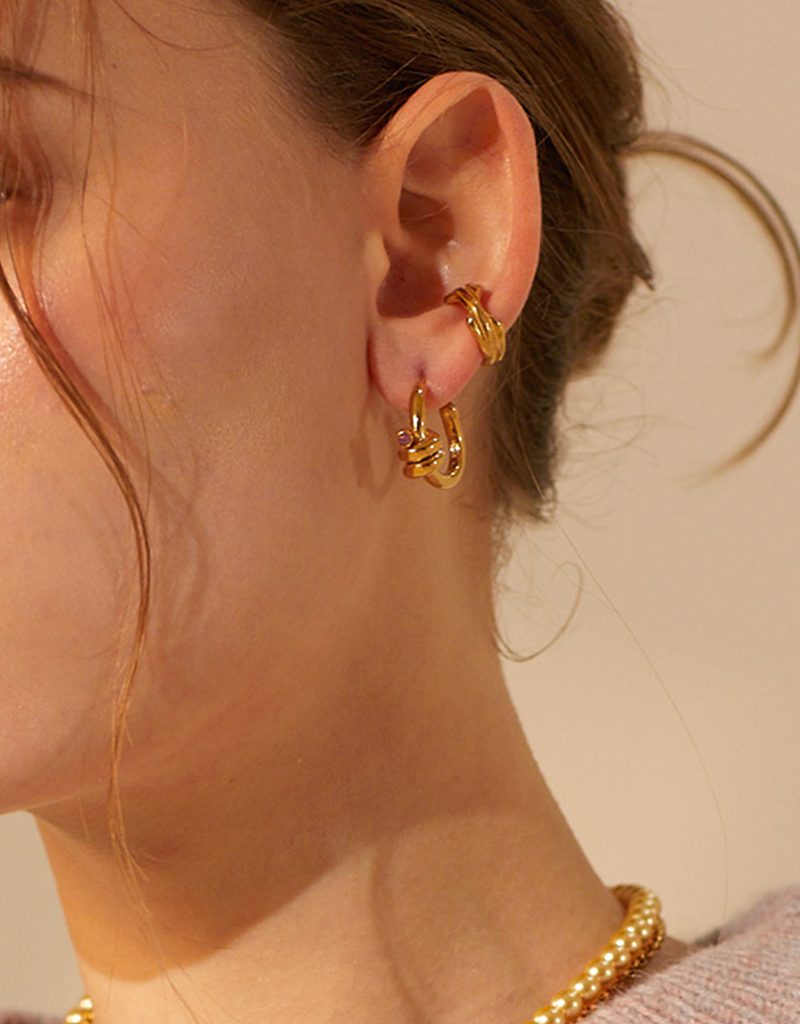 丸く耳を包み込むフープ型のフォルムに、シンプルながらもヴィンテージ感とあたたかみのある質感をプラス。