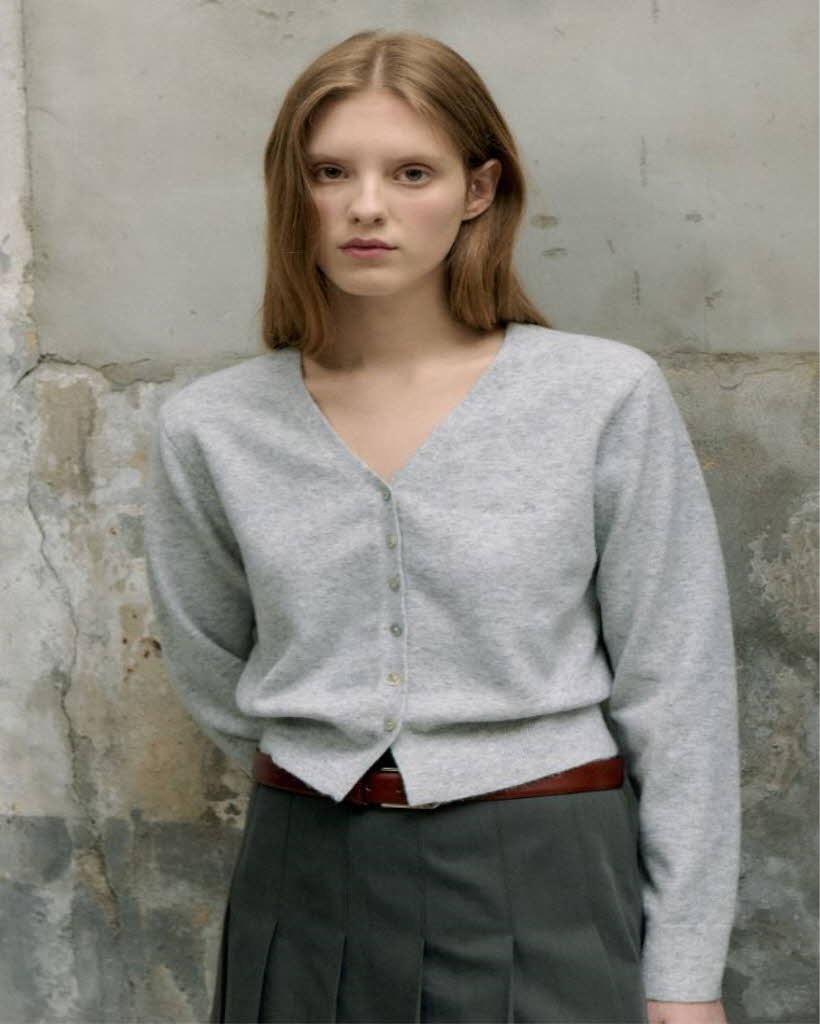 V NECK BOKASHI CARDIGAN LIGHT GRAY