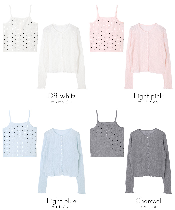 シアーカーディガンドットキャミセット