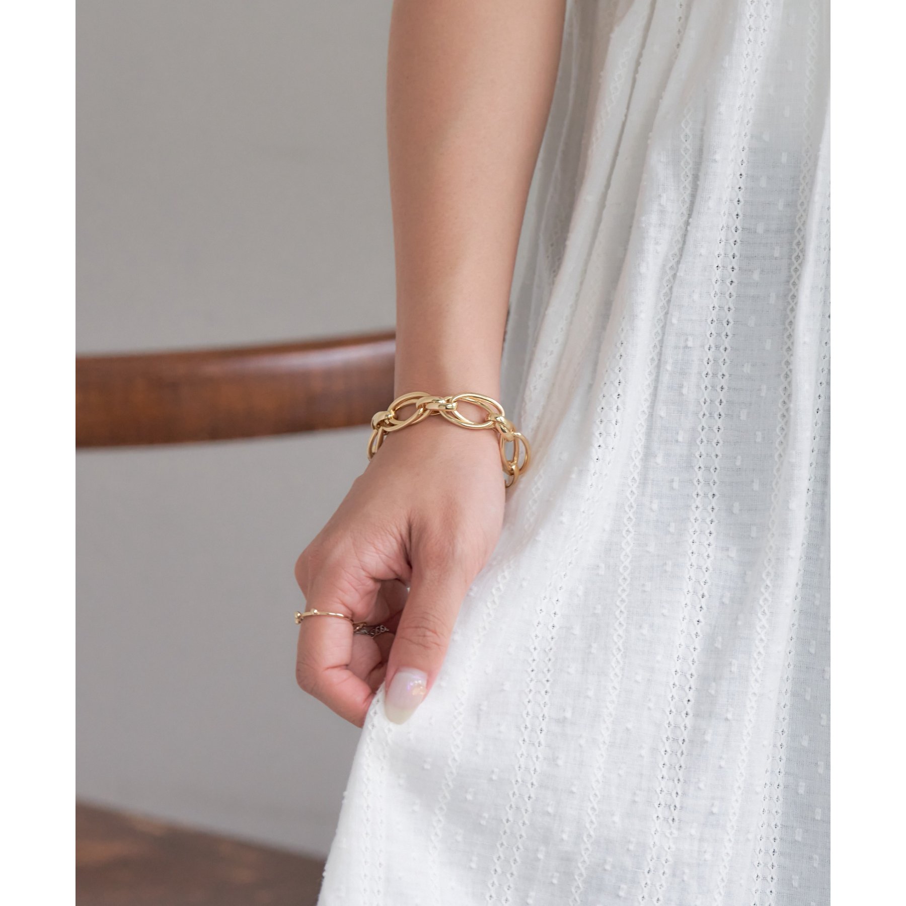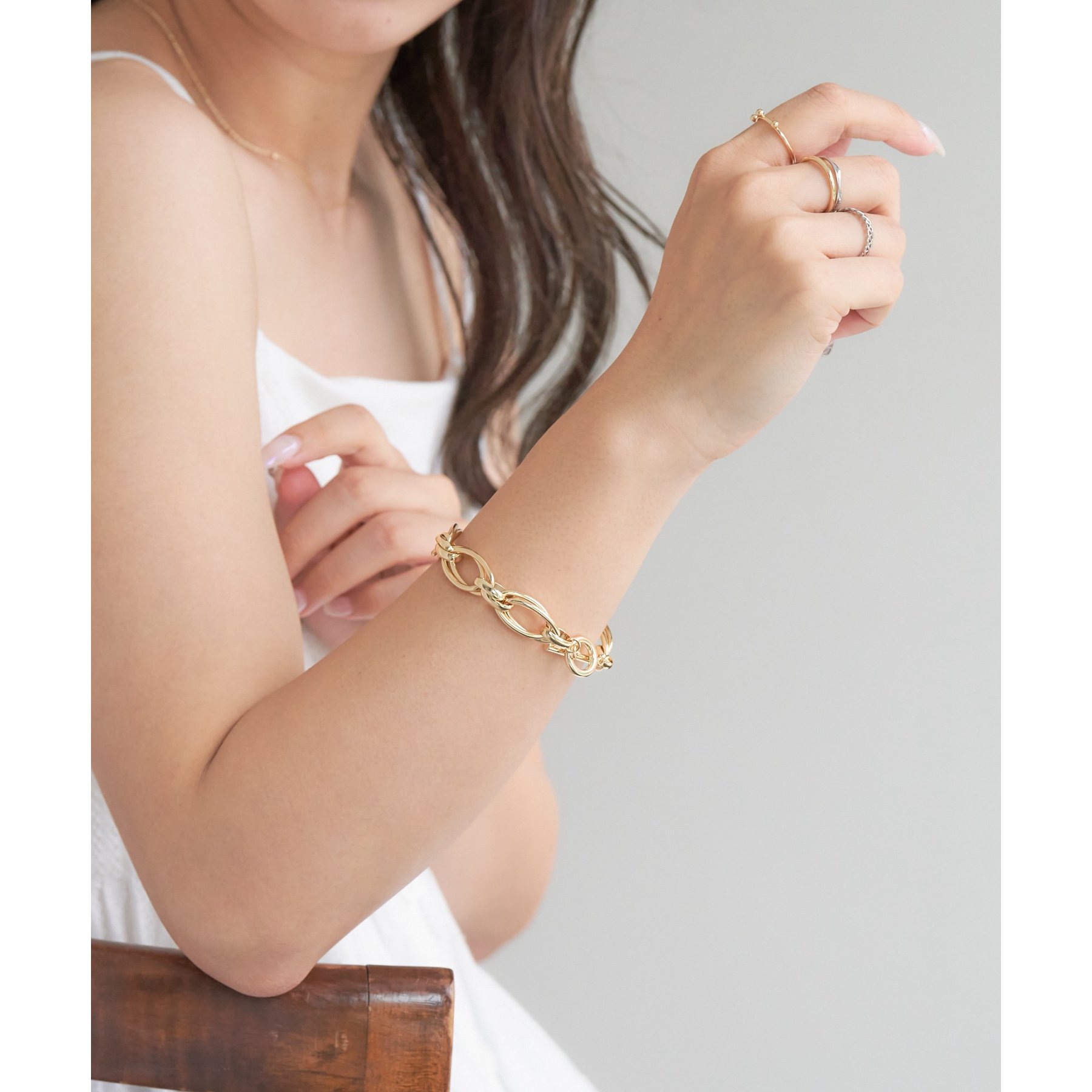 異なるチェーンを組み合わせ、立体感のある重なりで仕上げたレイヤードチェーンブレスレット。ボリュームがありながらも抜け感があり、手元を印象的に仕上げてくれます。シンプルな装いにプラスするだけで、コーデ全体を引き締めてくれるアクセントに◎カジュアルにもきれいめにも合わせやすく、1つあると頼れるアイテムです。