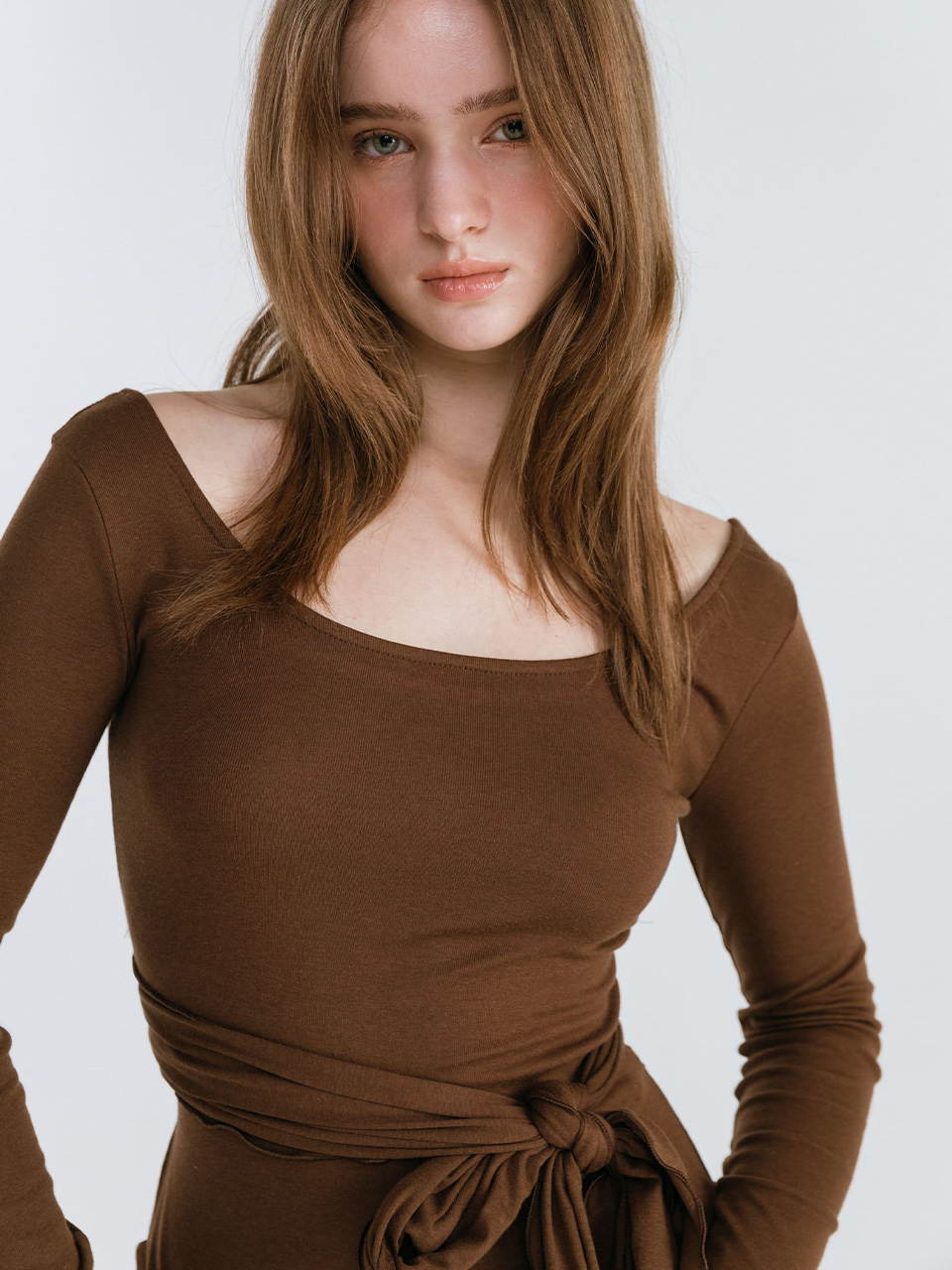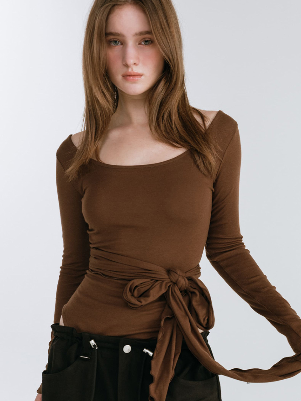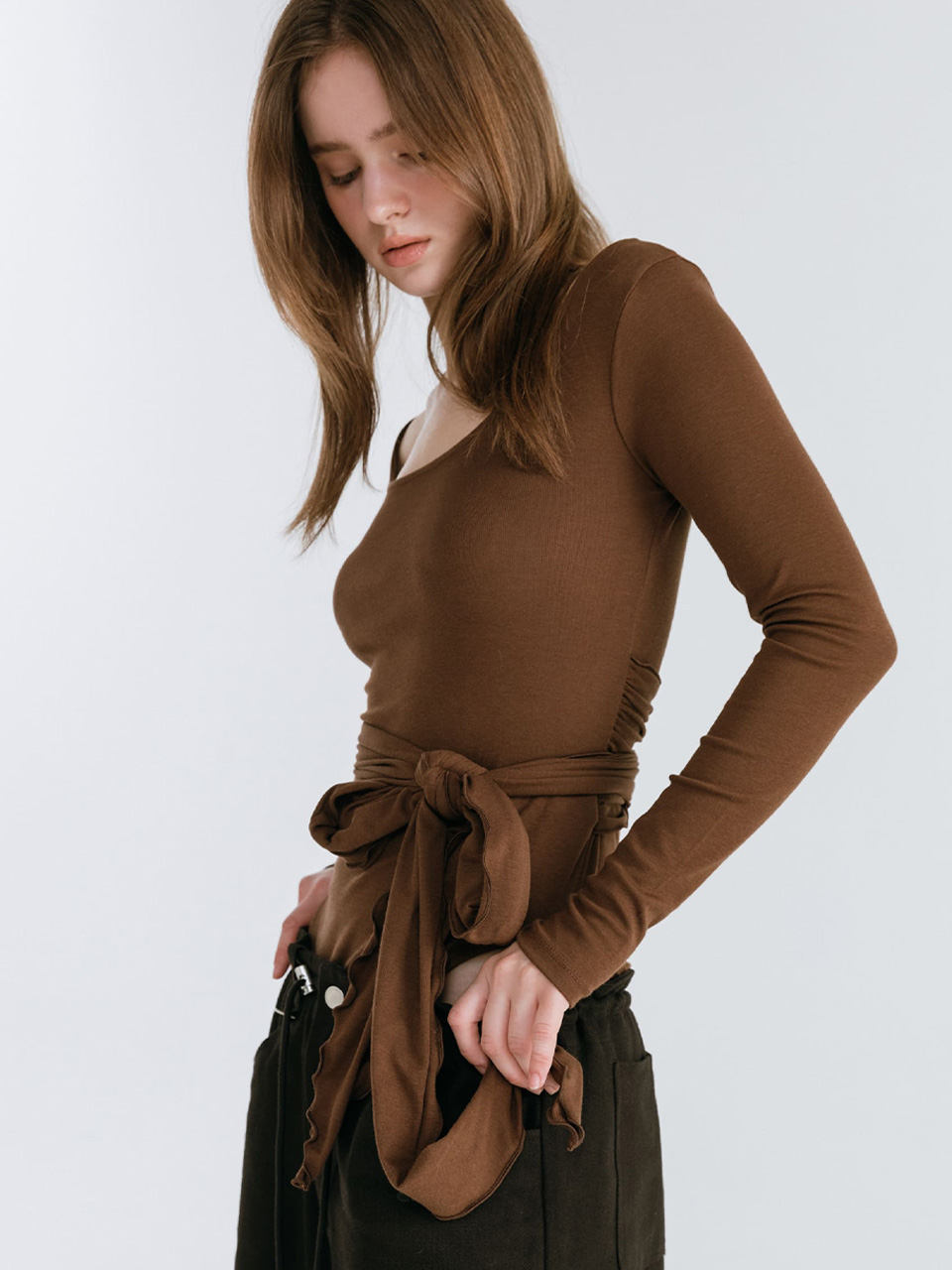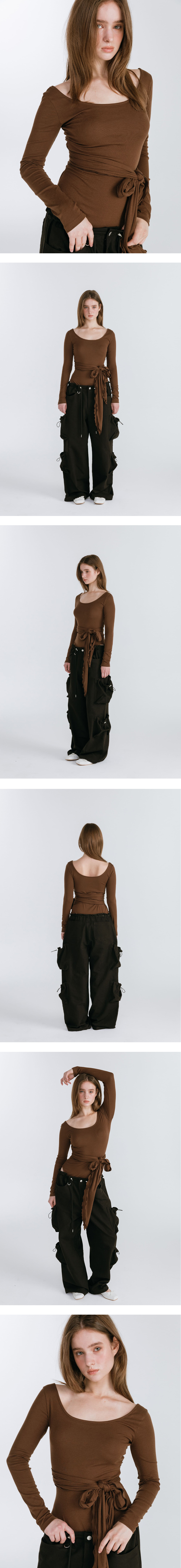 STRAP LAYERED T-SHIRT / BROWN