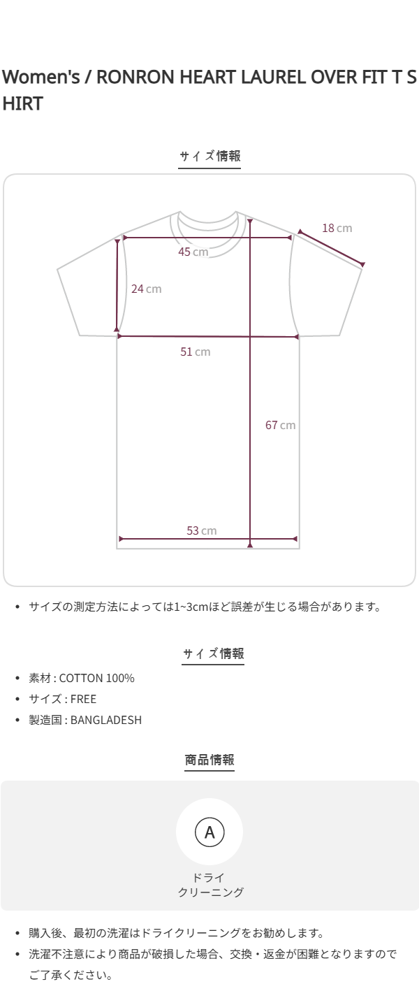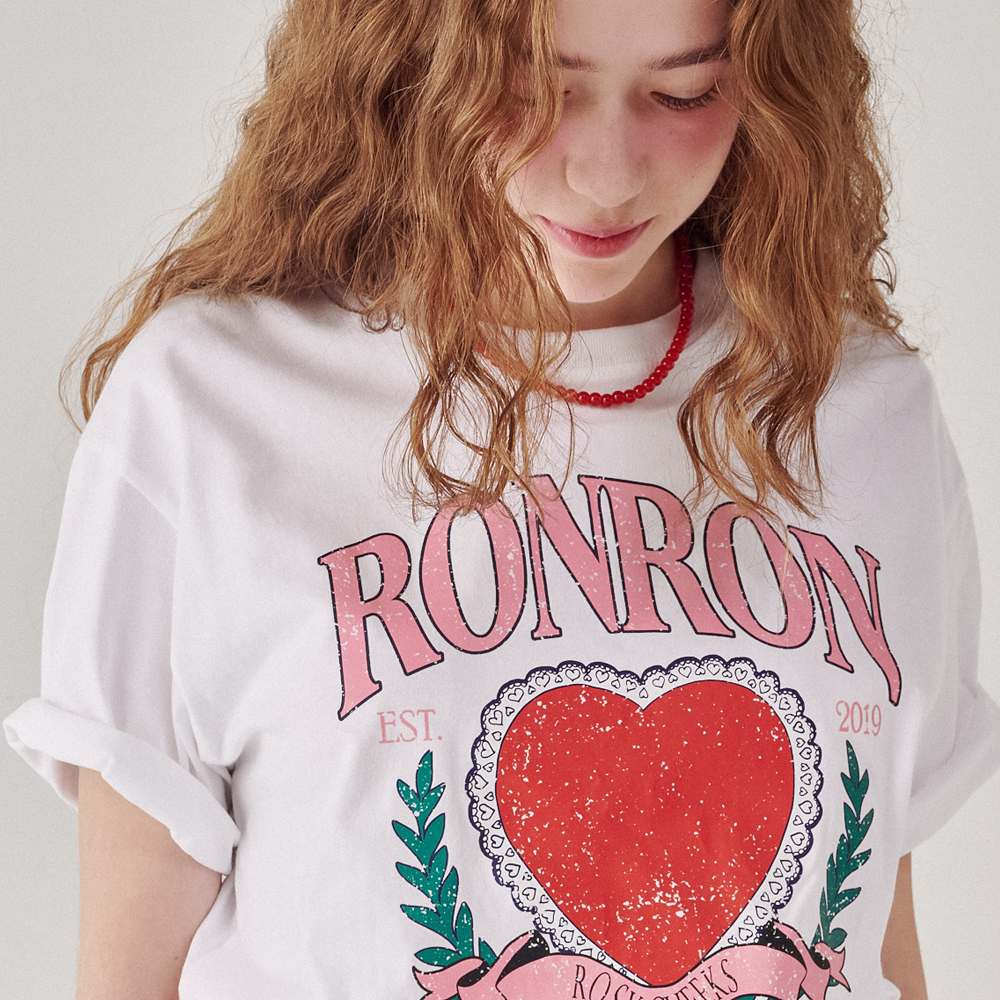 RONRON HEART LAUREL OVER FIT T SHIRT WHITE