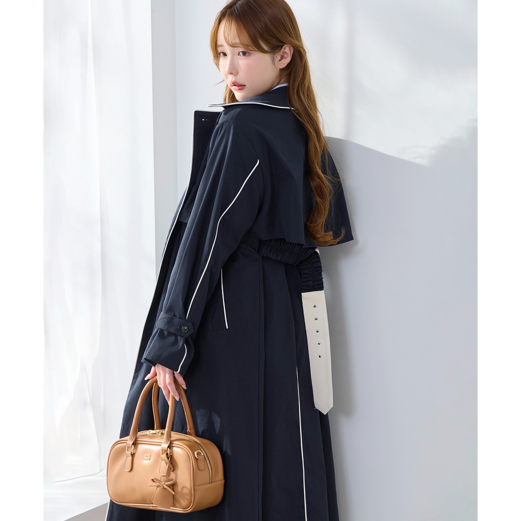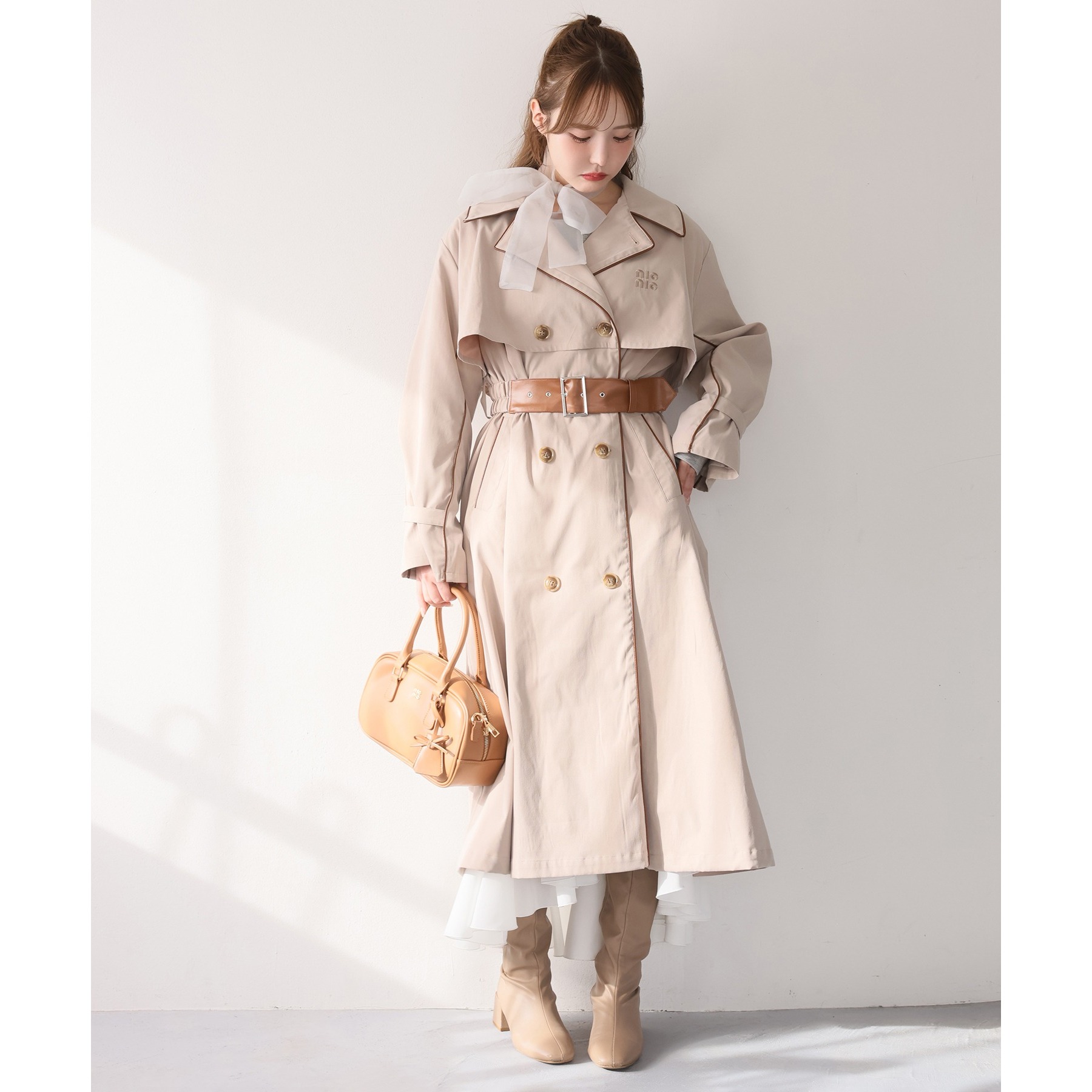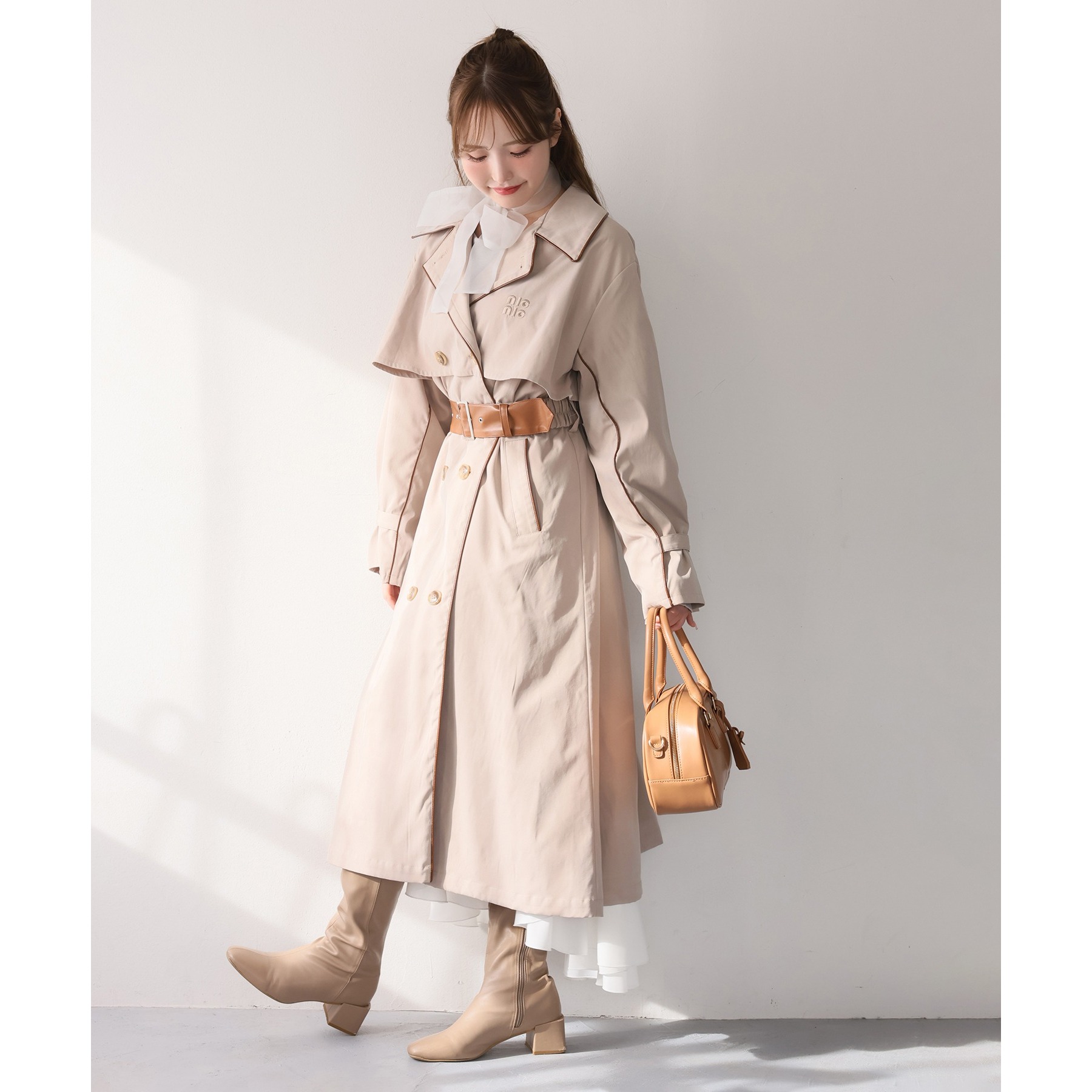 やわらかくて落ち感のある生地が、上品さを引き立てるトレンチコート。