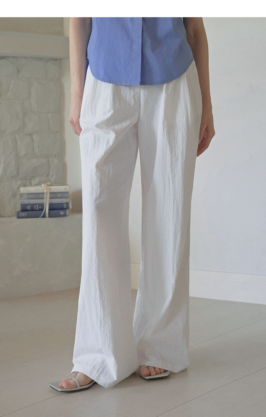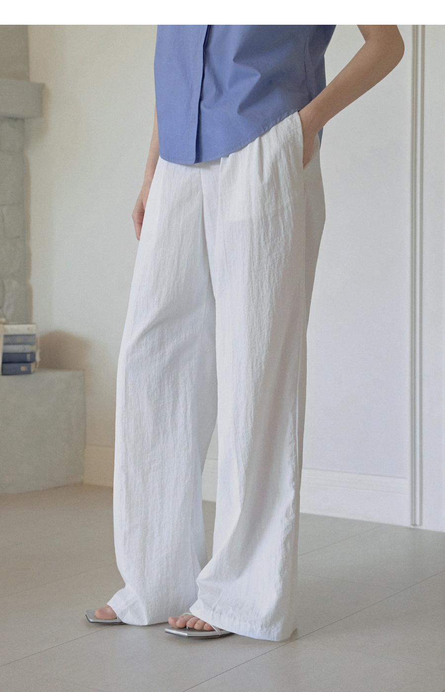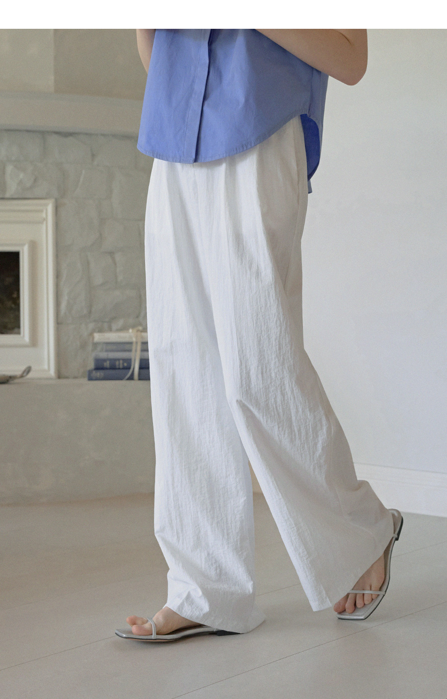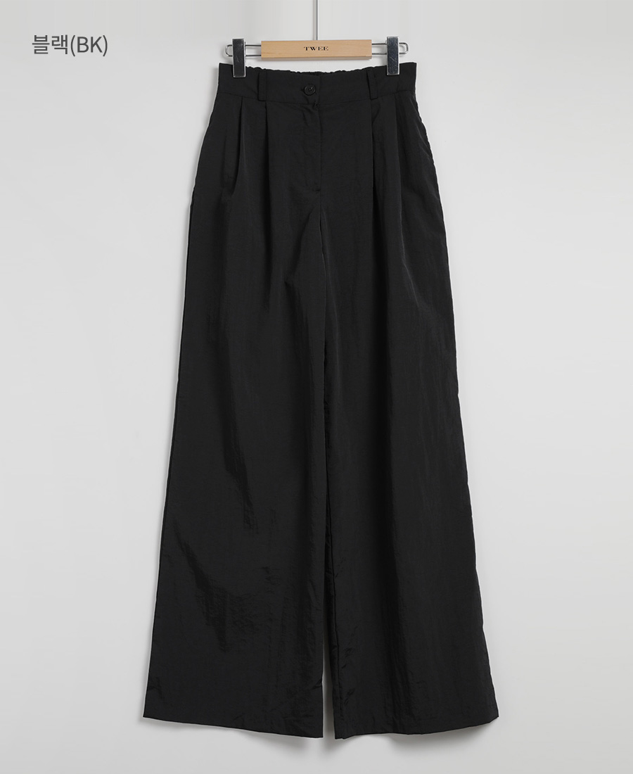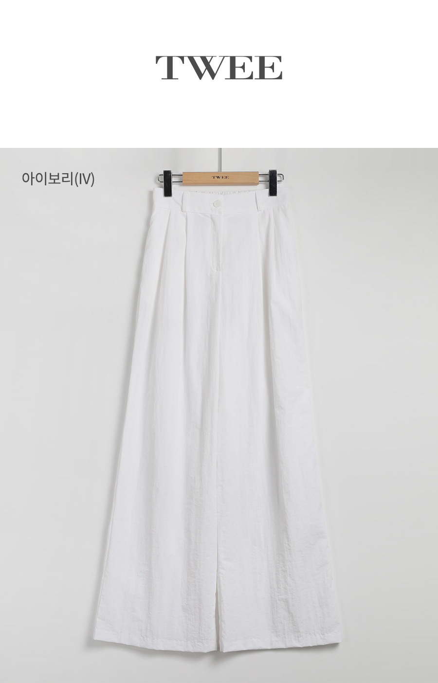 와이드한 핏에 맥시한 기장감으로 떨어지는 슬랙스 무드의 쿨팬츠입니다