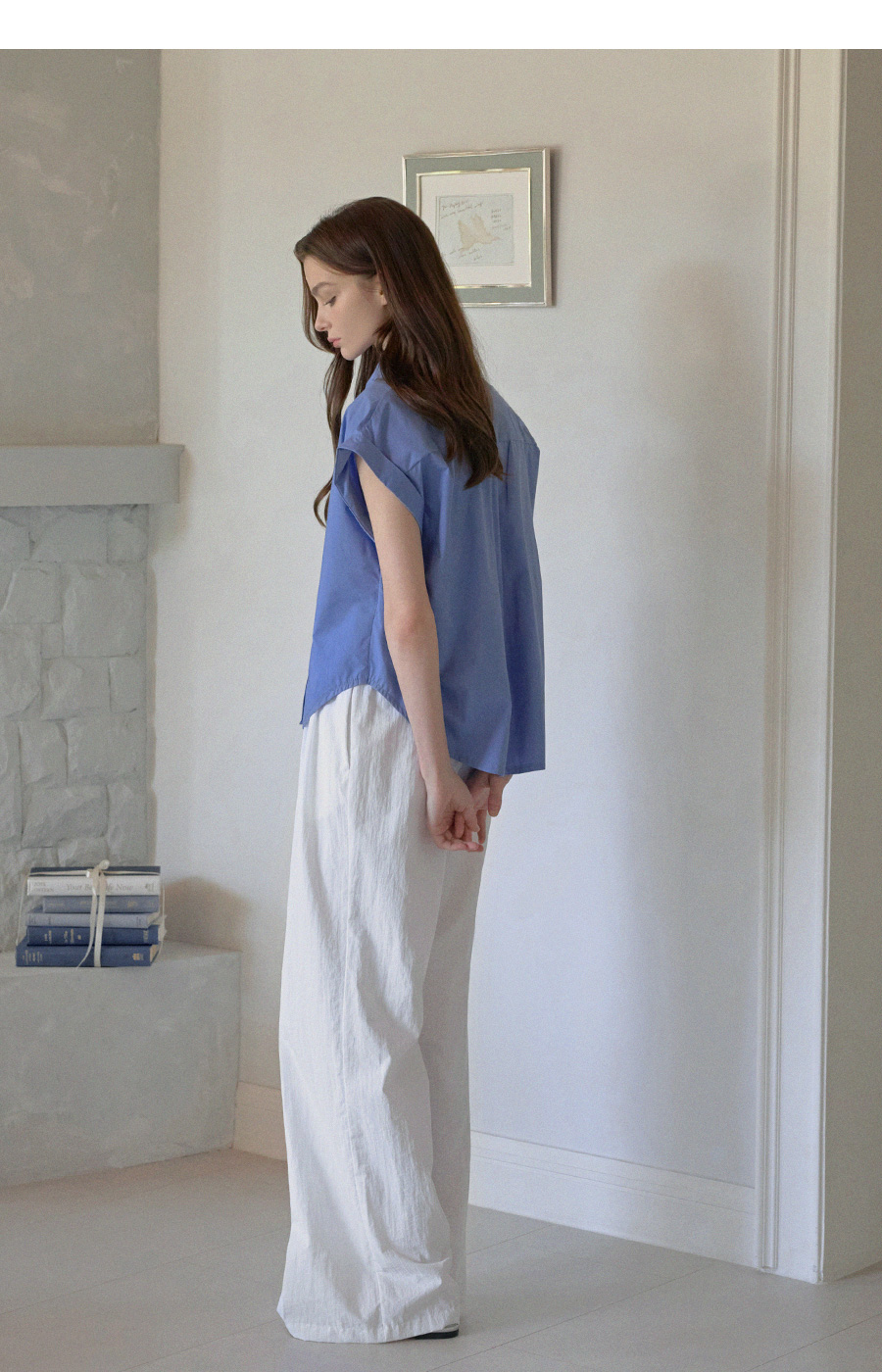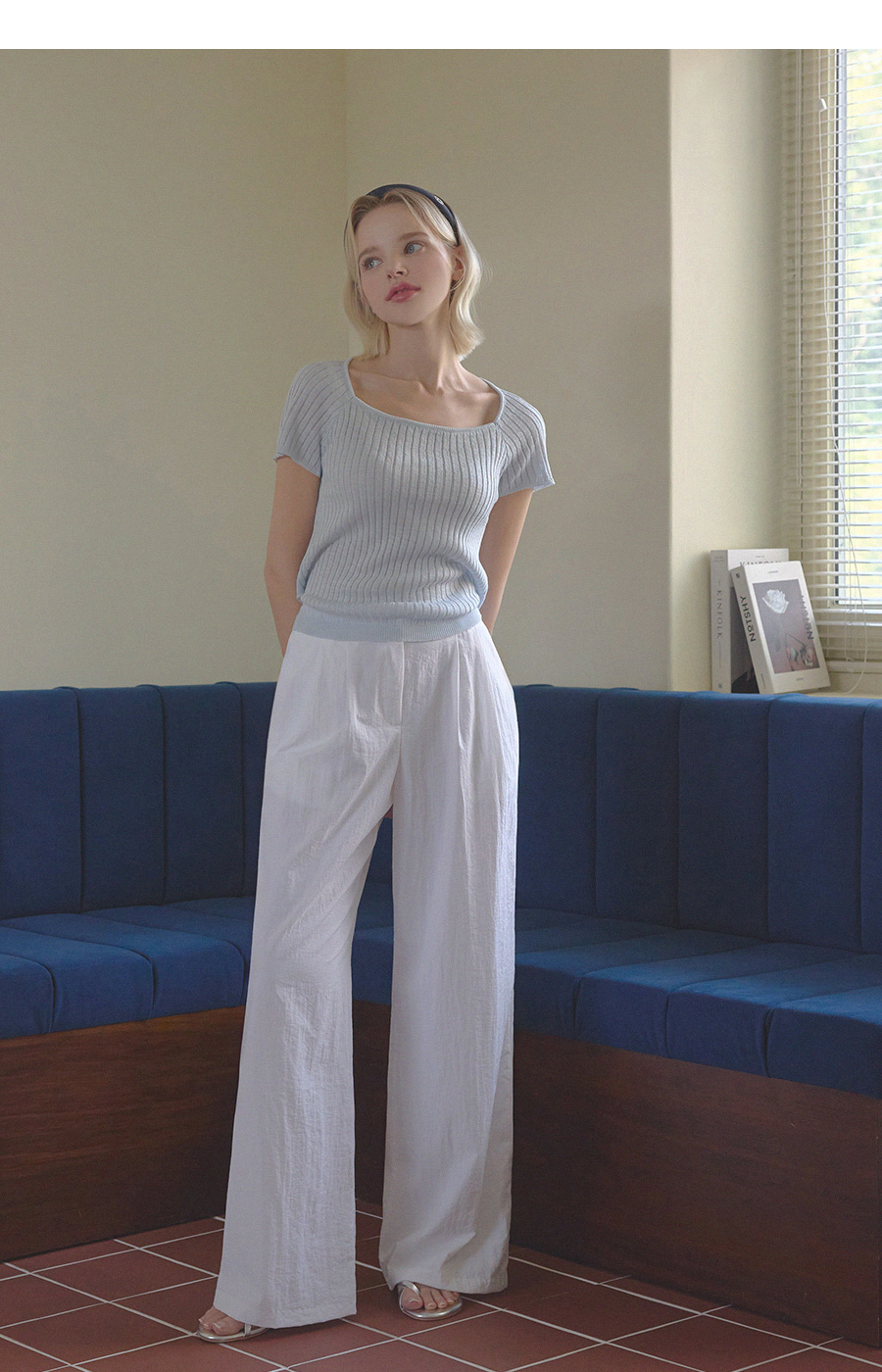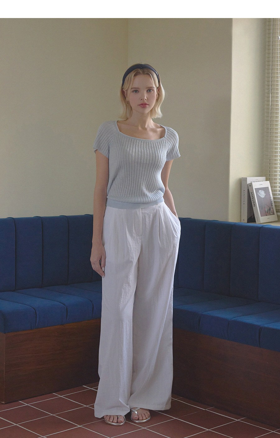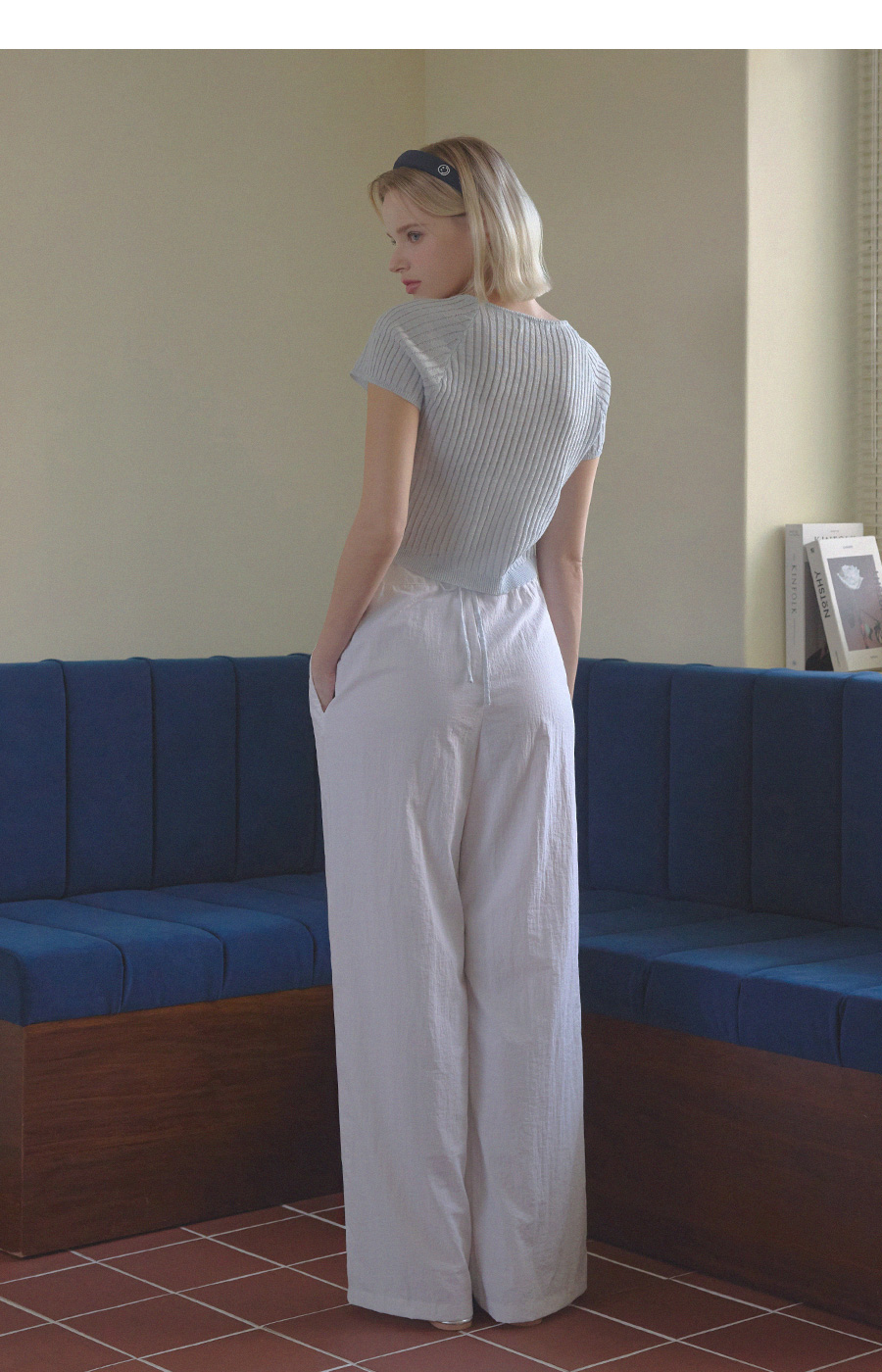 와이드한 핏에 맥시한 기장감으로 떨어지는 슬랙스 무드의 쿨팬츠입니다
