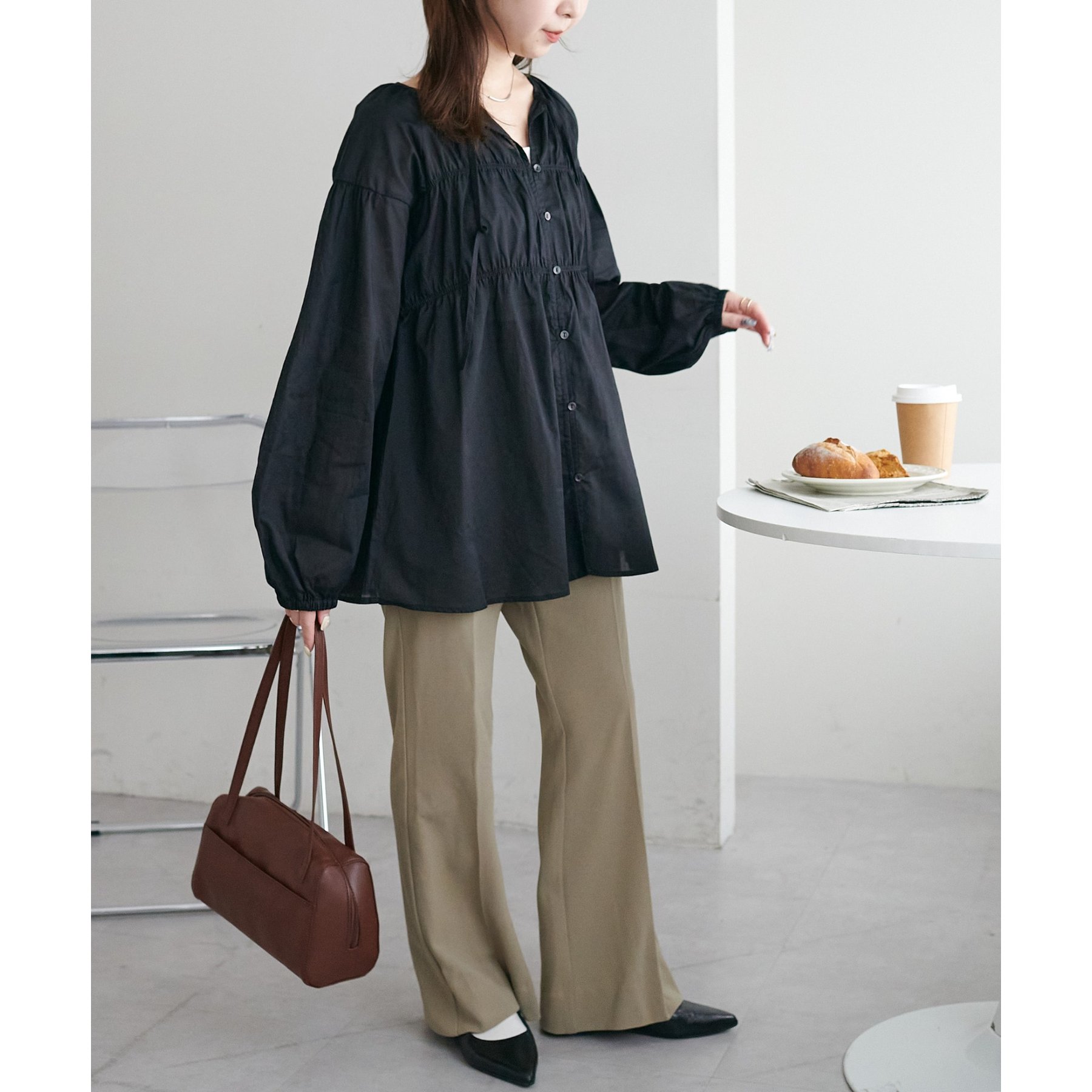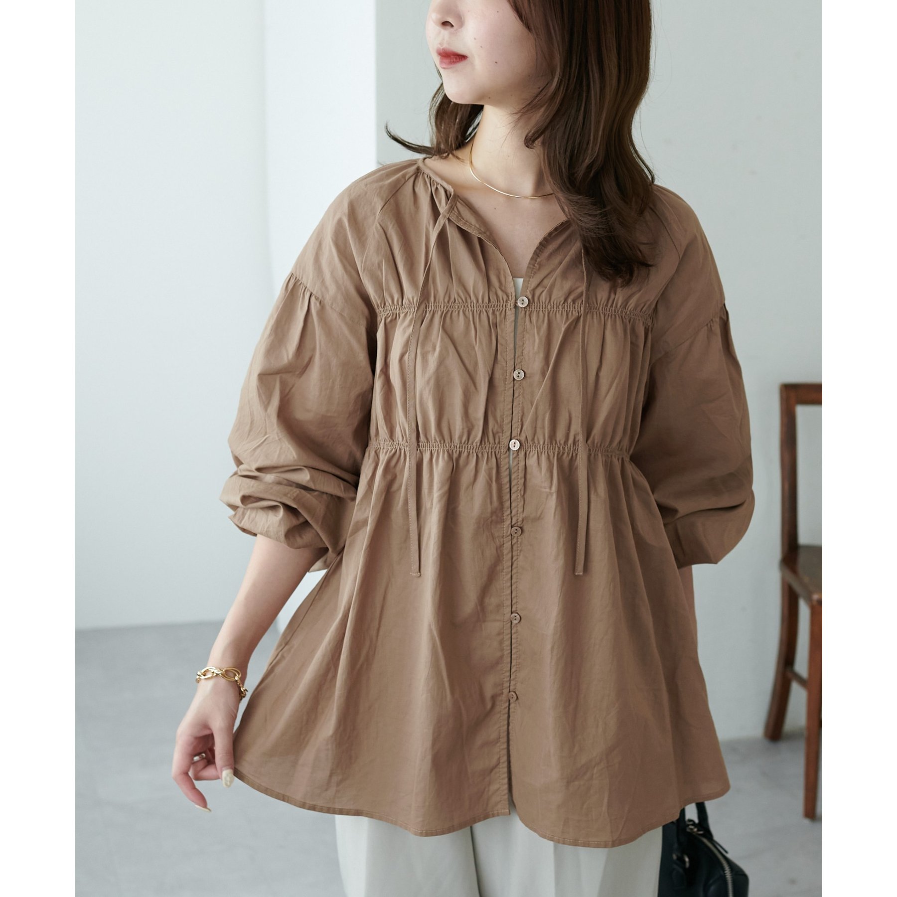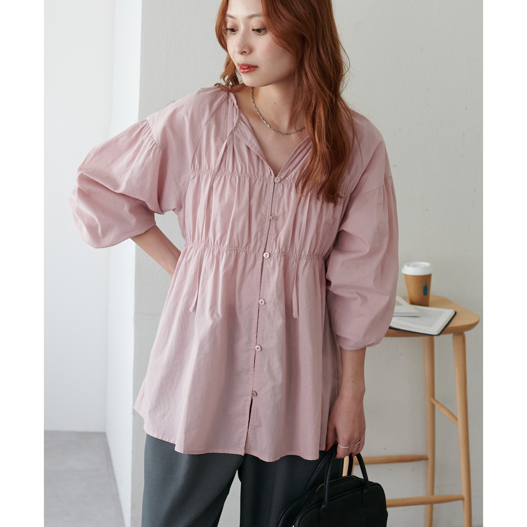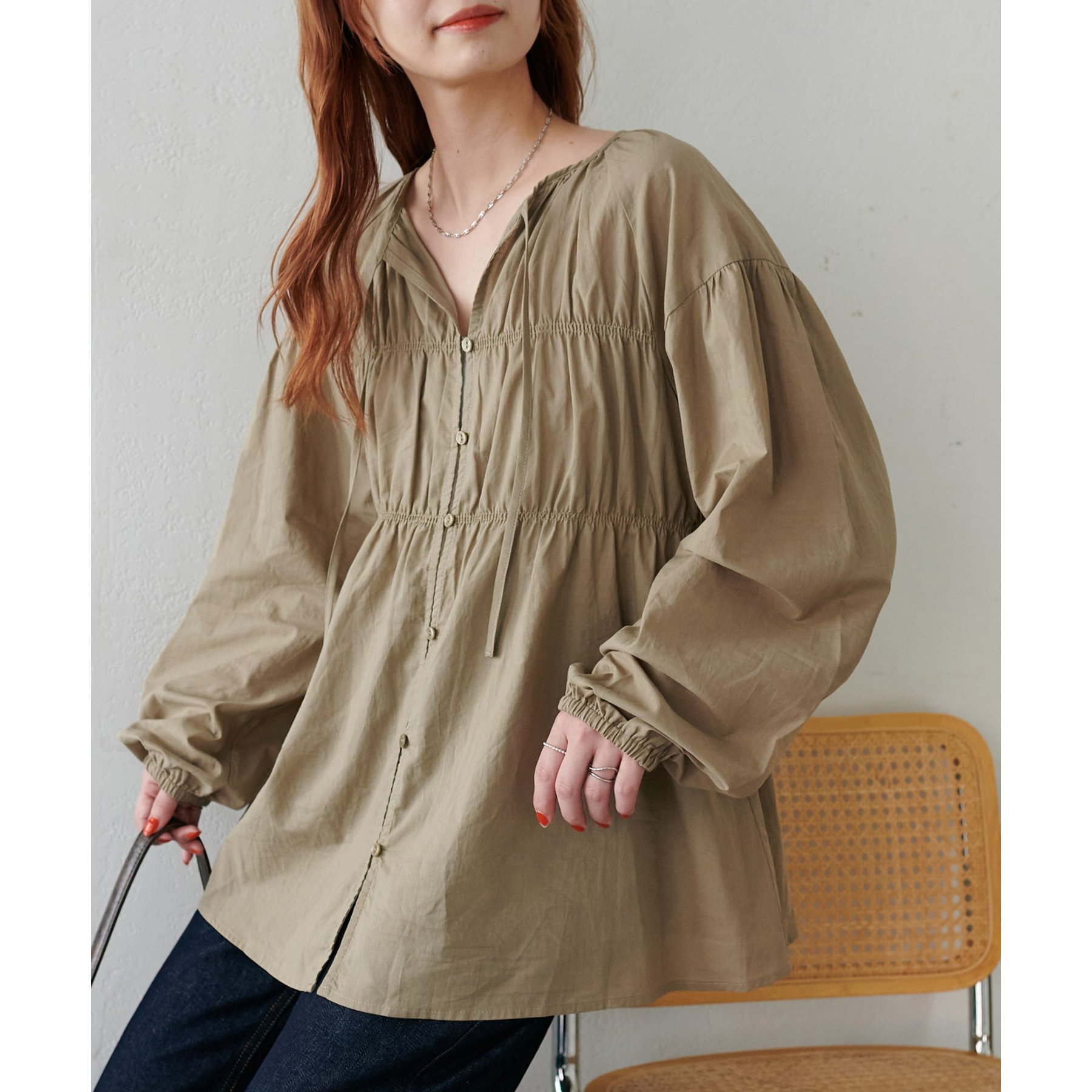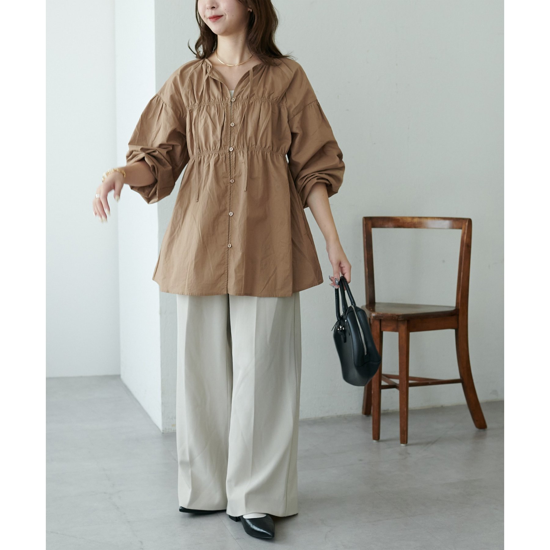 ギャザー前開きブラウス《WEB限定カラーあり》