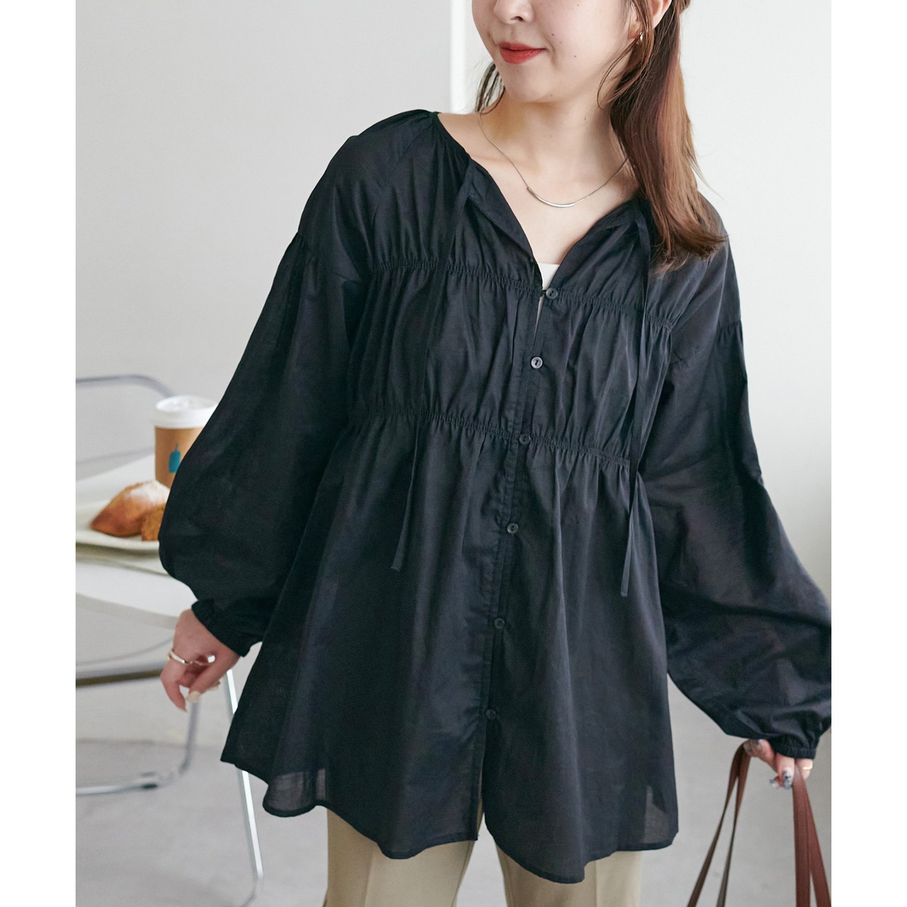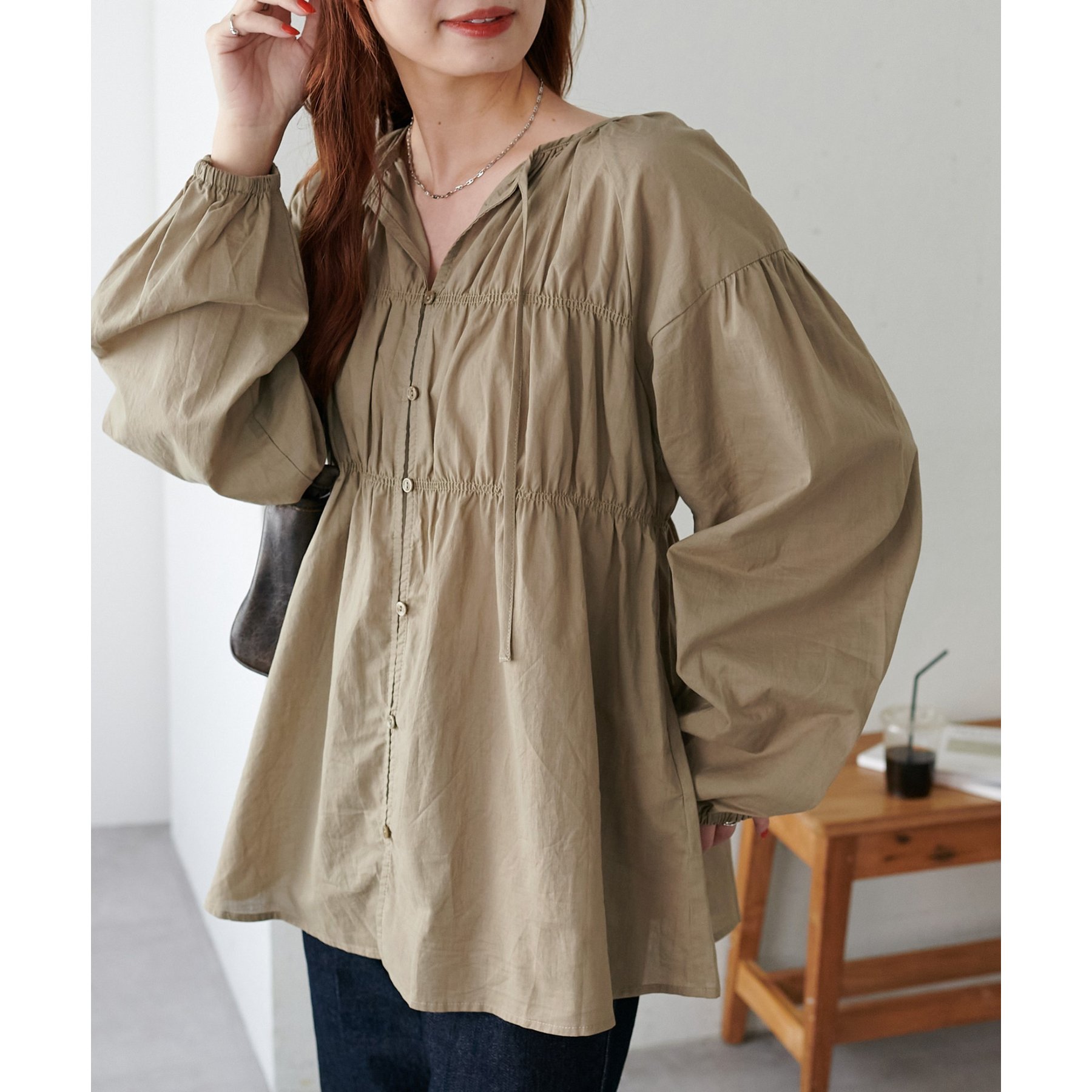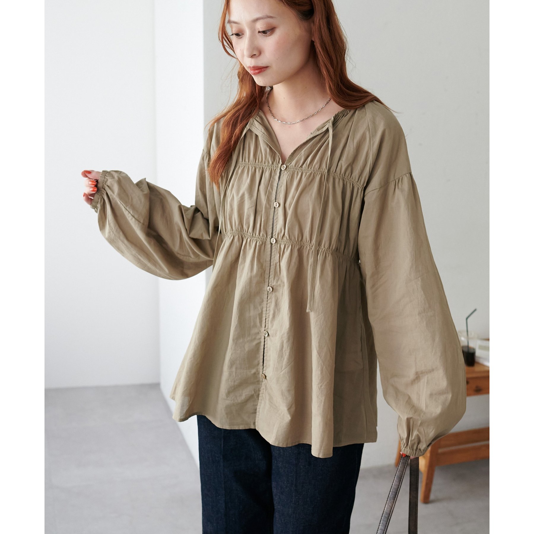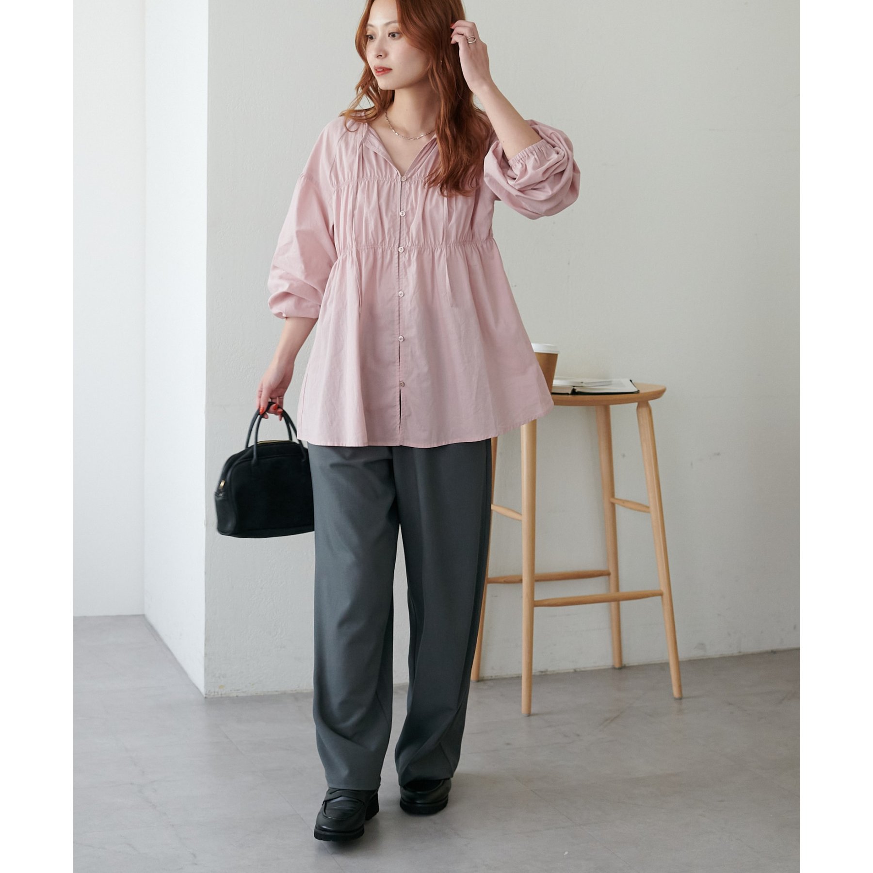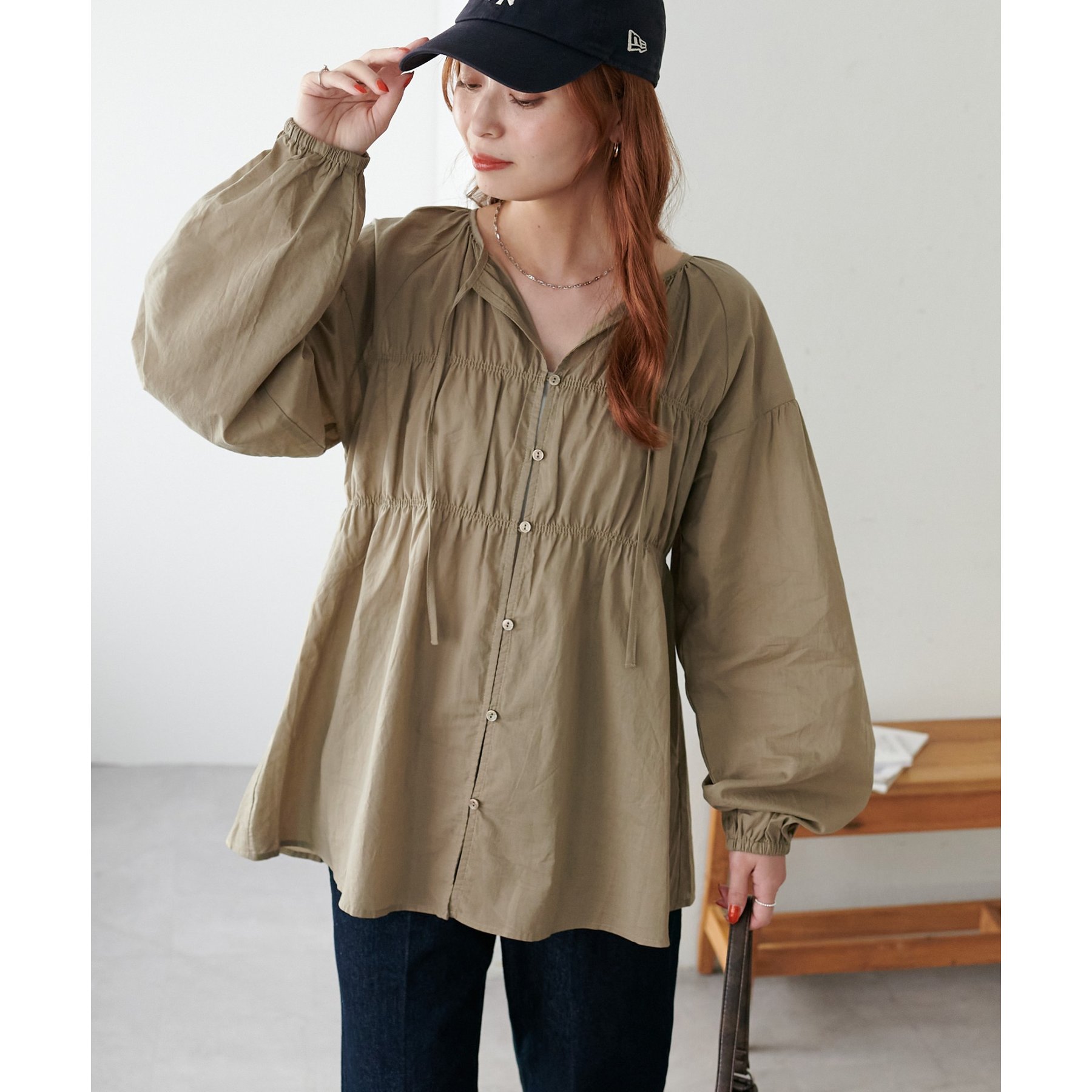 ギャザー前開きブラウス《WEB限定カラーあり》