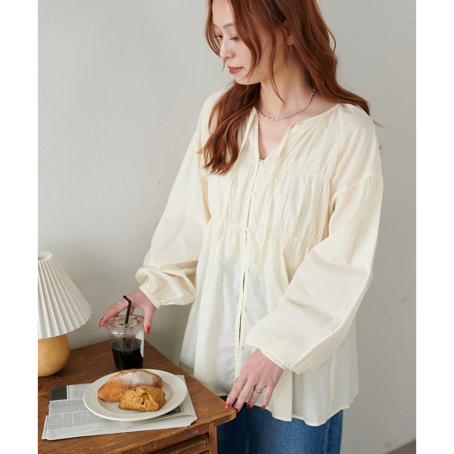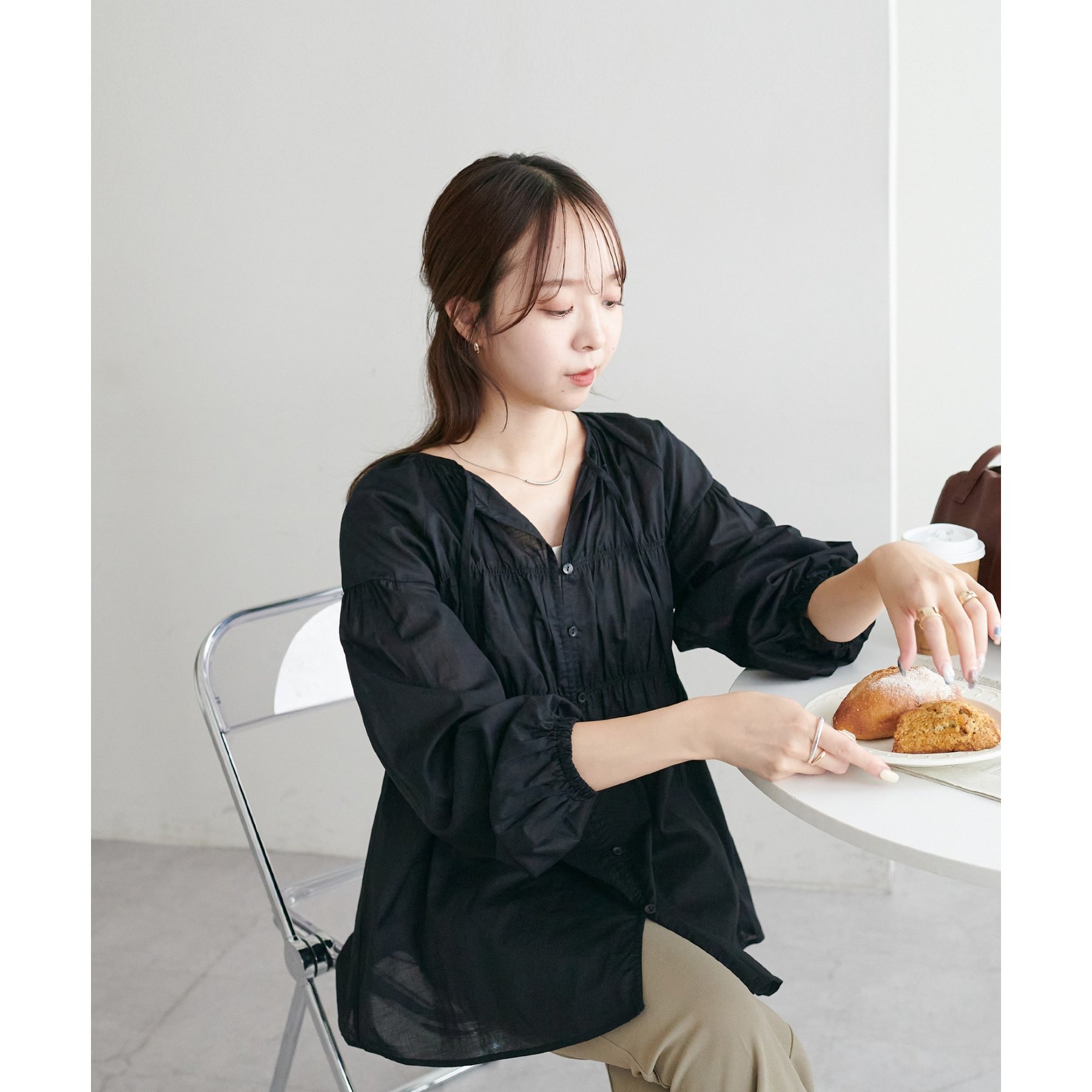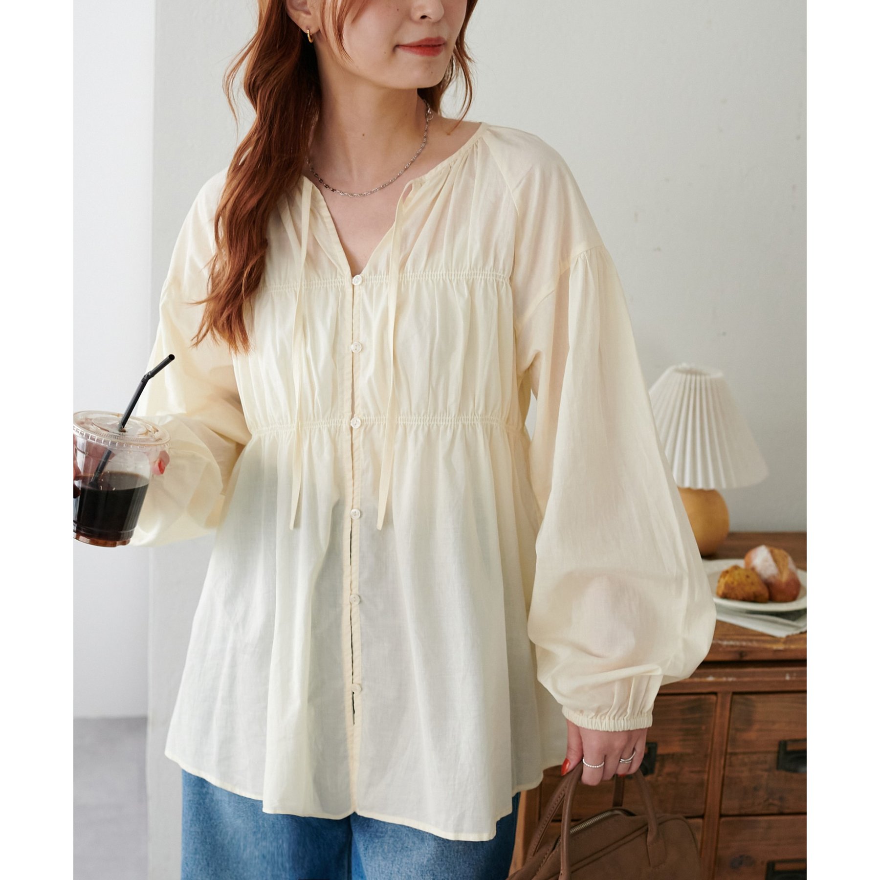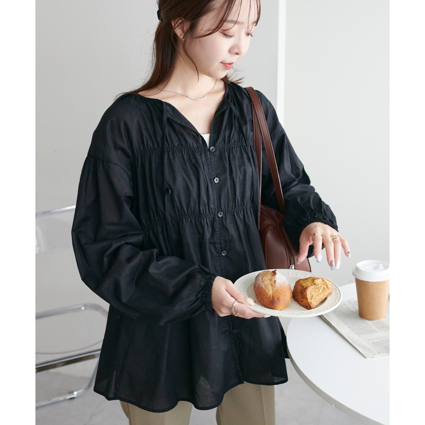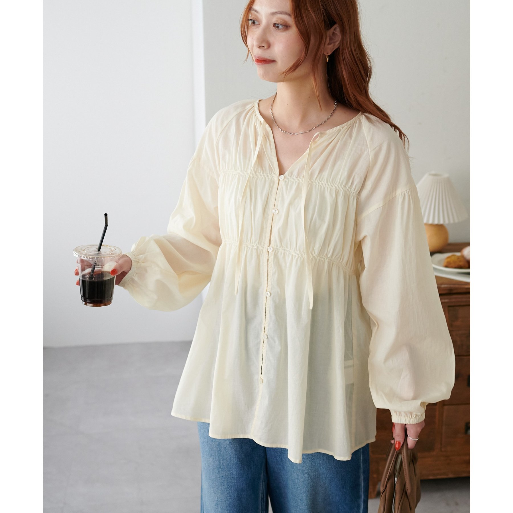ギャザー前開きブラウス《WEB限定カラーあり》