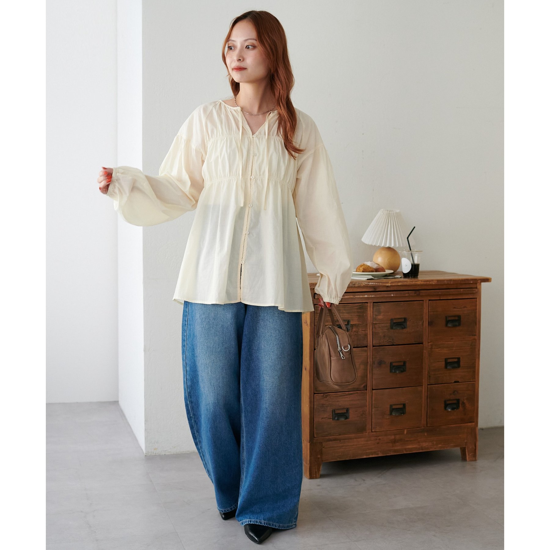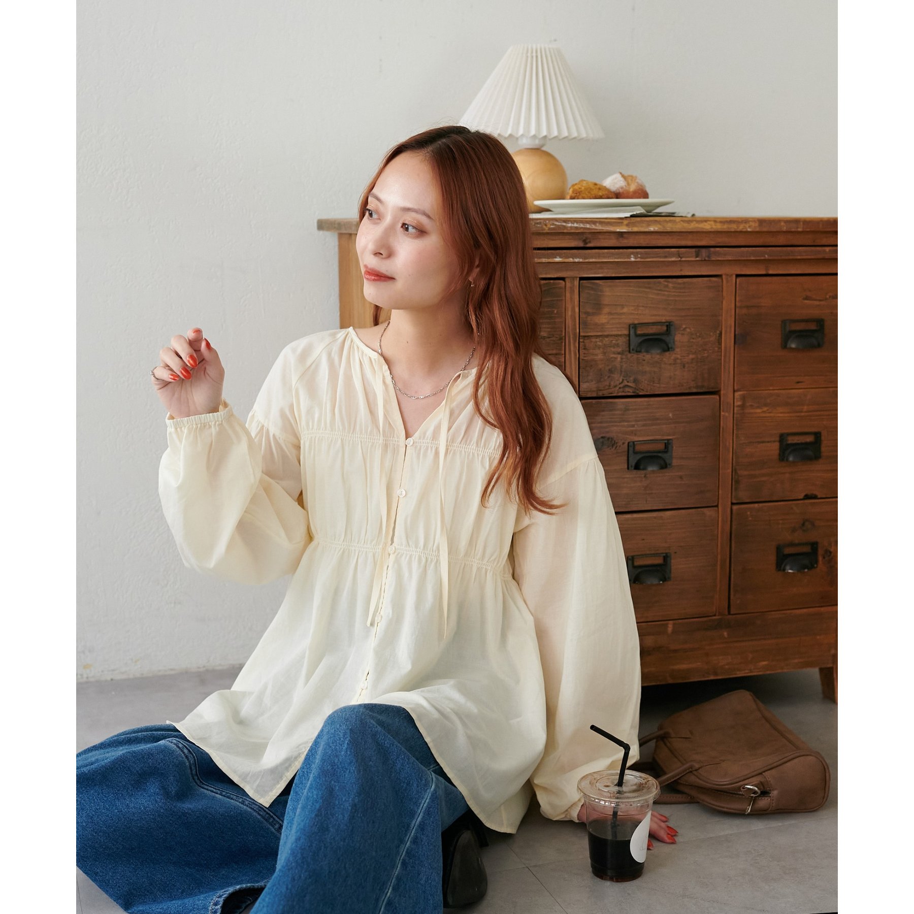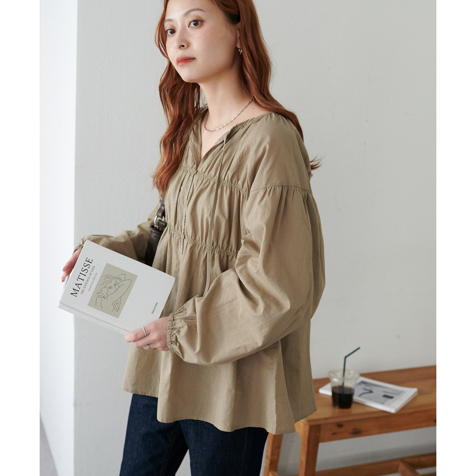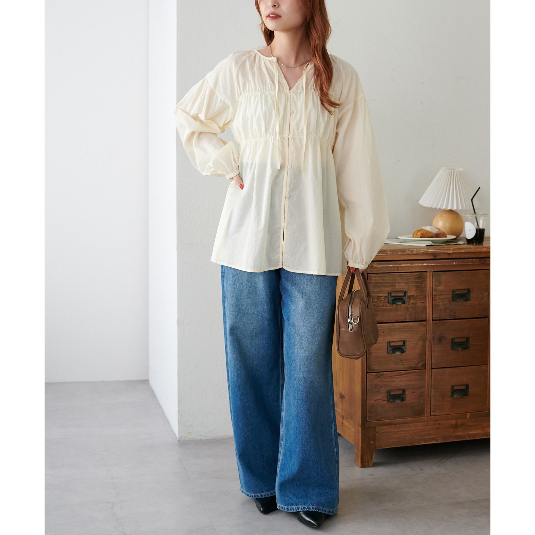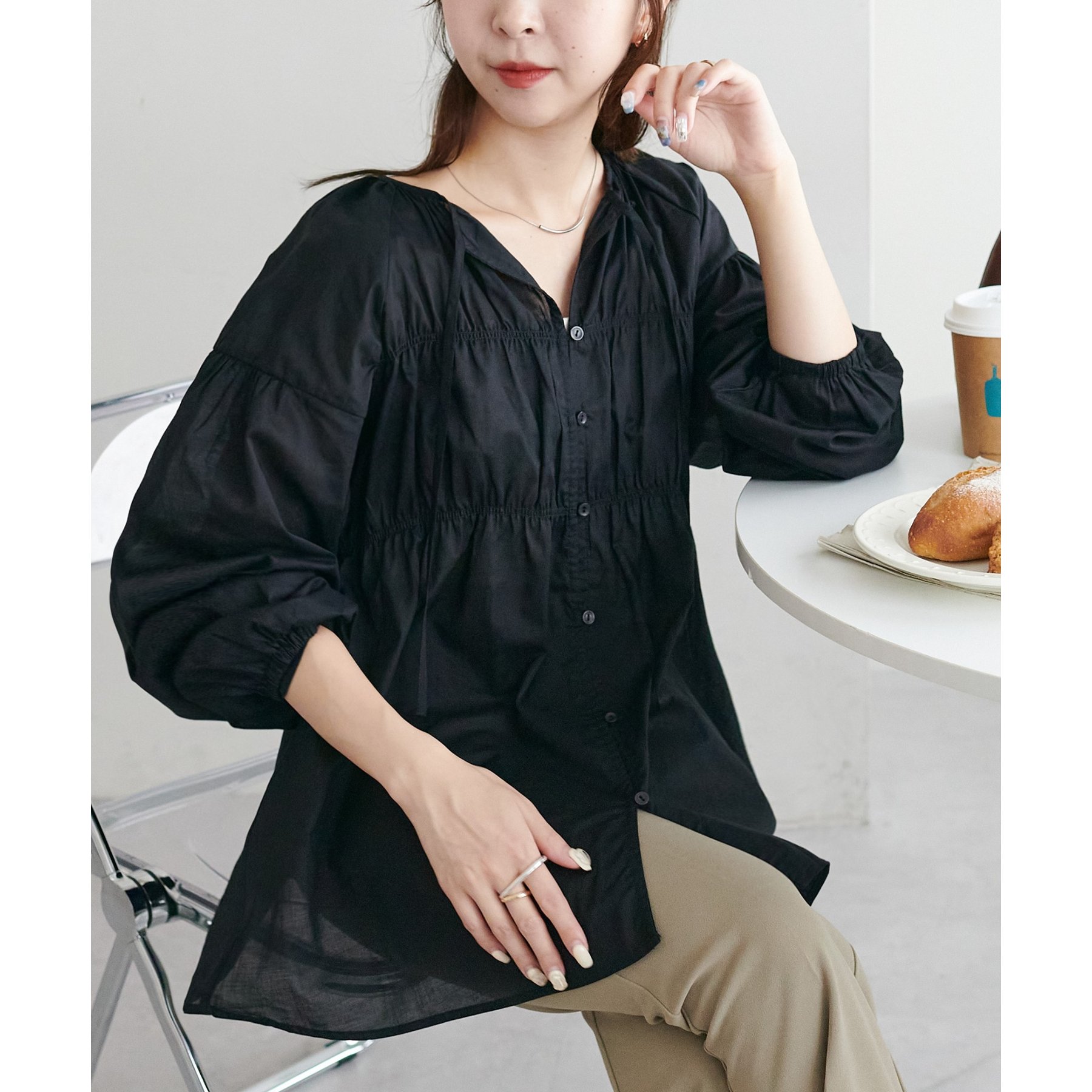 ギャザー前開きブラウス《WEB限定カラーあり》