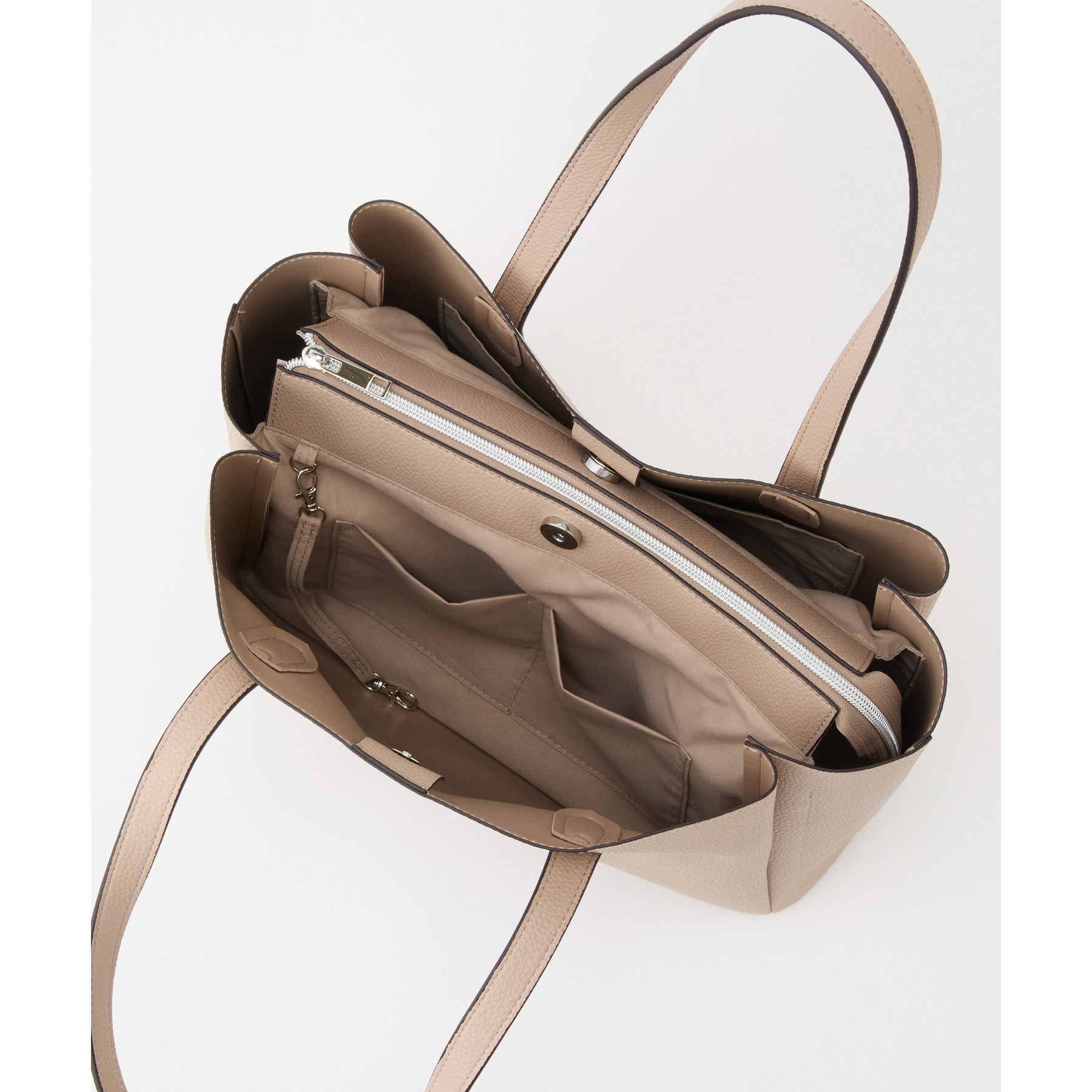バッグ内はあおりポケットで3つに分かれたデザインになっていて見た目以上の収納力