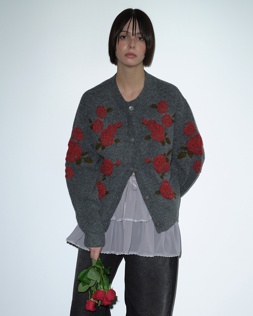 ROSE JACQUARD CARDIGAN (GREY)
