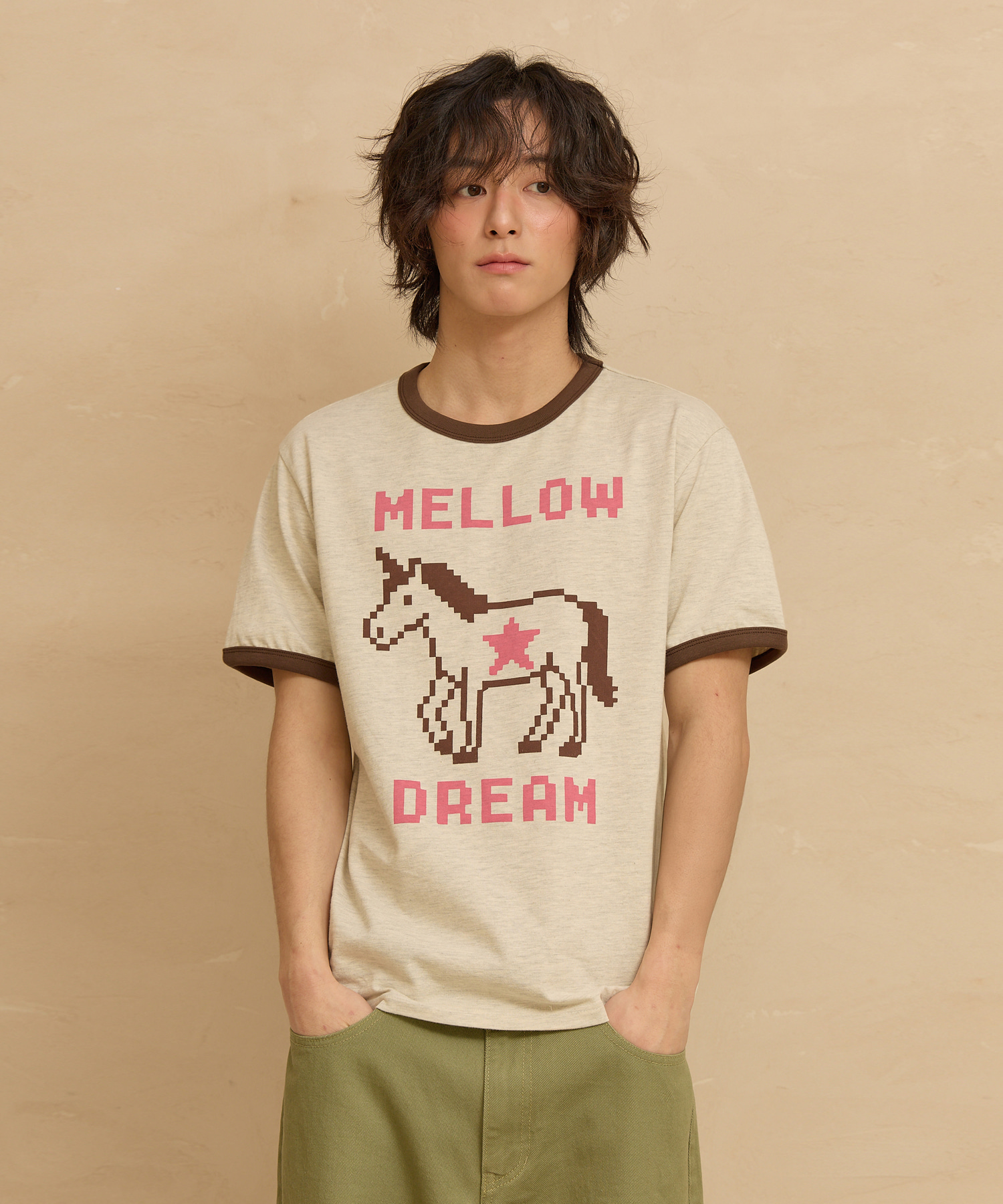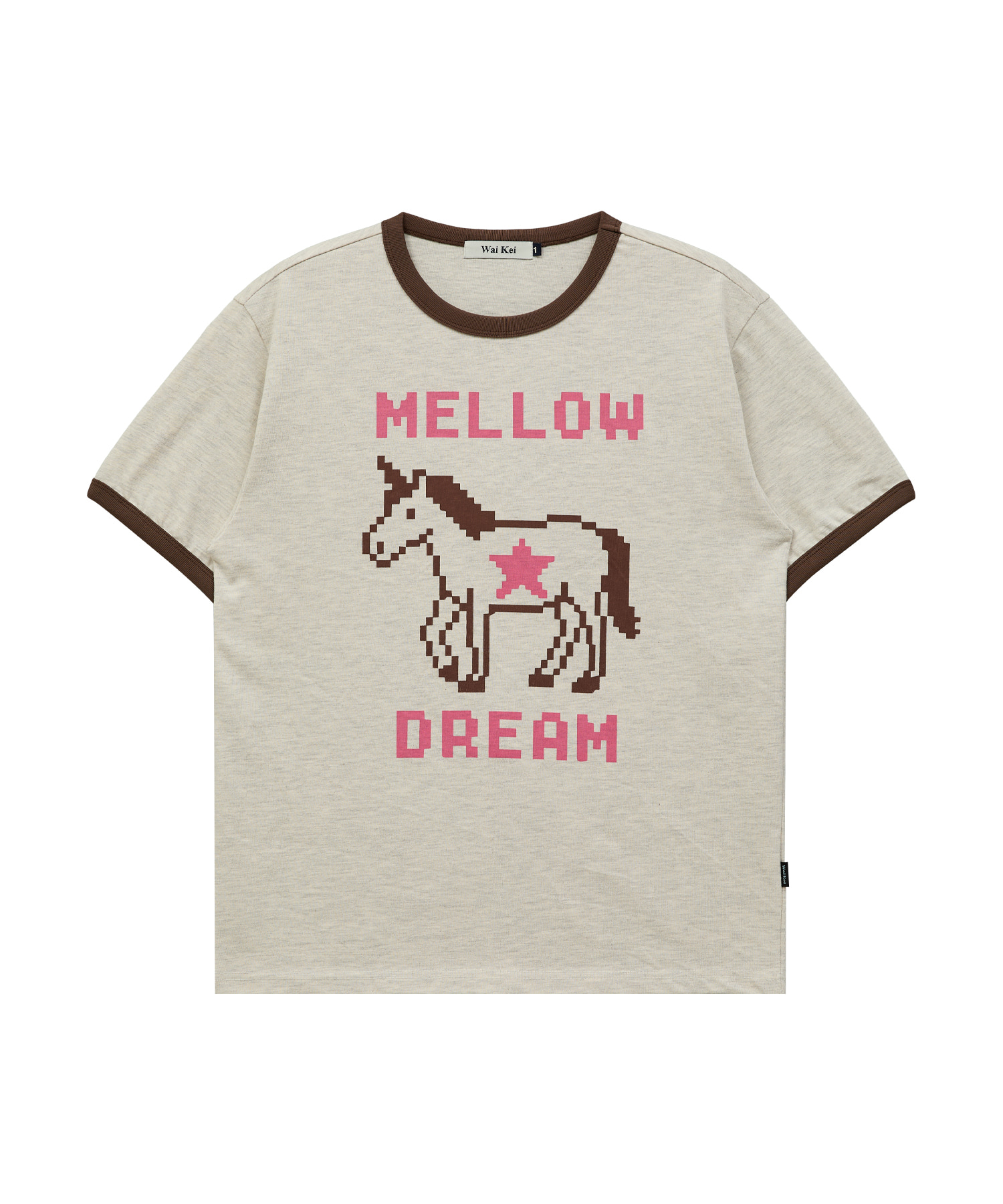 MELLOW DREAM Unicorn Ringer Half Sleeve T-shirt OATMEAL
