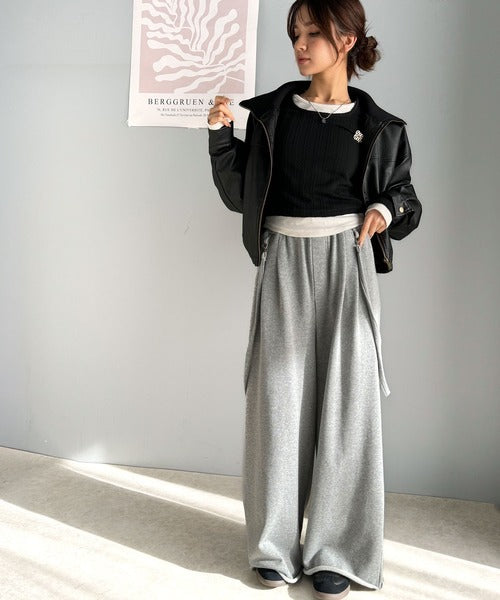 カジュアルなデニムと組み合わせたりスウェット素材のスリット入りフレアパンツで