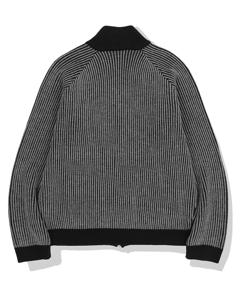 444 Logo Two Tone Rib Knit Zip Up - Charcoal