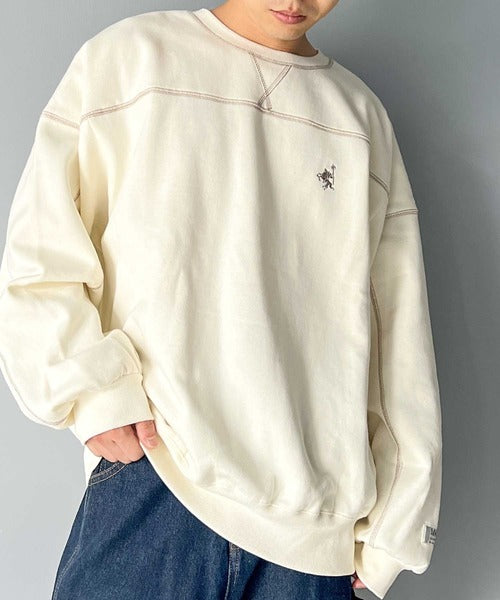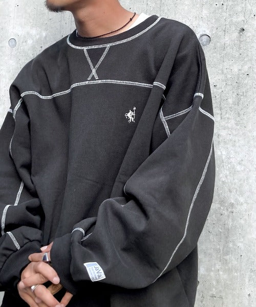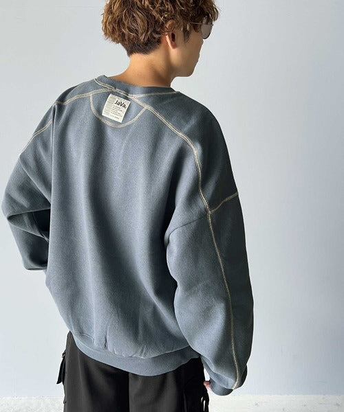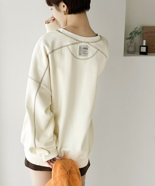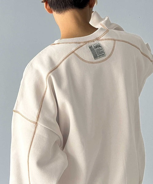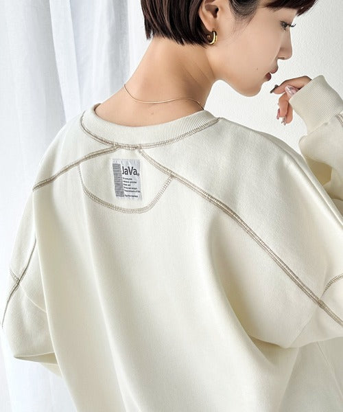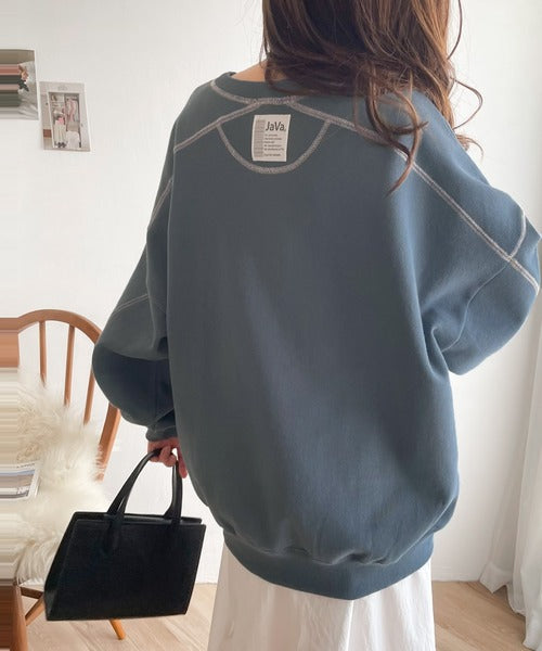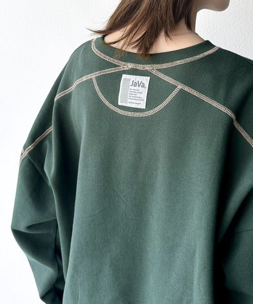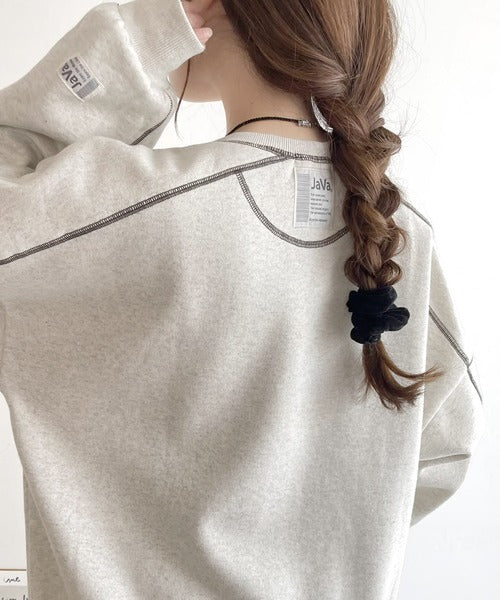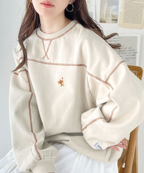 《Javaジャバコラボ》ふんわり暖か。大人の裏起毛配色ステッチロゴスウェット jv1260073