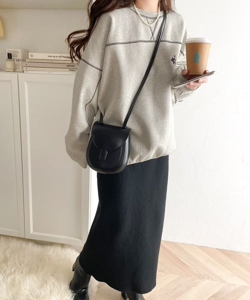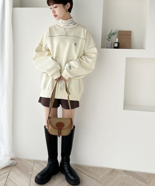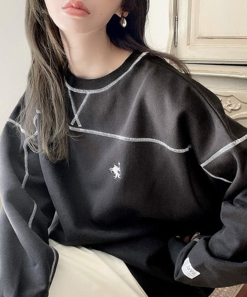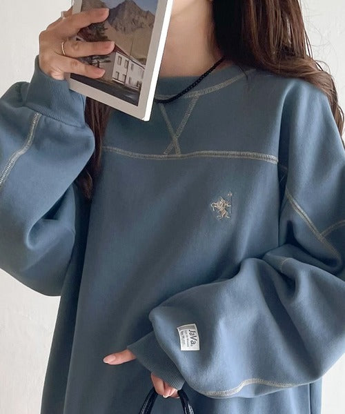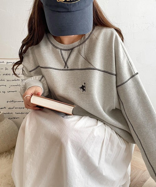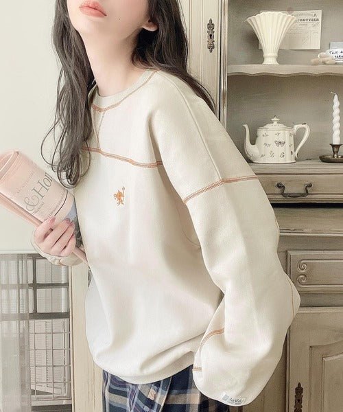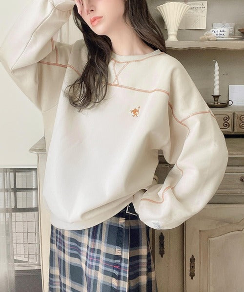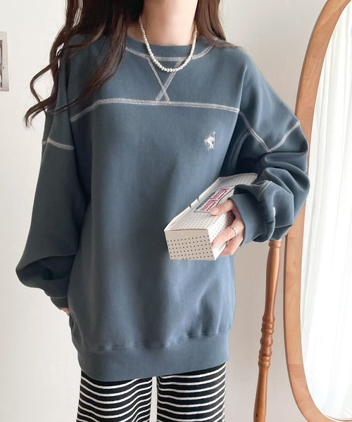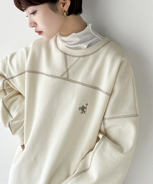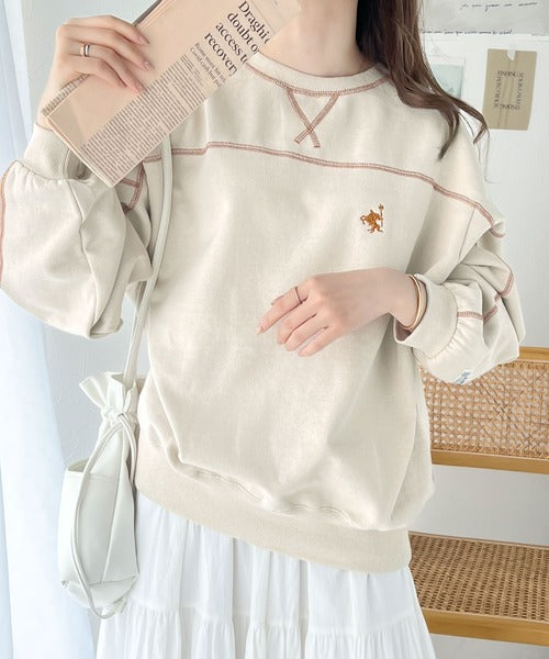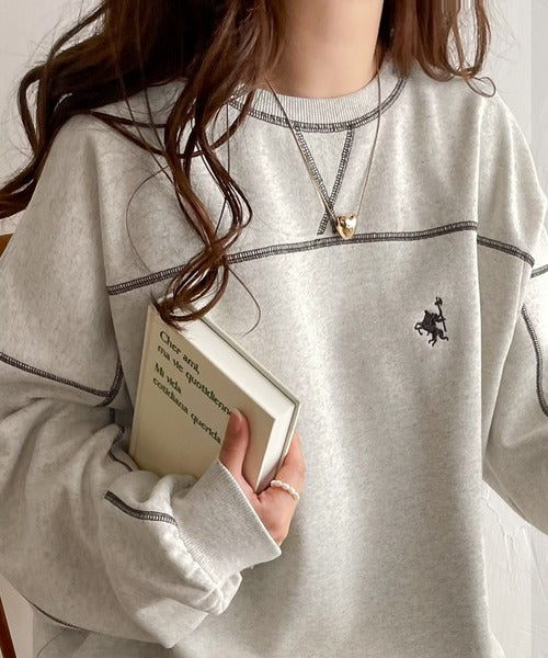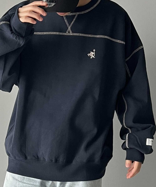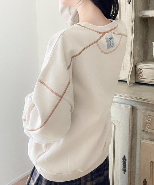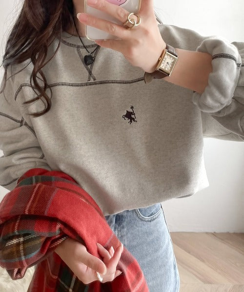 配色ステッチがお洒落な裏起毛スウェットプルオーバー。