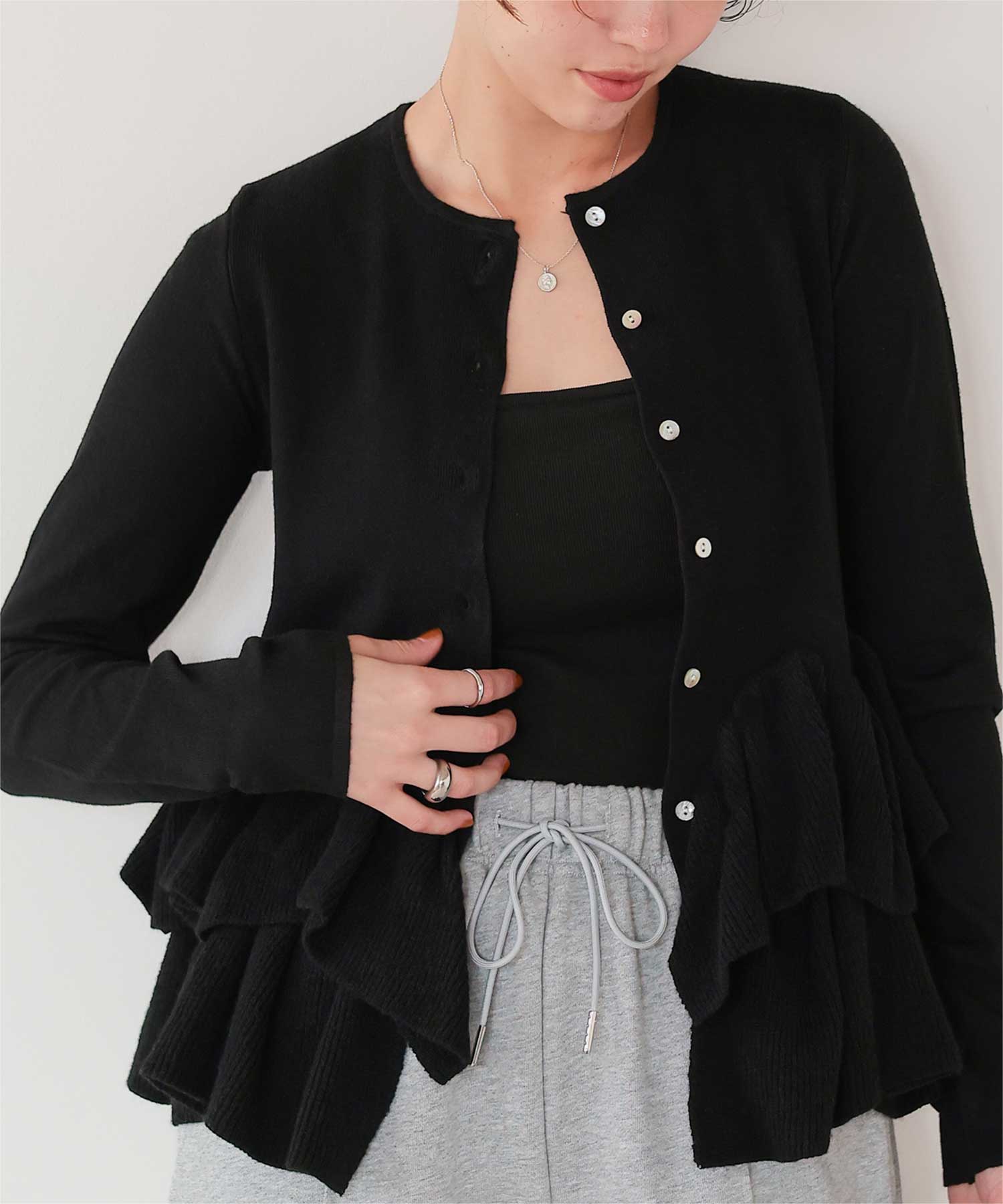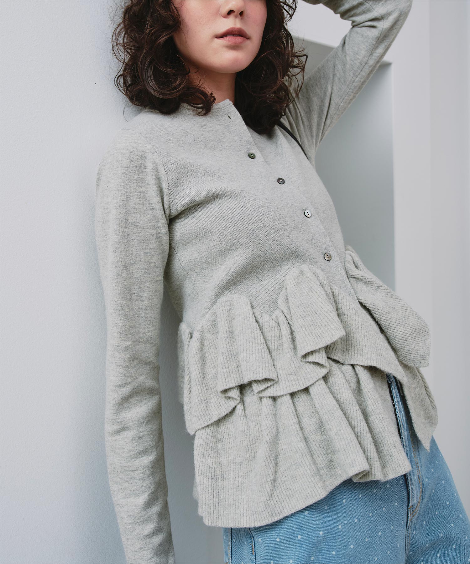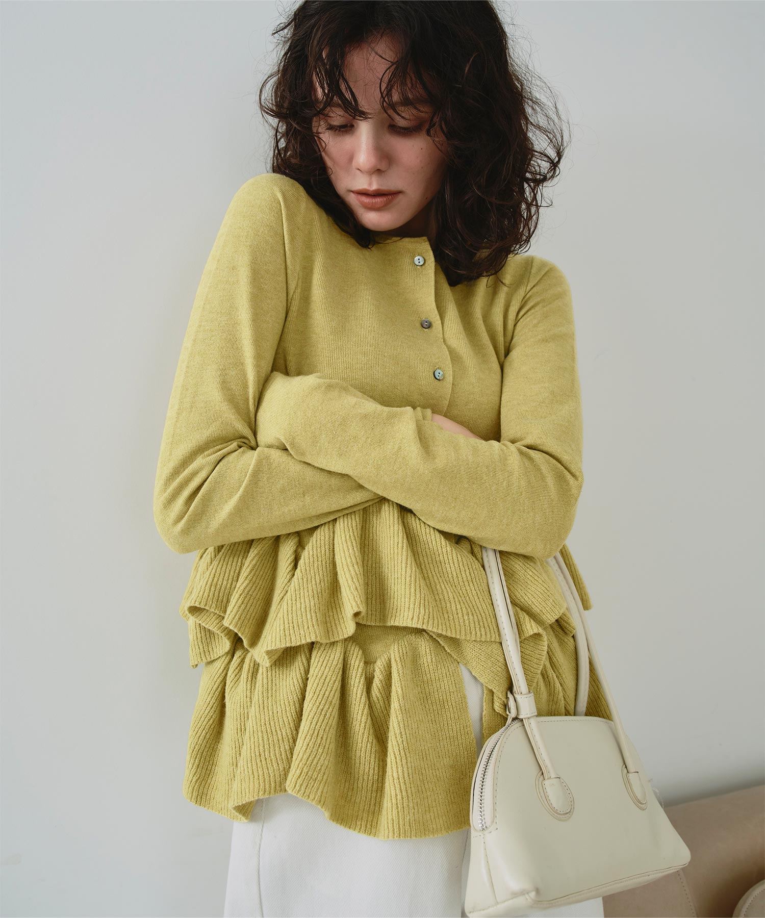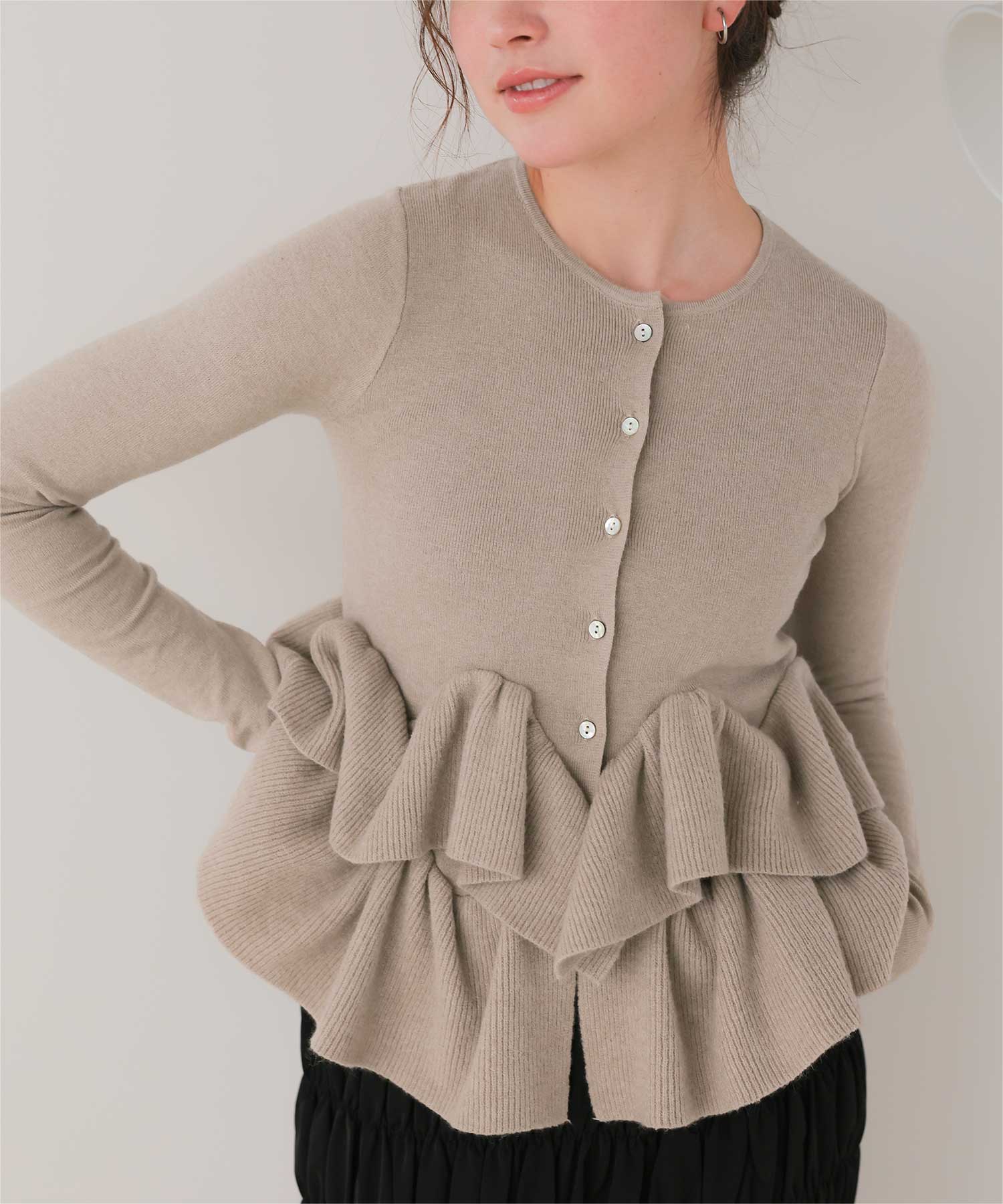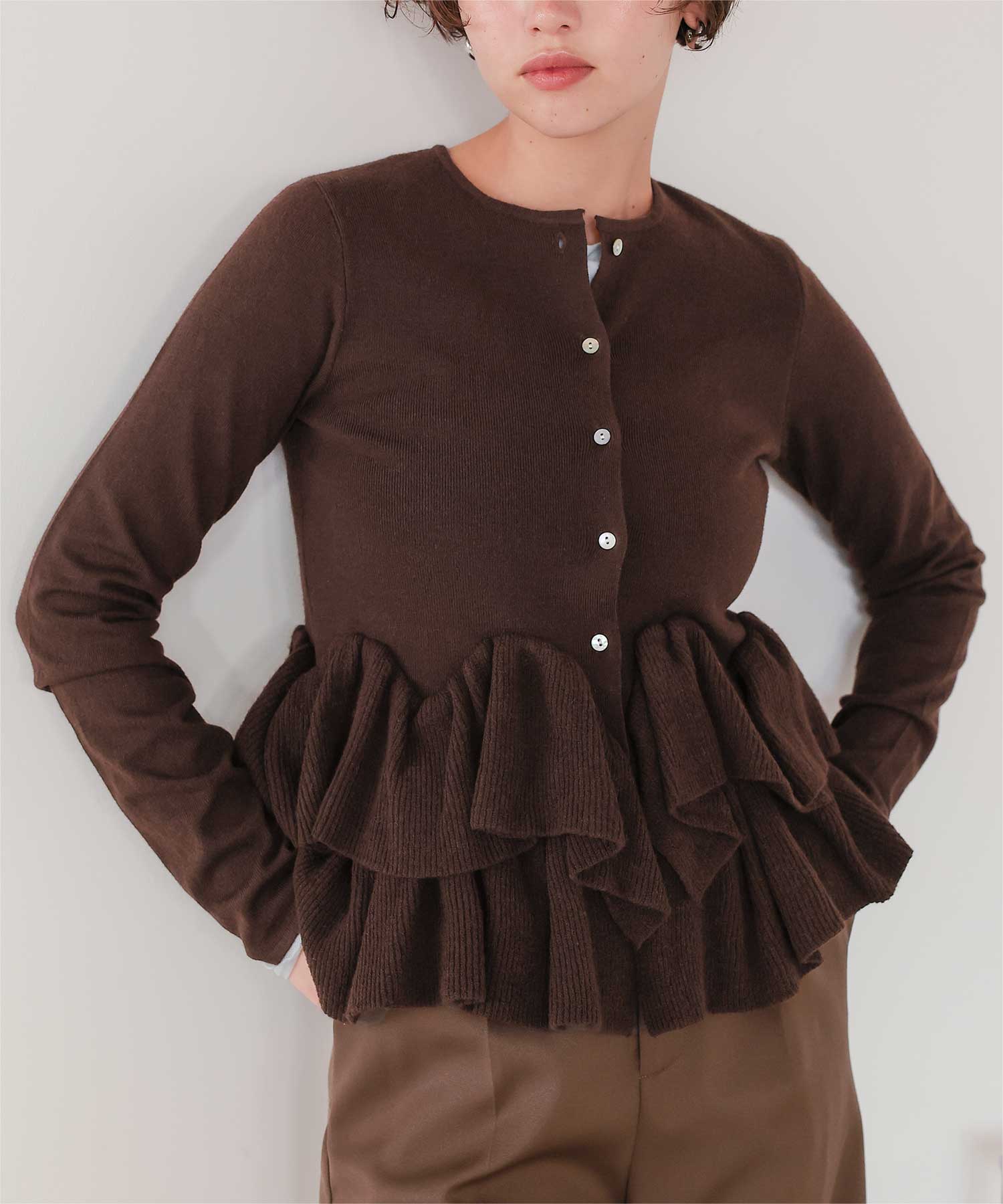 ・ランダムフリルヘムが目を惹くニットカーディガン