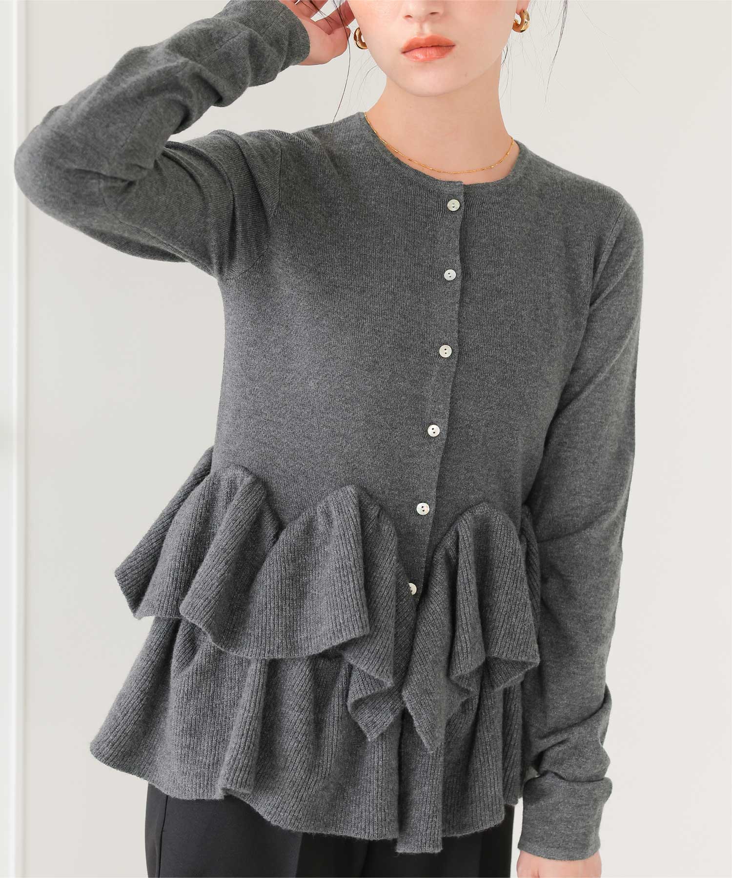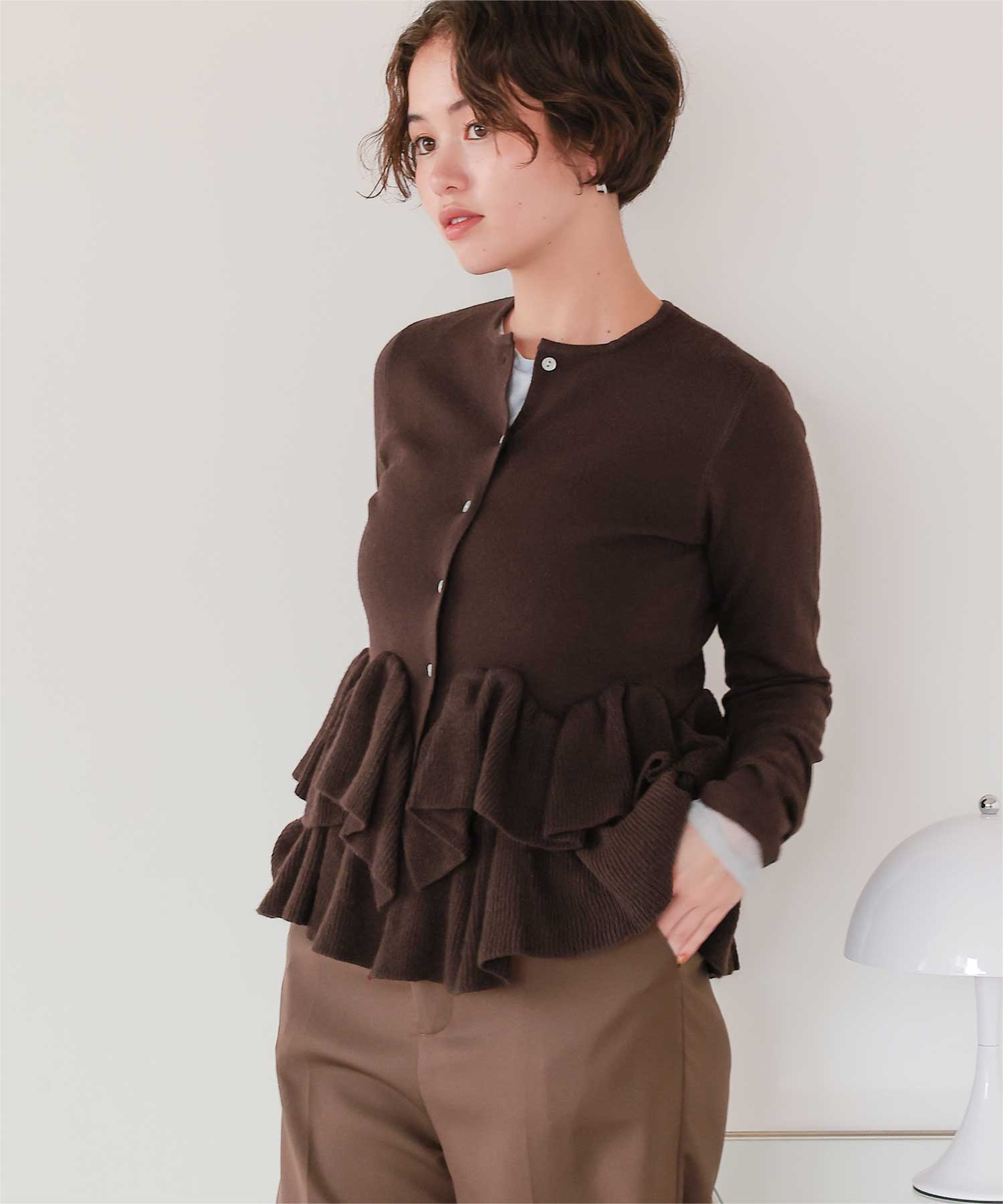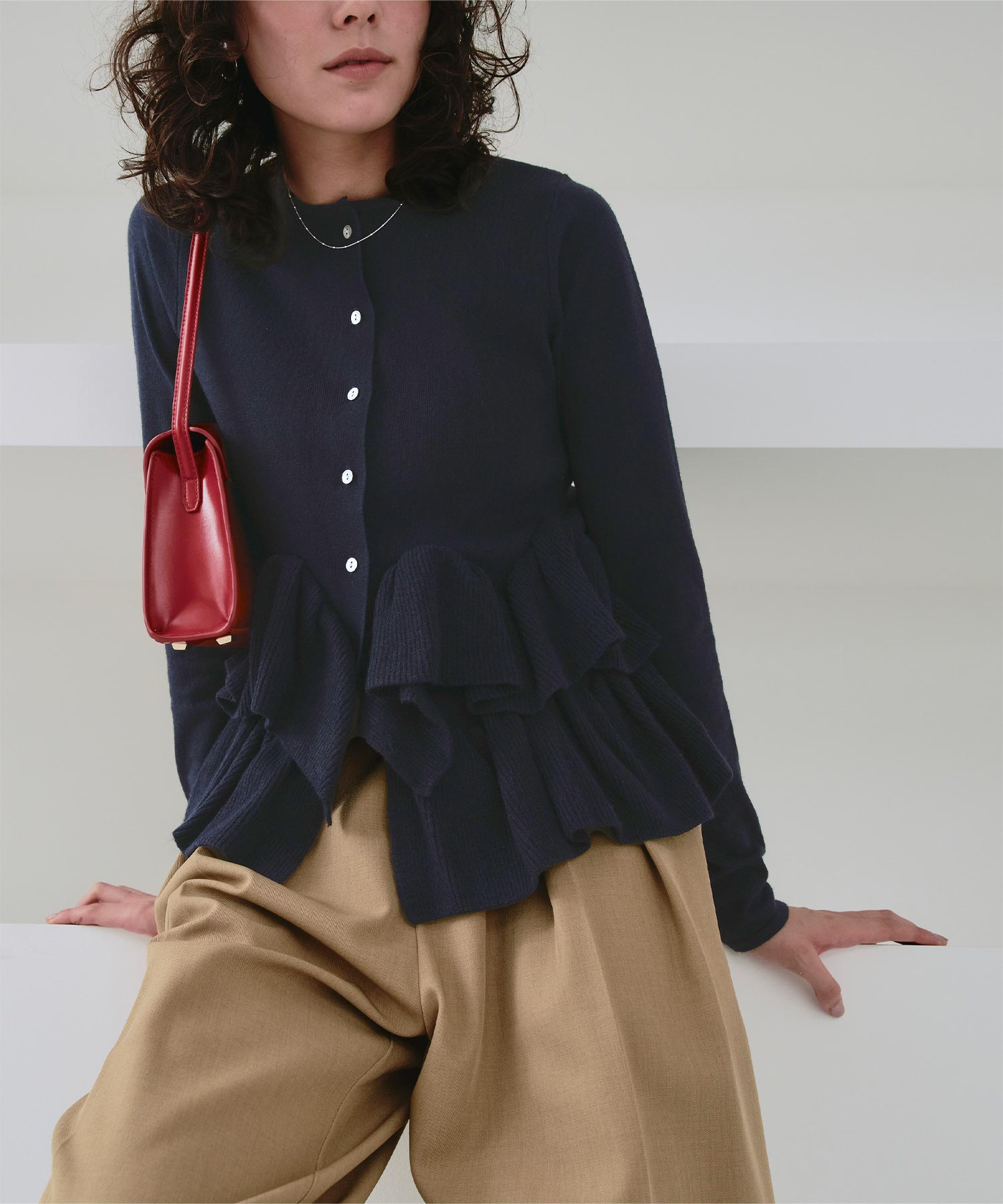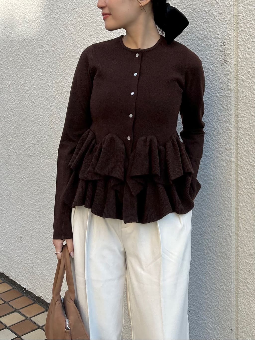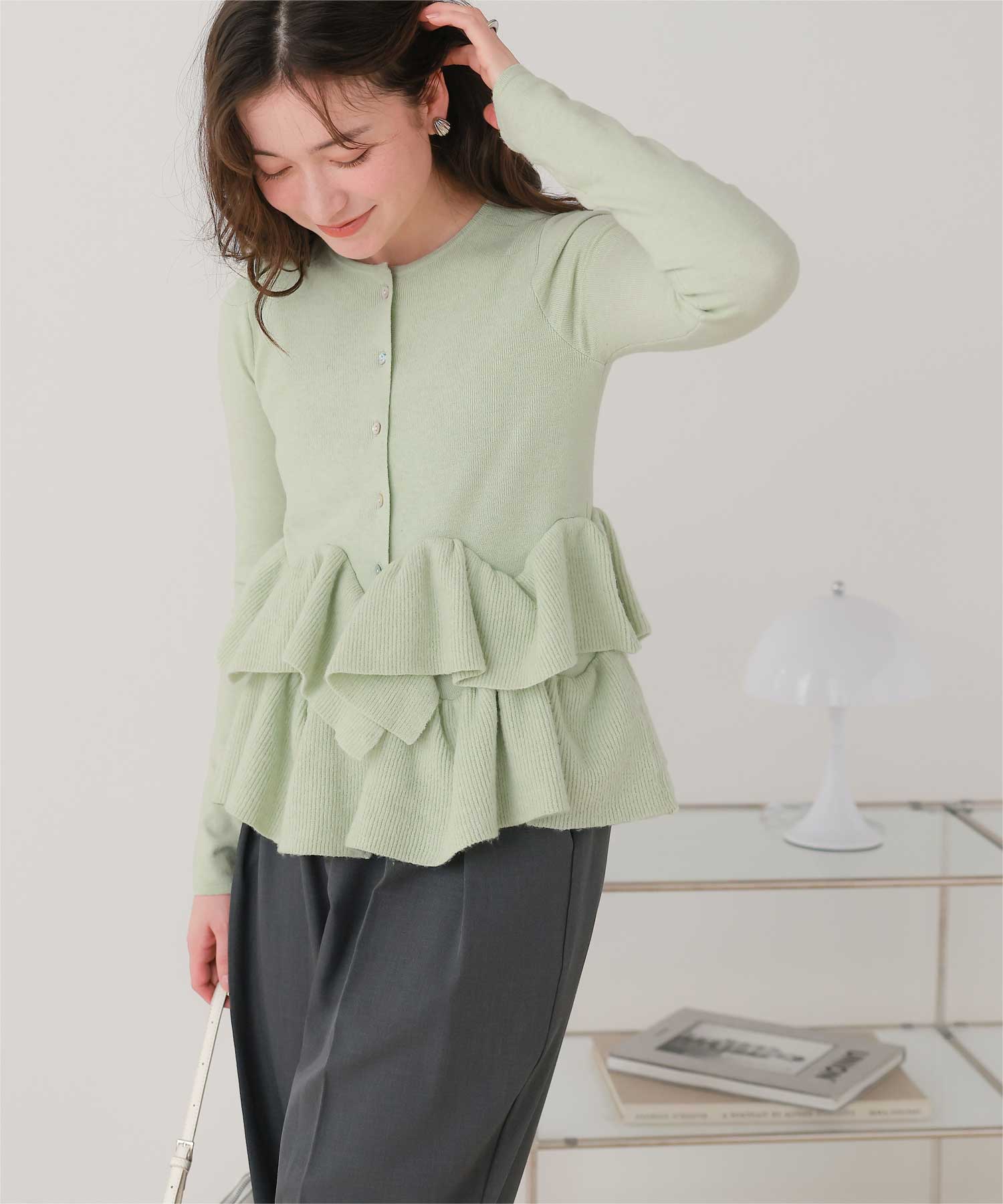 ・ランダムフリルヘムが目を惹くニットカーディガン