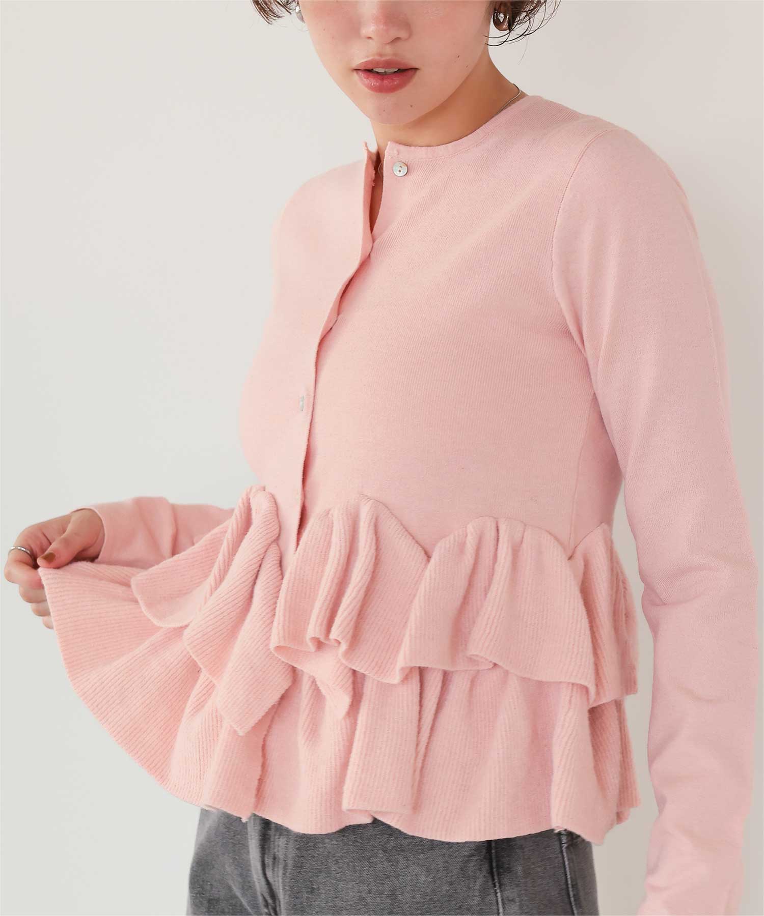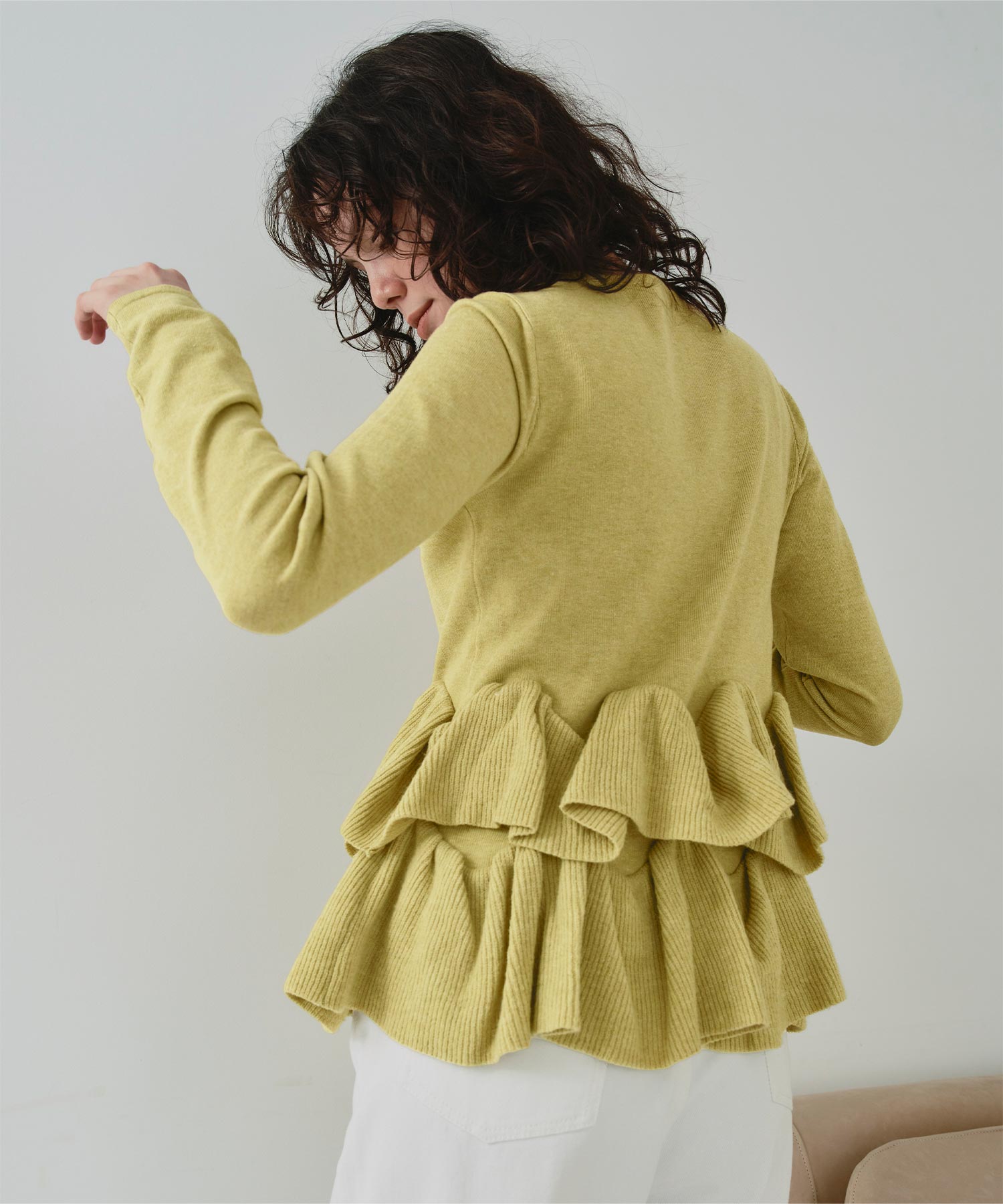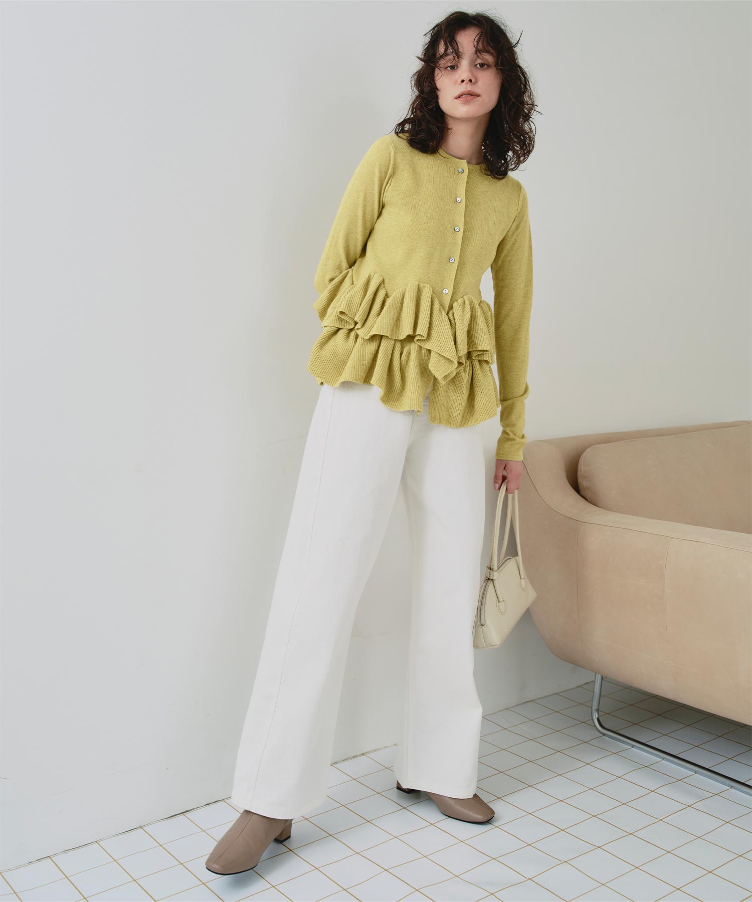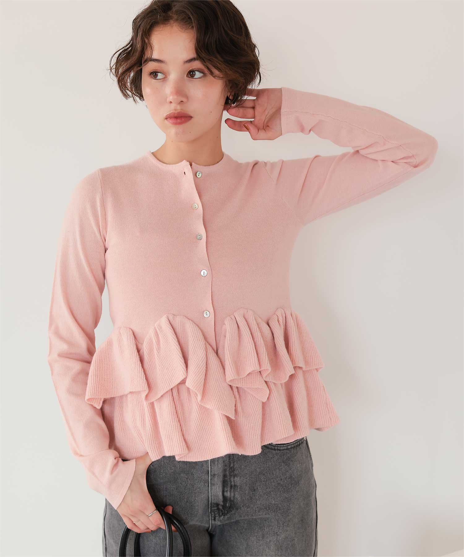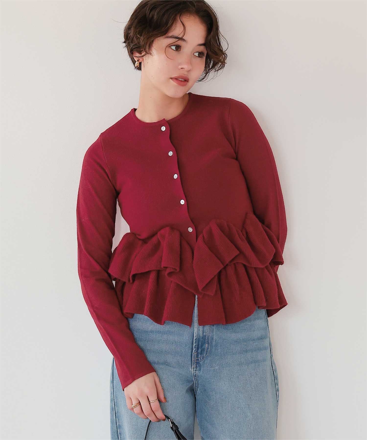 ・ランダムフリルヘムが目を惹くニットカーディガン