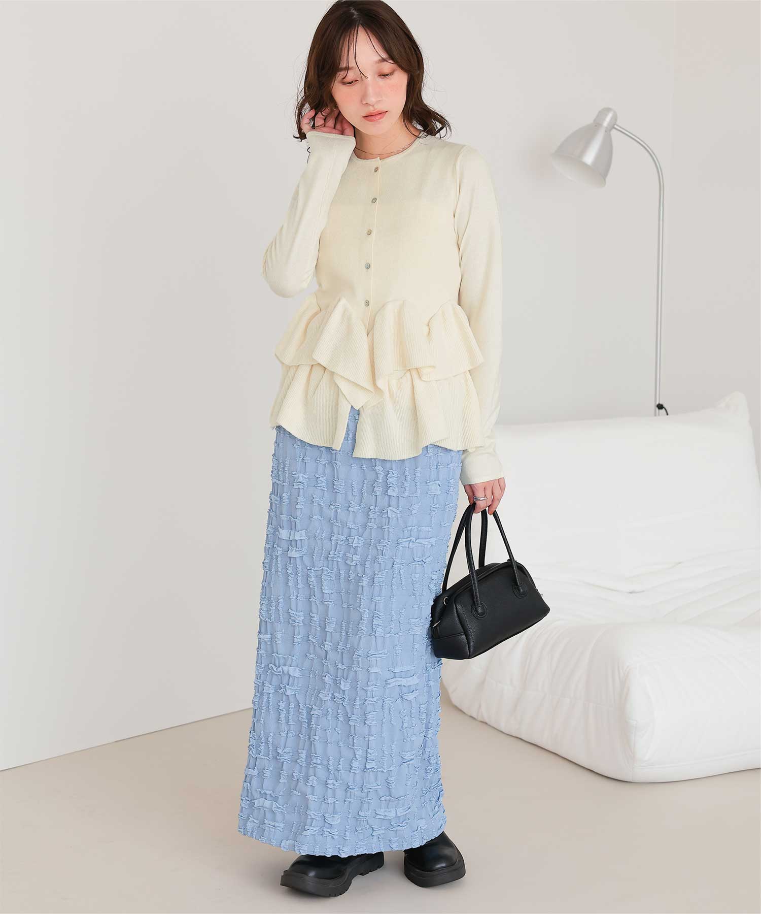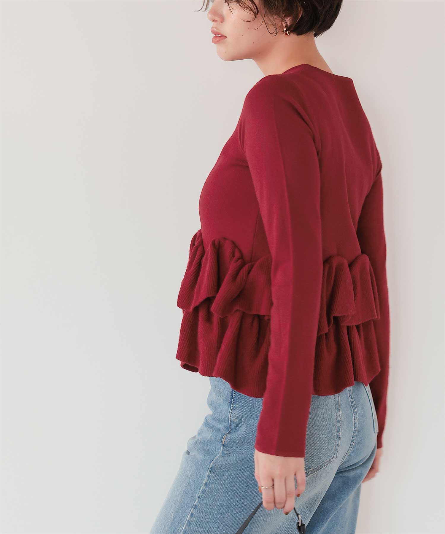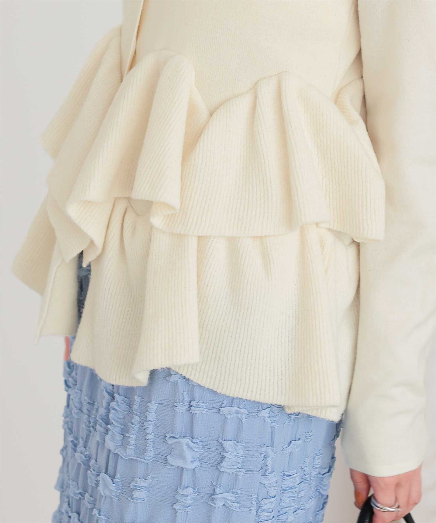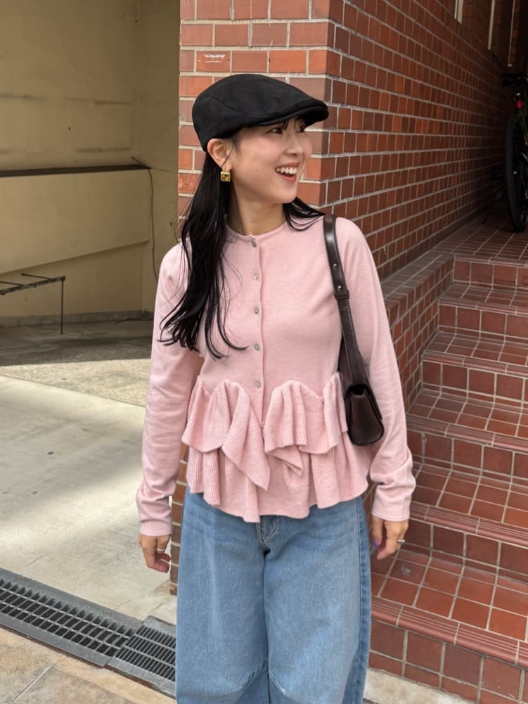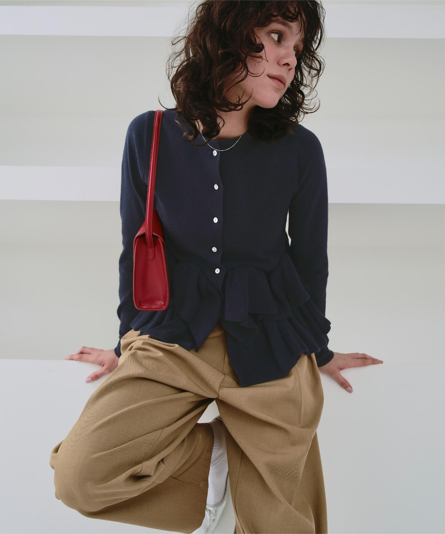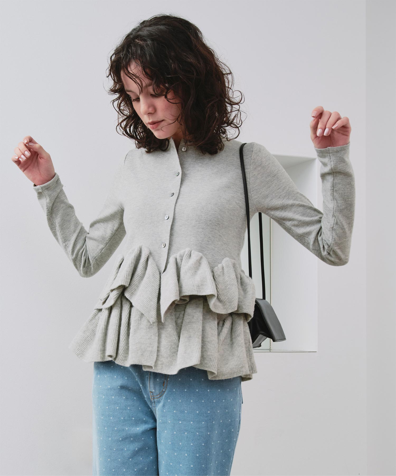 ・ランダムフリルヘムが目を惹くニットカーディガン