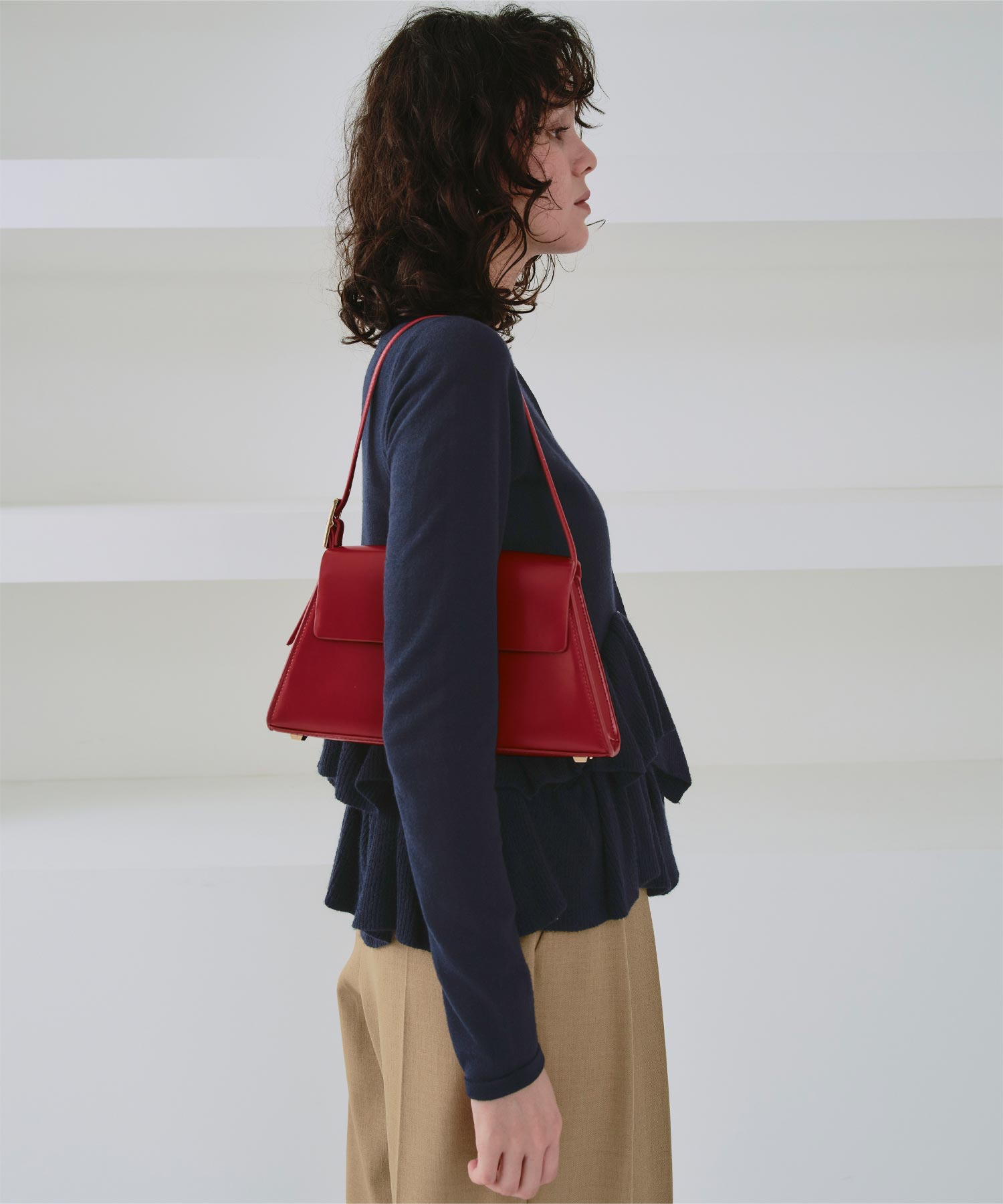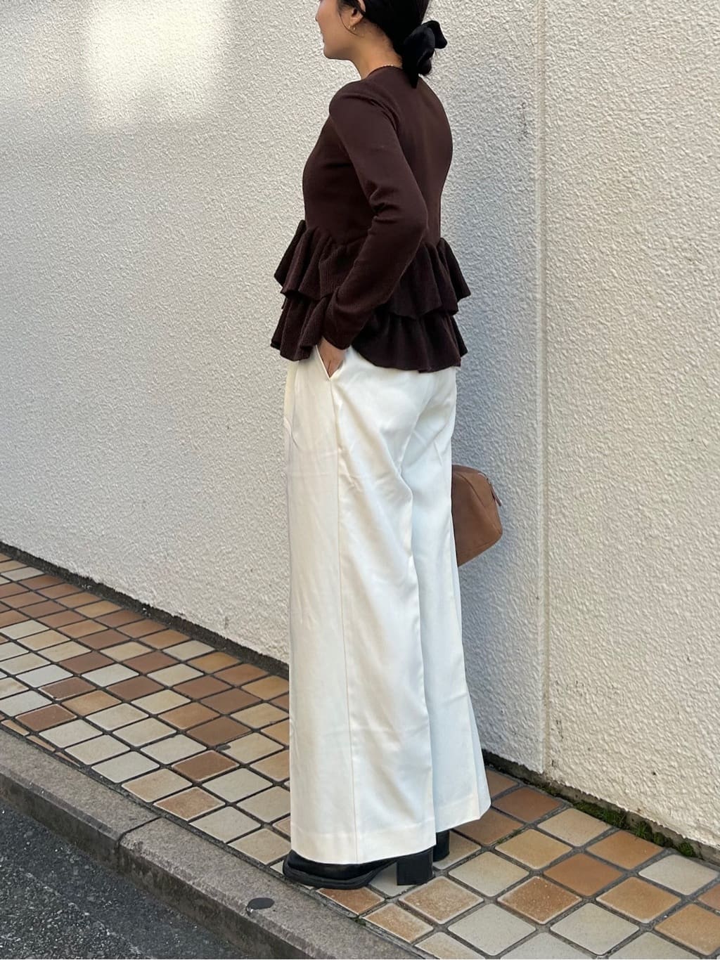 ・袖部分のみ本体よりほんのり薄手のニット素材になっており、腕周りが華奢にみえつつ動きやすいこだわりの素材使い