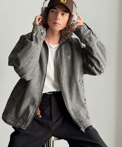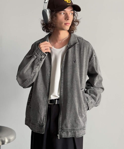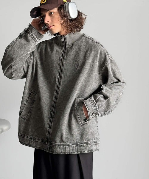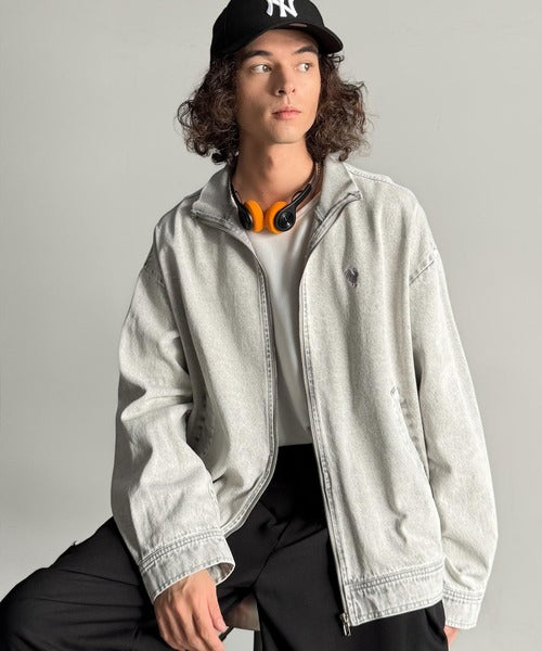 【Classical Origin】Vintage-Washed High-Neck Denim Jacket/ヴィンテージ加工ハイネックデニムジャケット co1010029