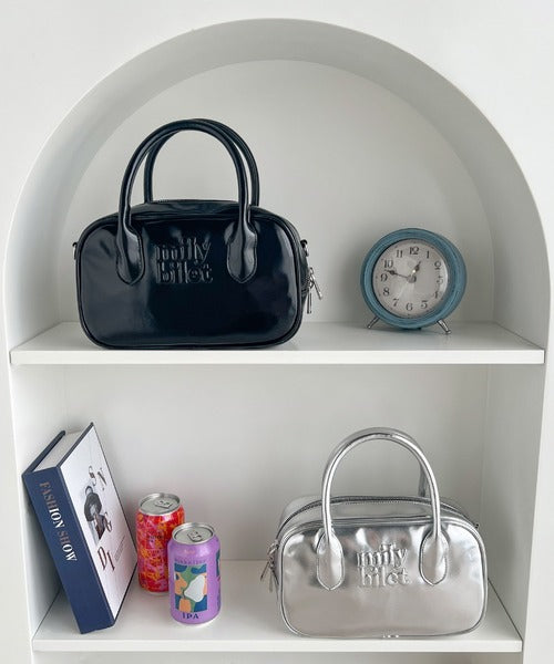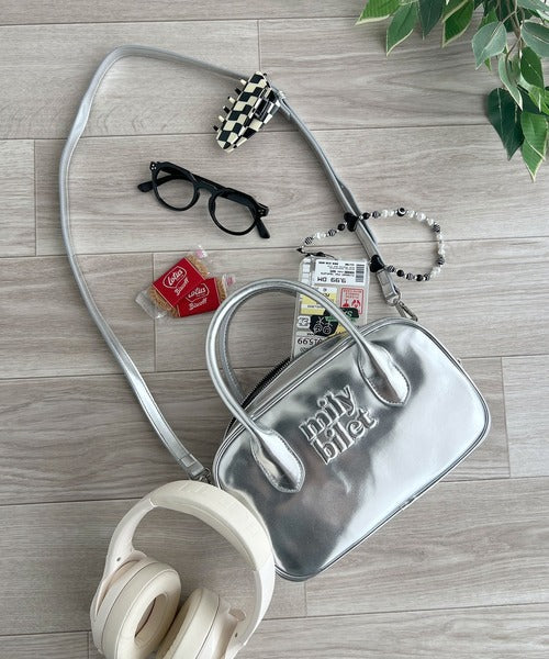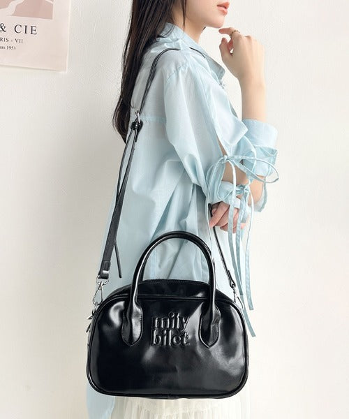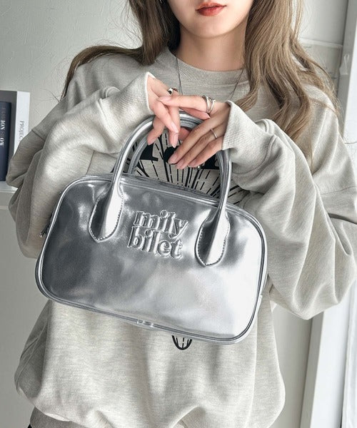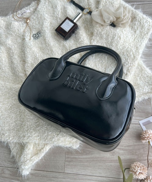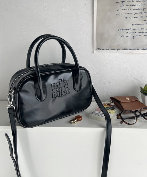 【mily bilet】ヘビロテしたい主役級バッグ。エナメルライクエコレザーエンブレムミニボストンバッグ mi1159026