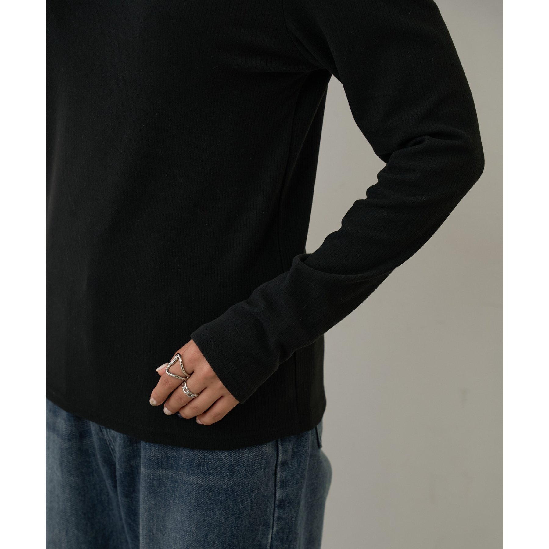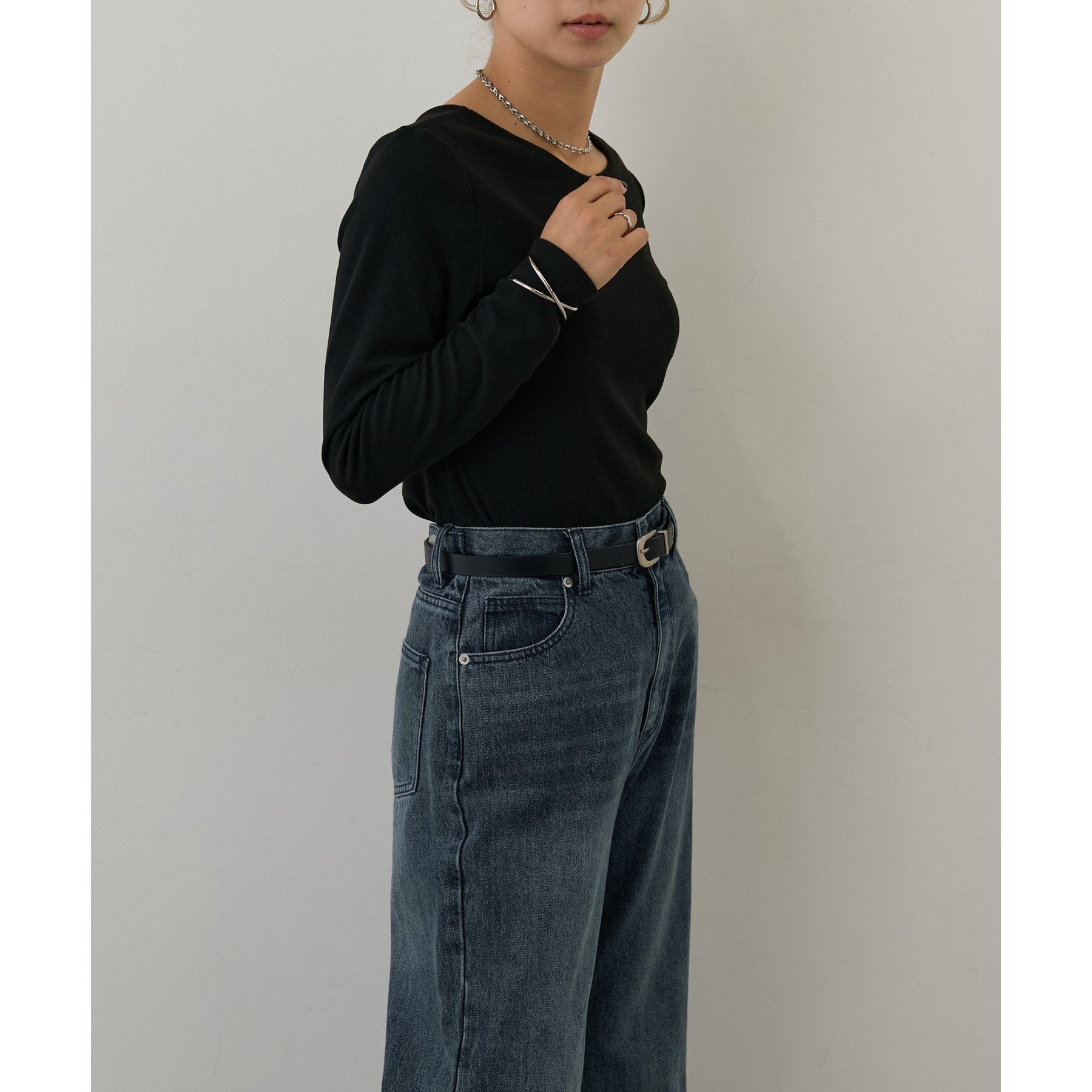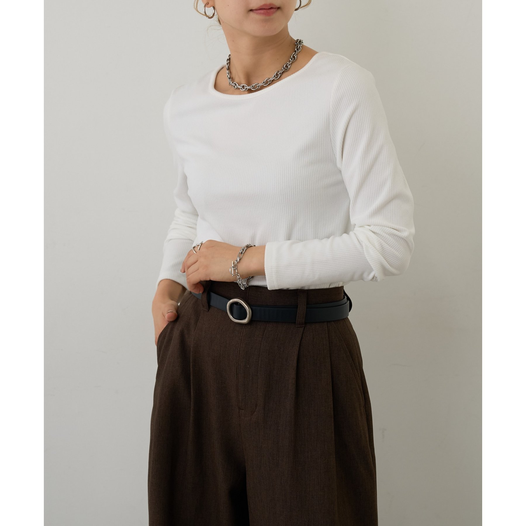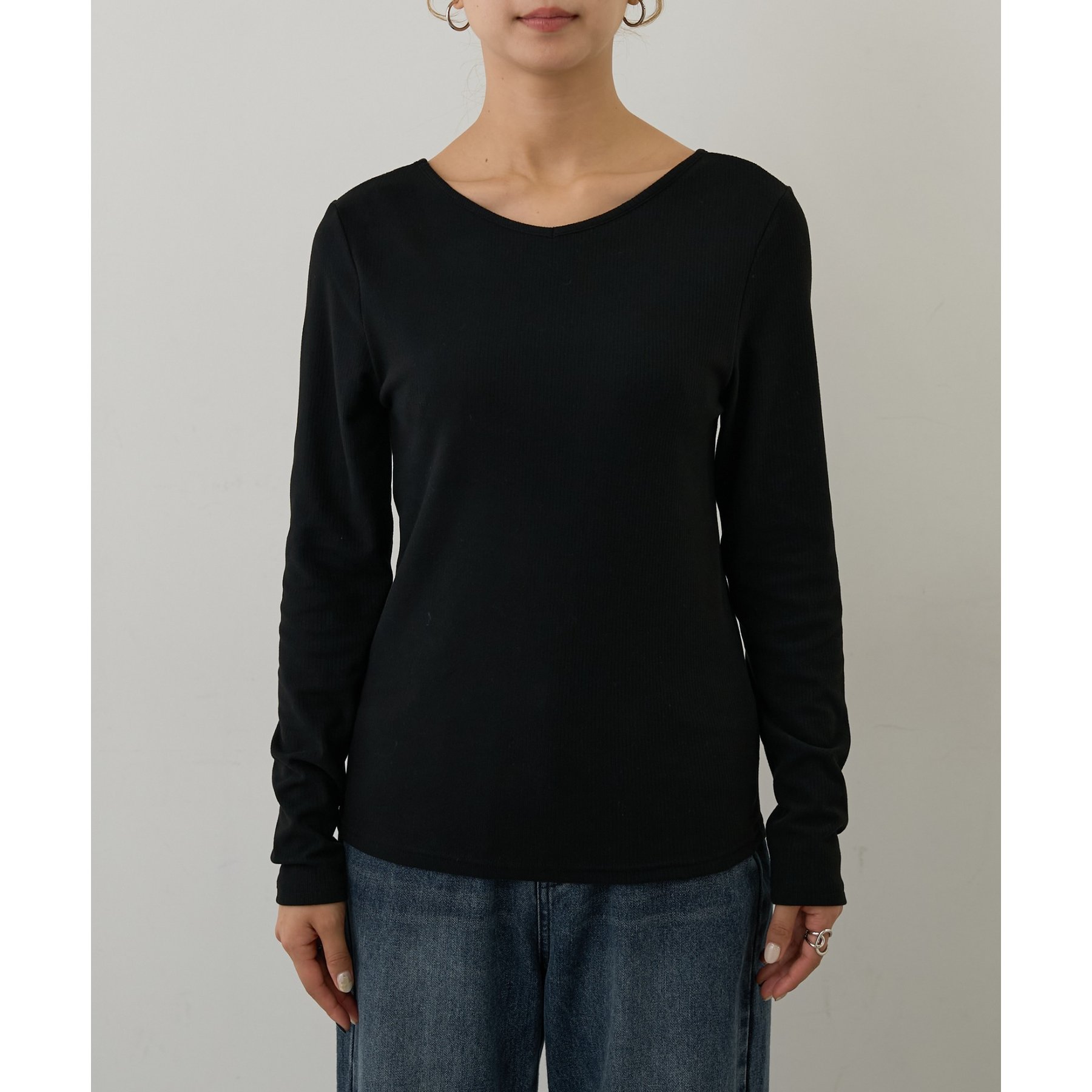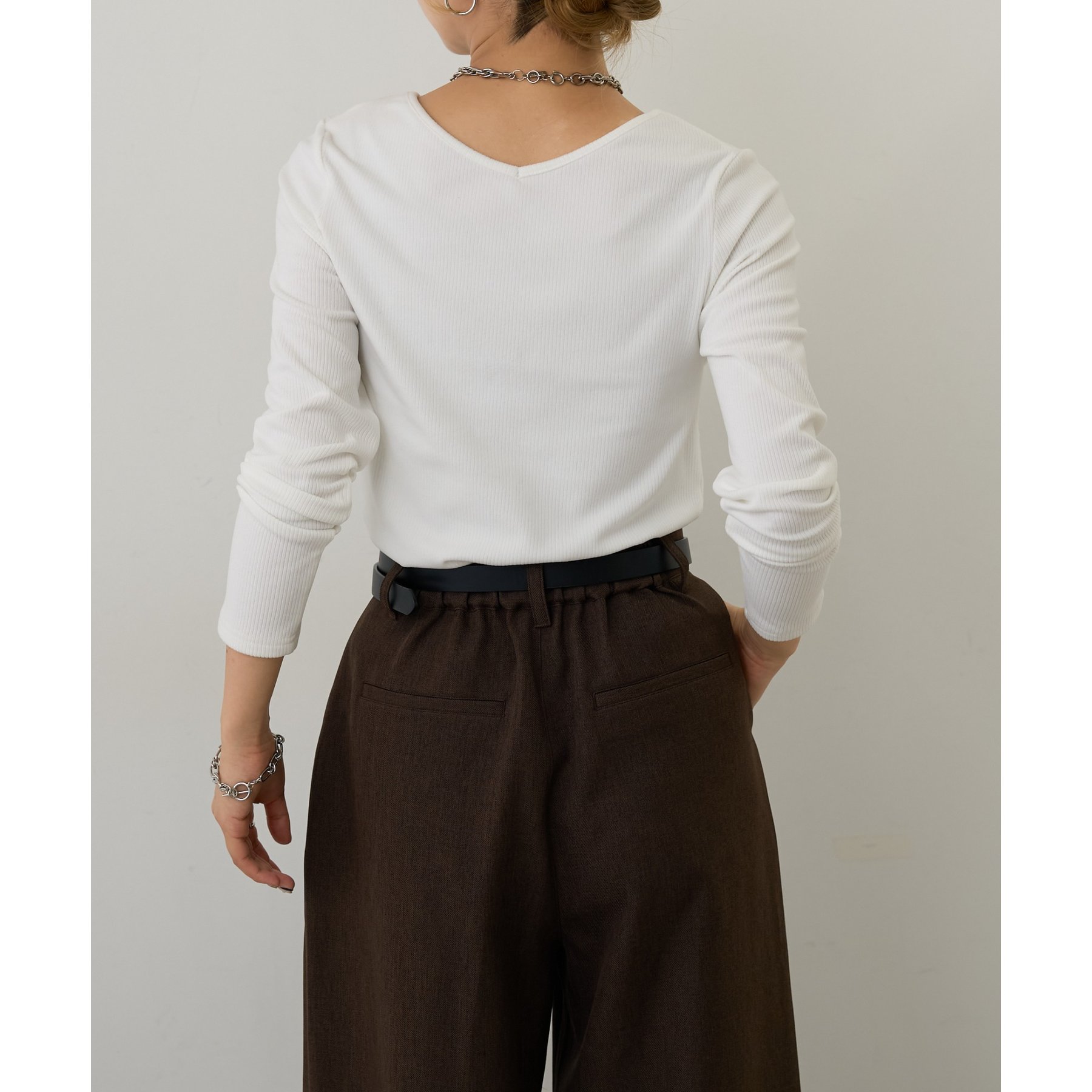 滑らかで柔らかい着心地を体感でき、体のラインに沿ったシルエットで着痩せ見えが叶う一枚です◎