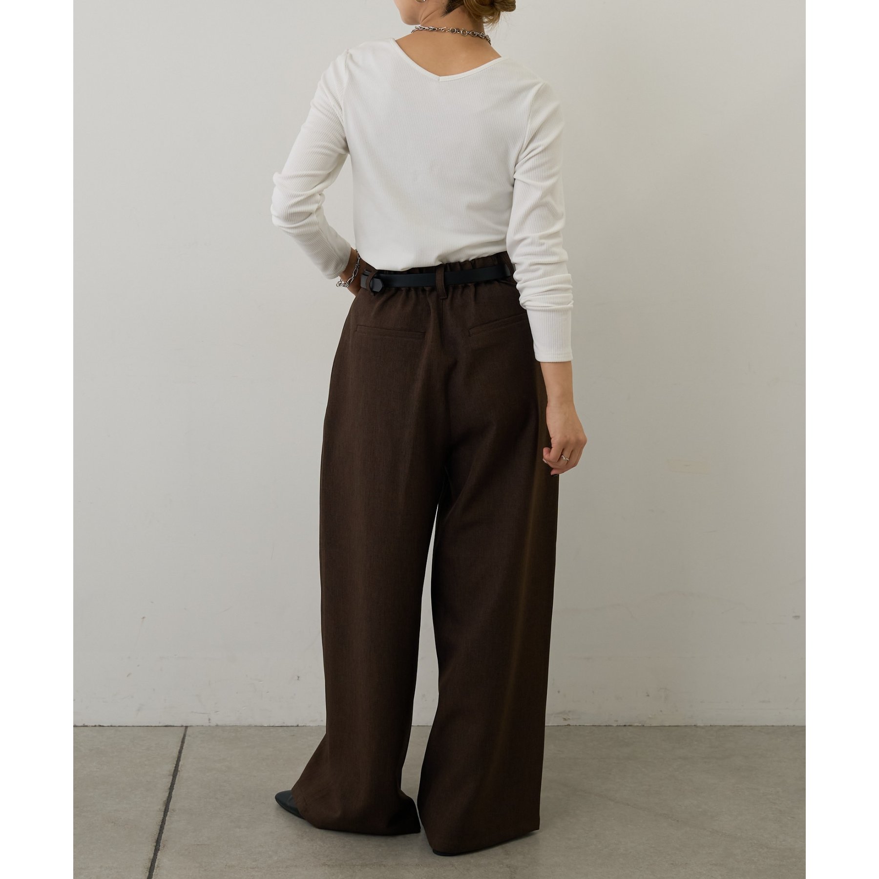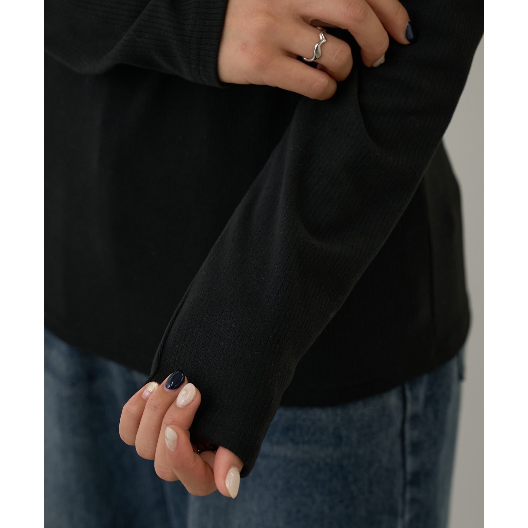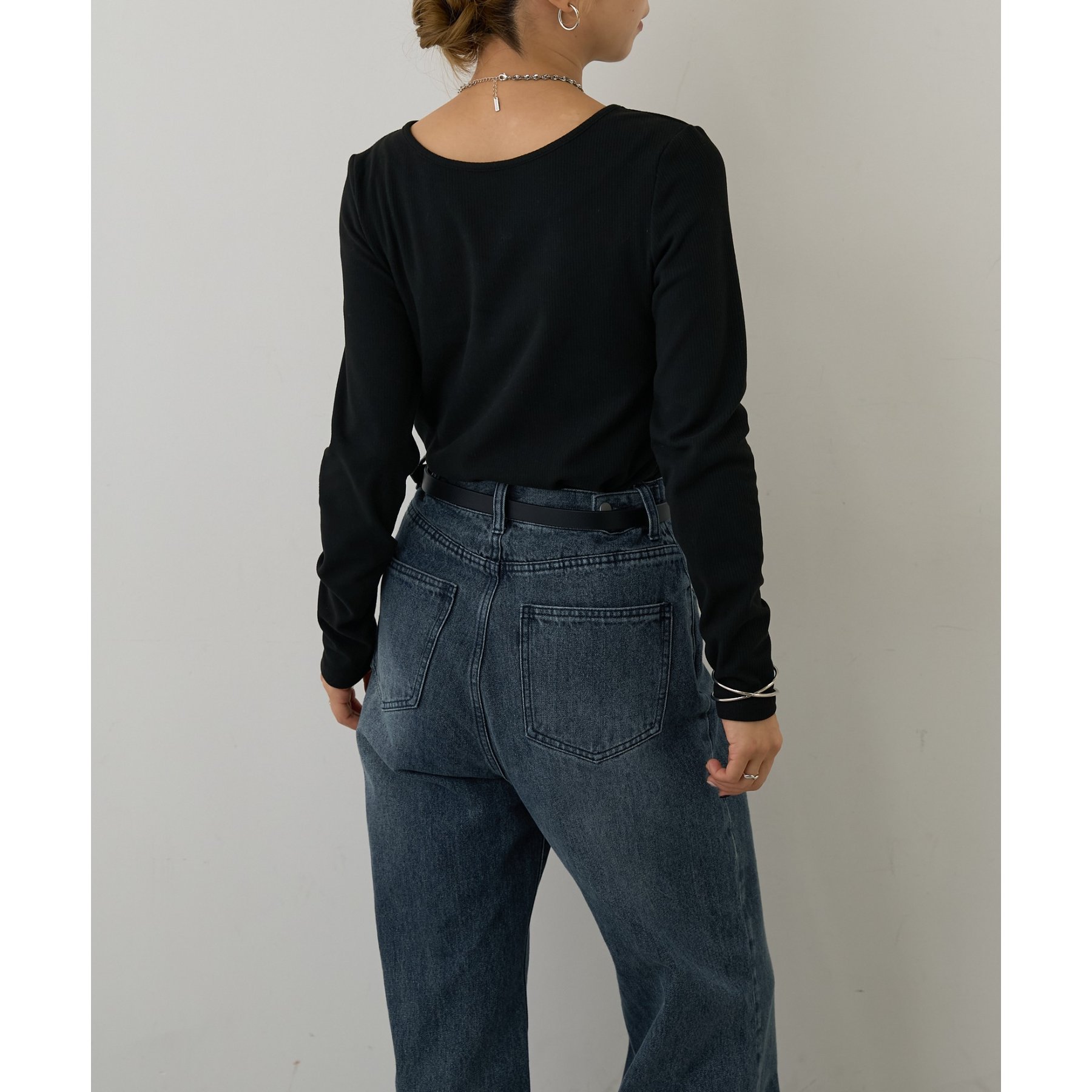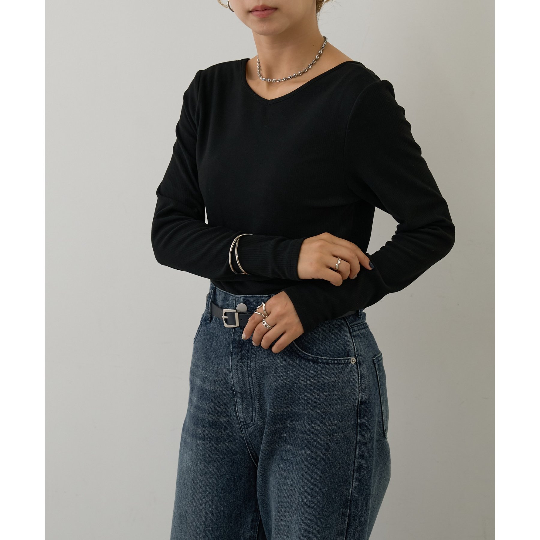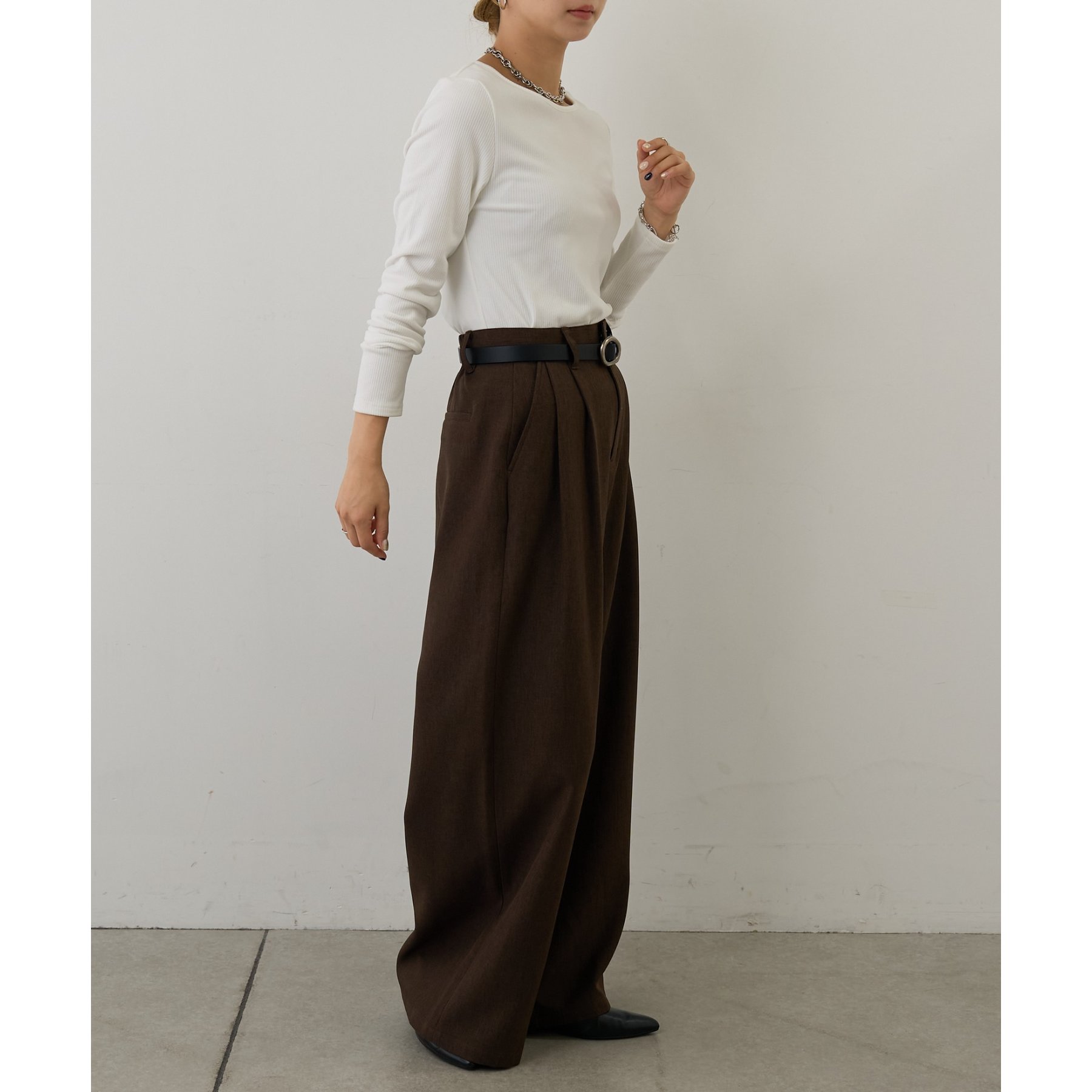 滑らかで柔らかい着心地を体感でき、体のラインに沿ったシルエットで着痩せ見えが叶う一枚です◎