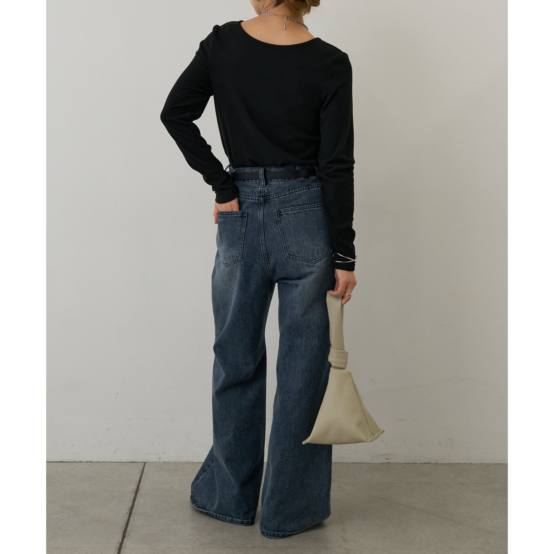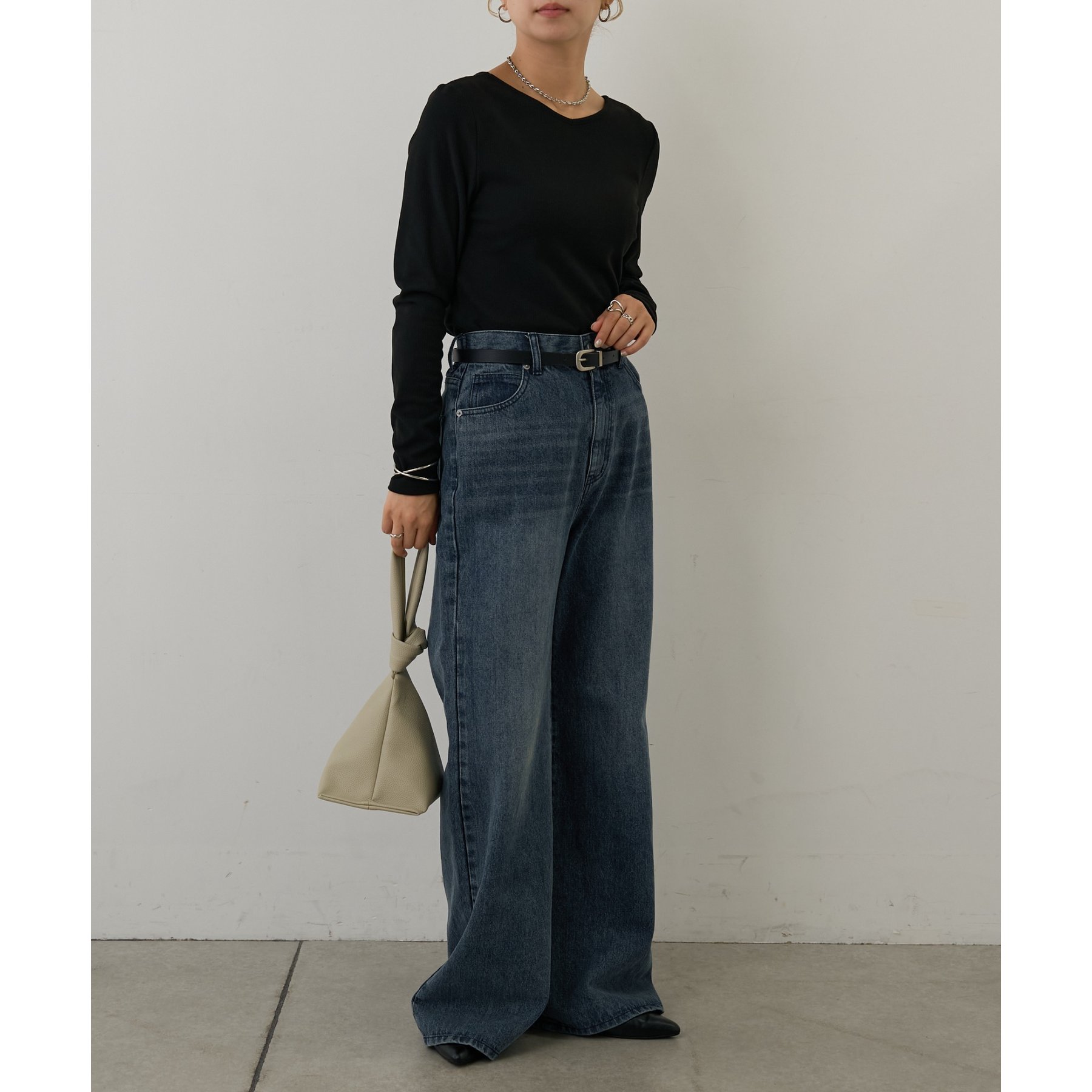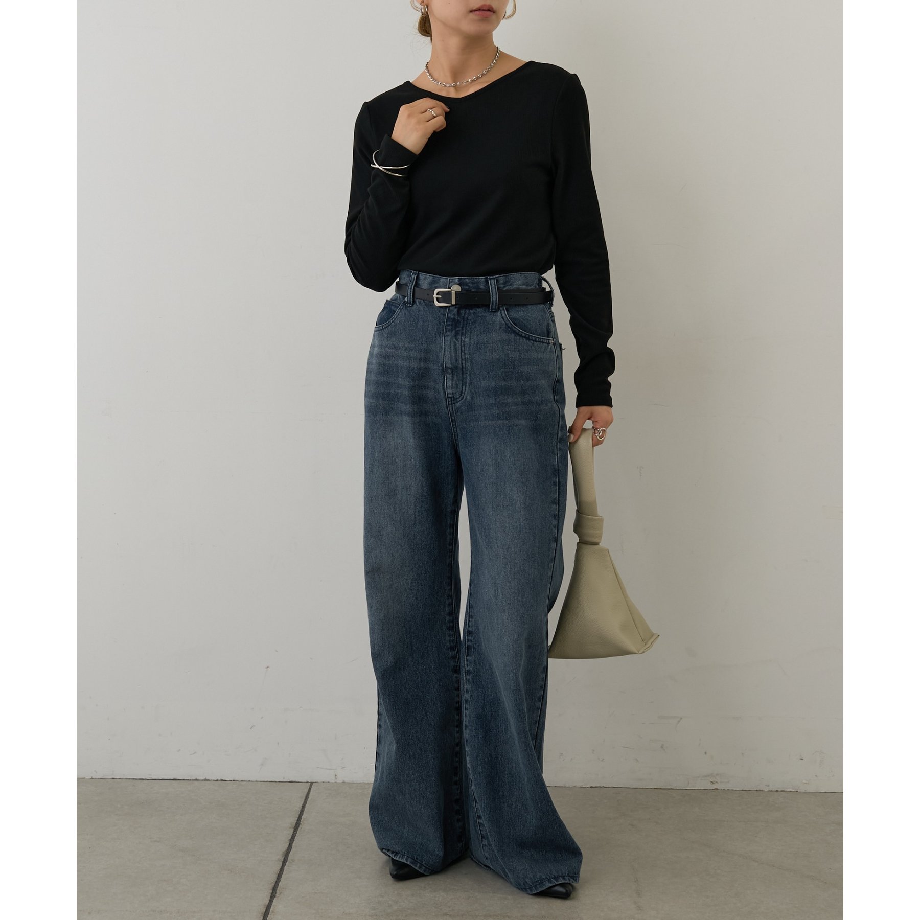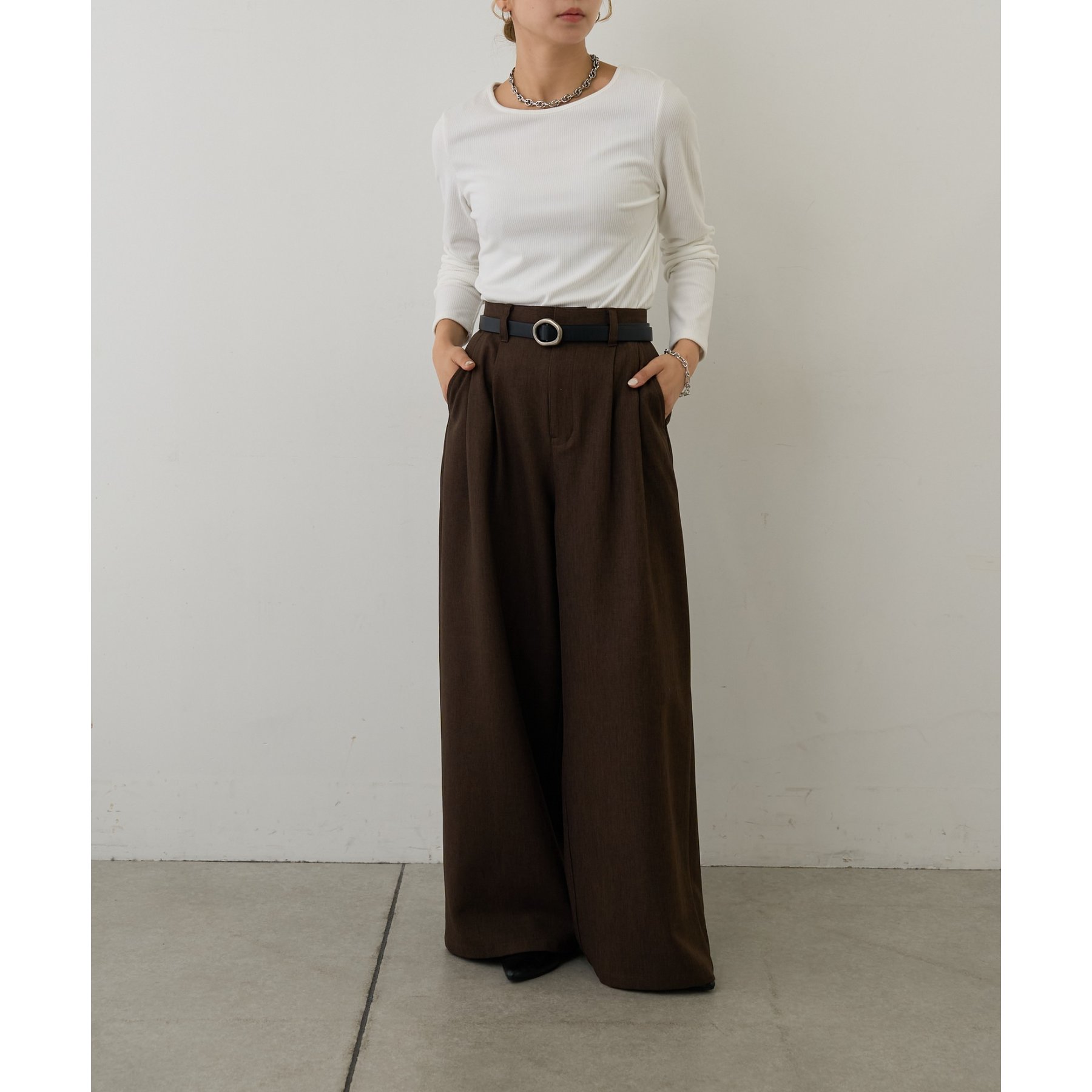 滑らかで柔らかい着心地を体感でき、体のラインに沿ったシルエットで着痩せ見えが叶う一枚です◎