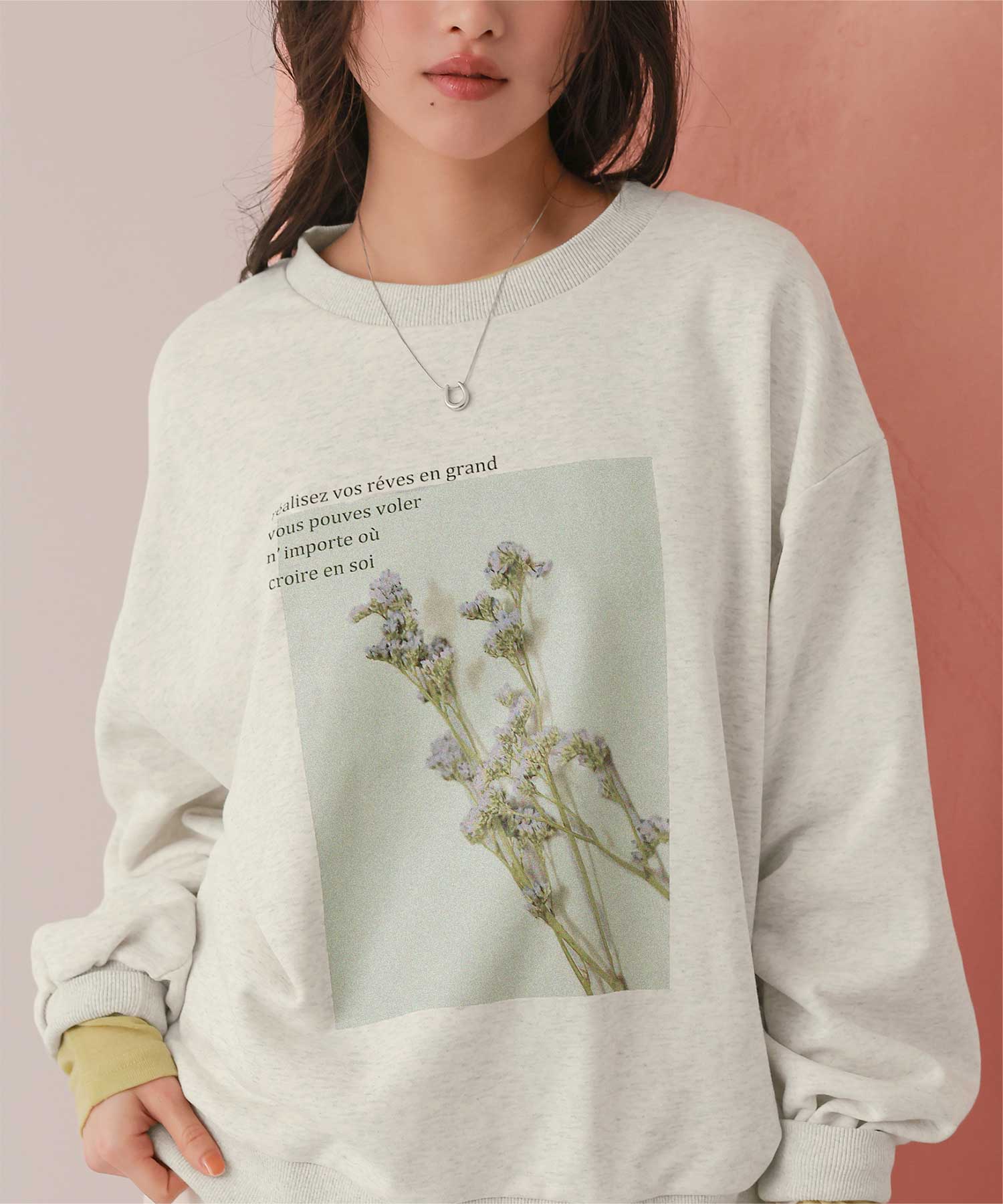・季節を問わず着まわせる、フォトプリントオーバーサイズスウェット