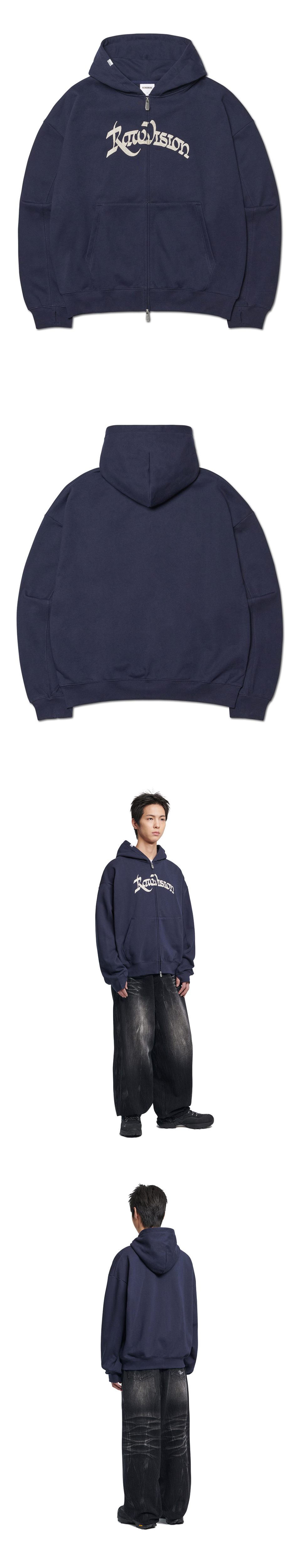 R.V CHAIN STITCHED HOODED ZIP-UP - DARK NAVY