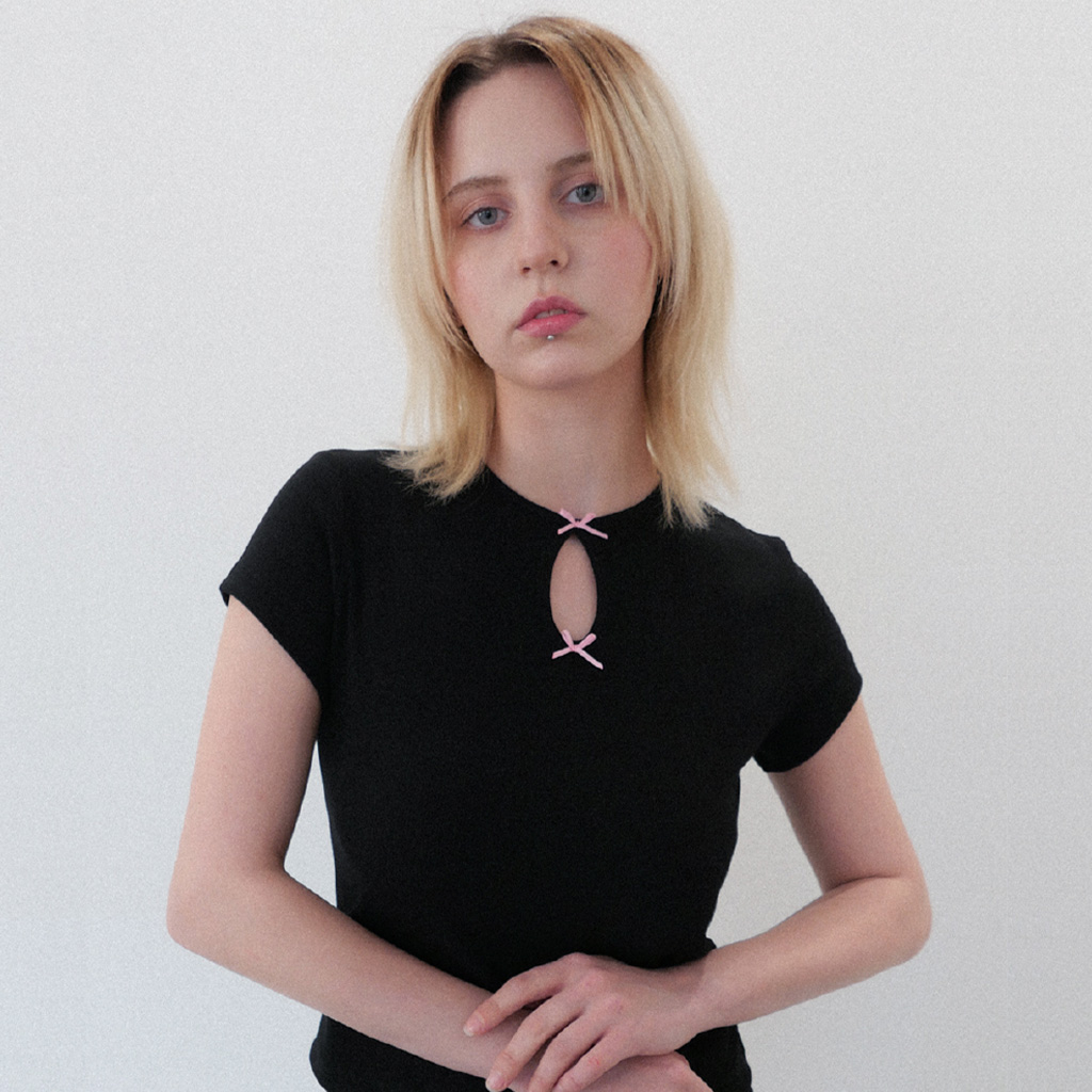 [Influencer pick] TWO RIBBON HALF SLEEVE TOP